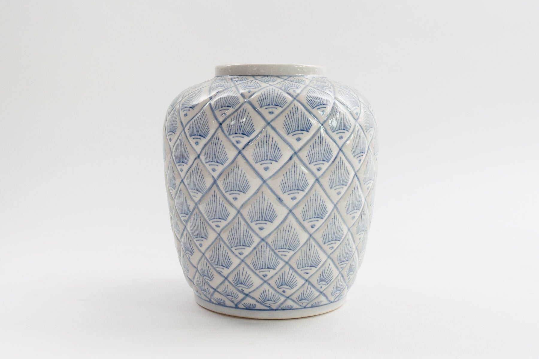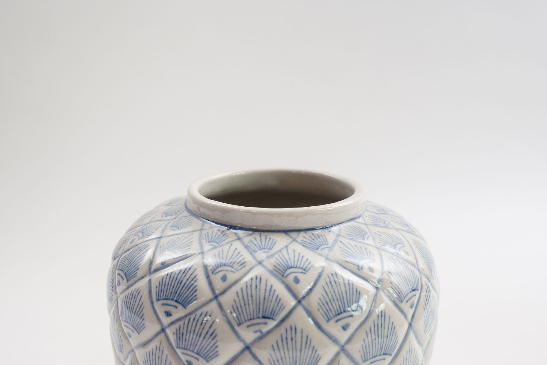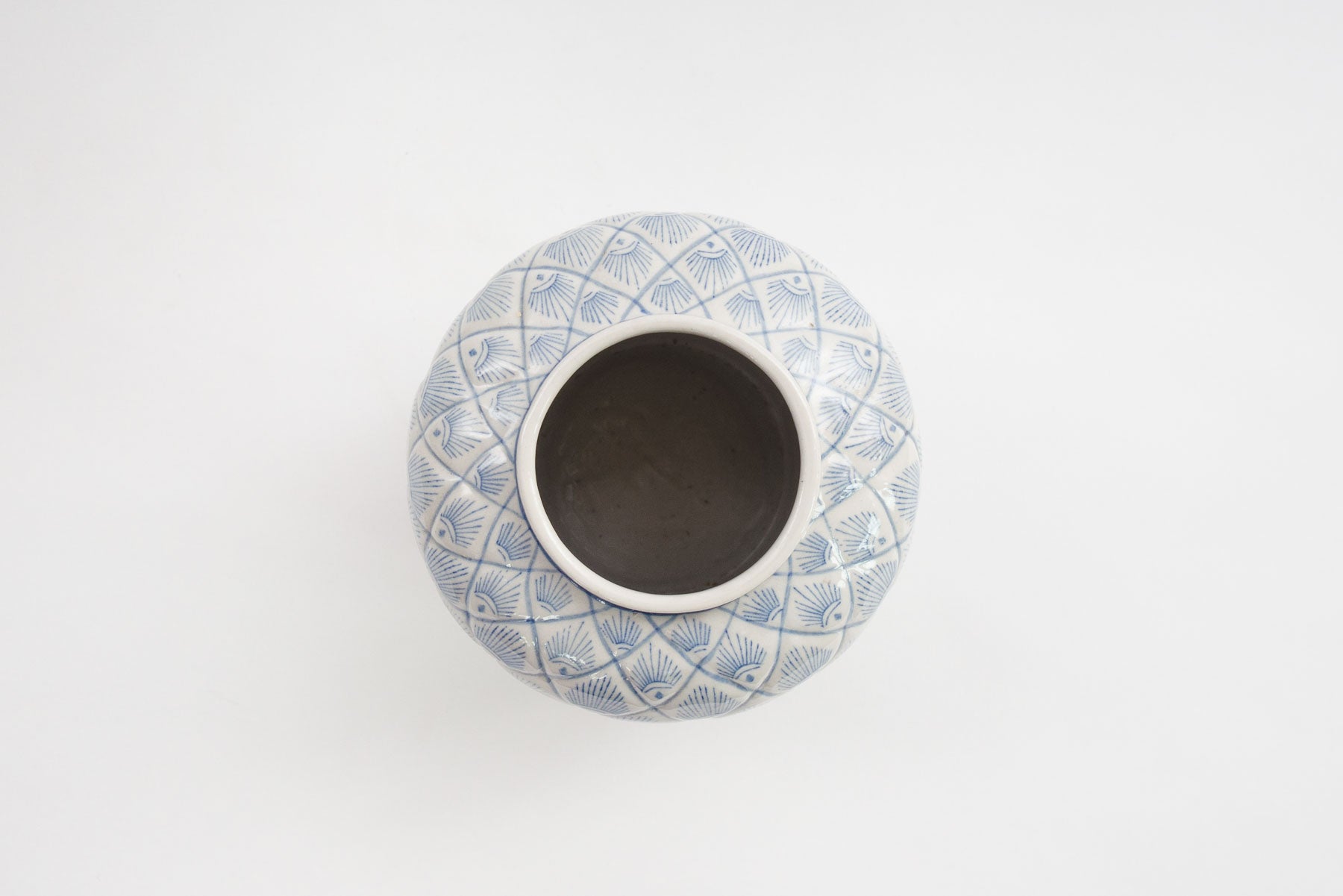 style: pottery, vase, jarmaterial: clay (porcelain), glaze (white, blue) age: vintage condition: good, age related wear - see pictures
