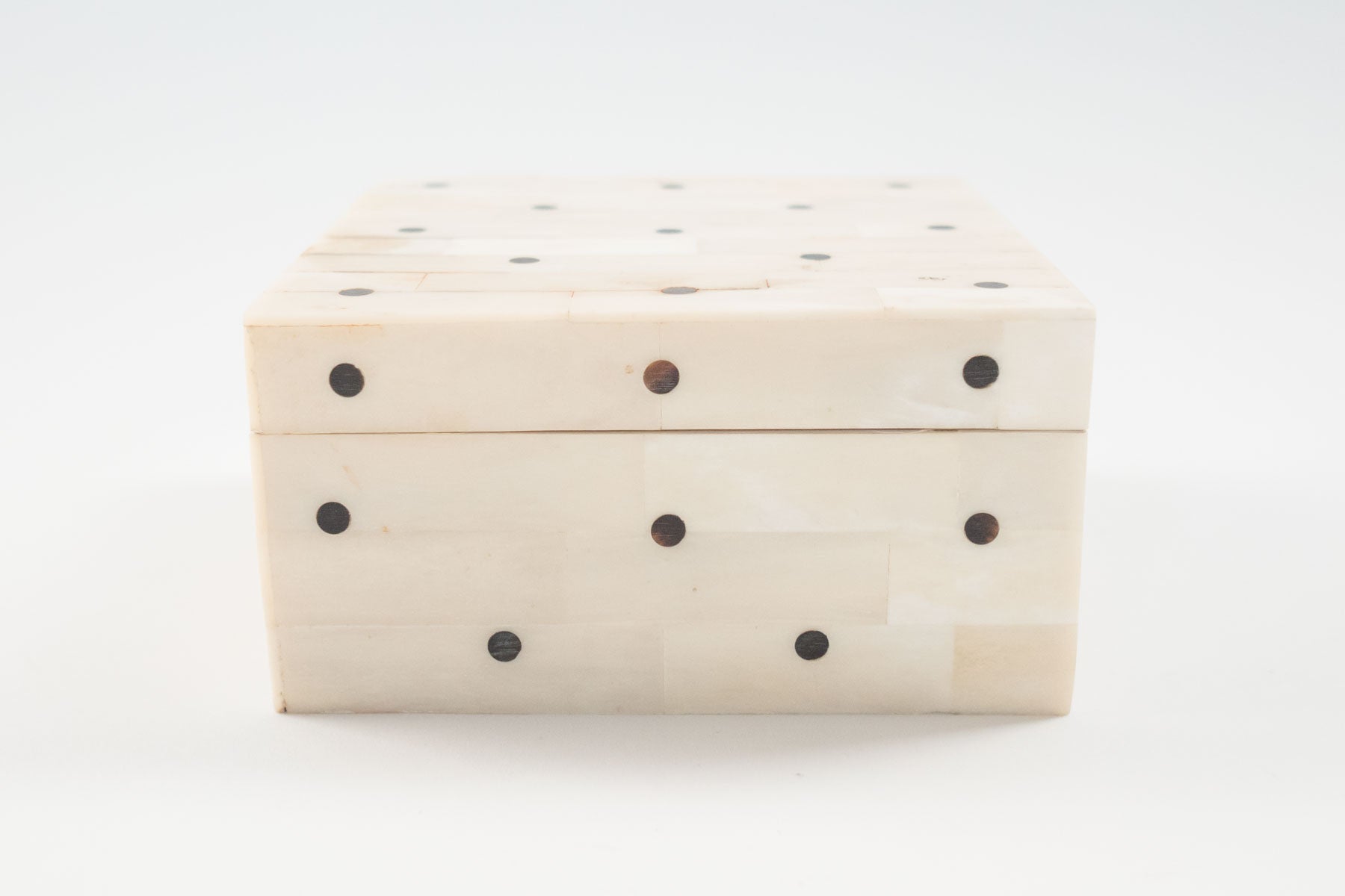 style: inlay, shell, polka dot, jewelry, lidded box, containermaterial: shell, woodage: vintagecondition: good, age related wear - see pictures