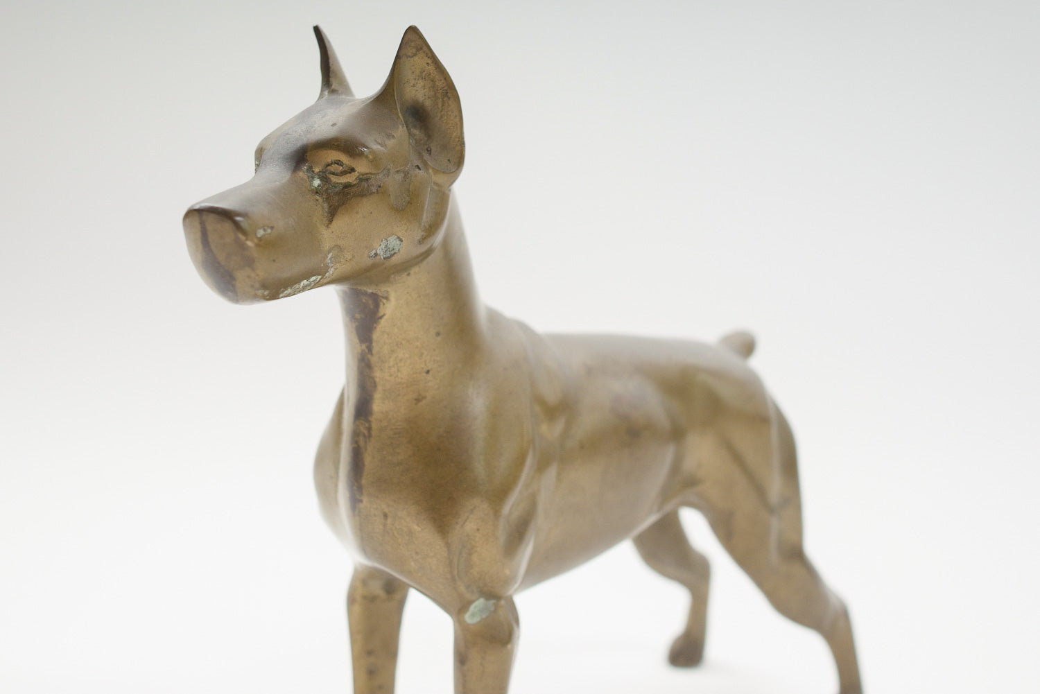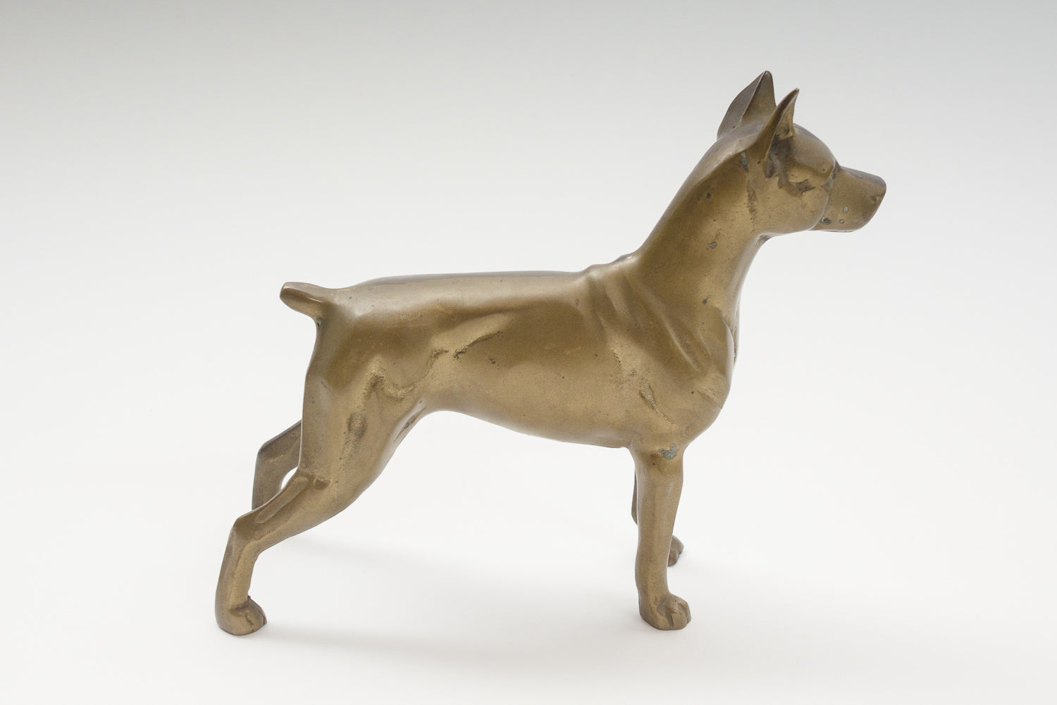 style: brass, boxer, doberman, dog, paperweight, figurinematerial: brassage: vintagecondition: good, age related wear - see pictures