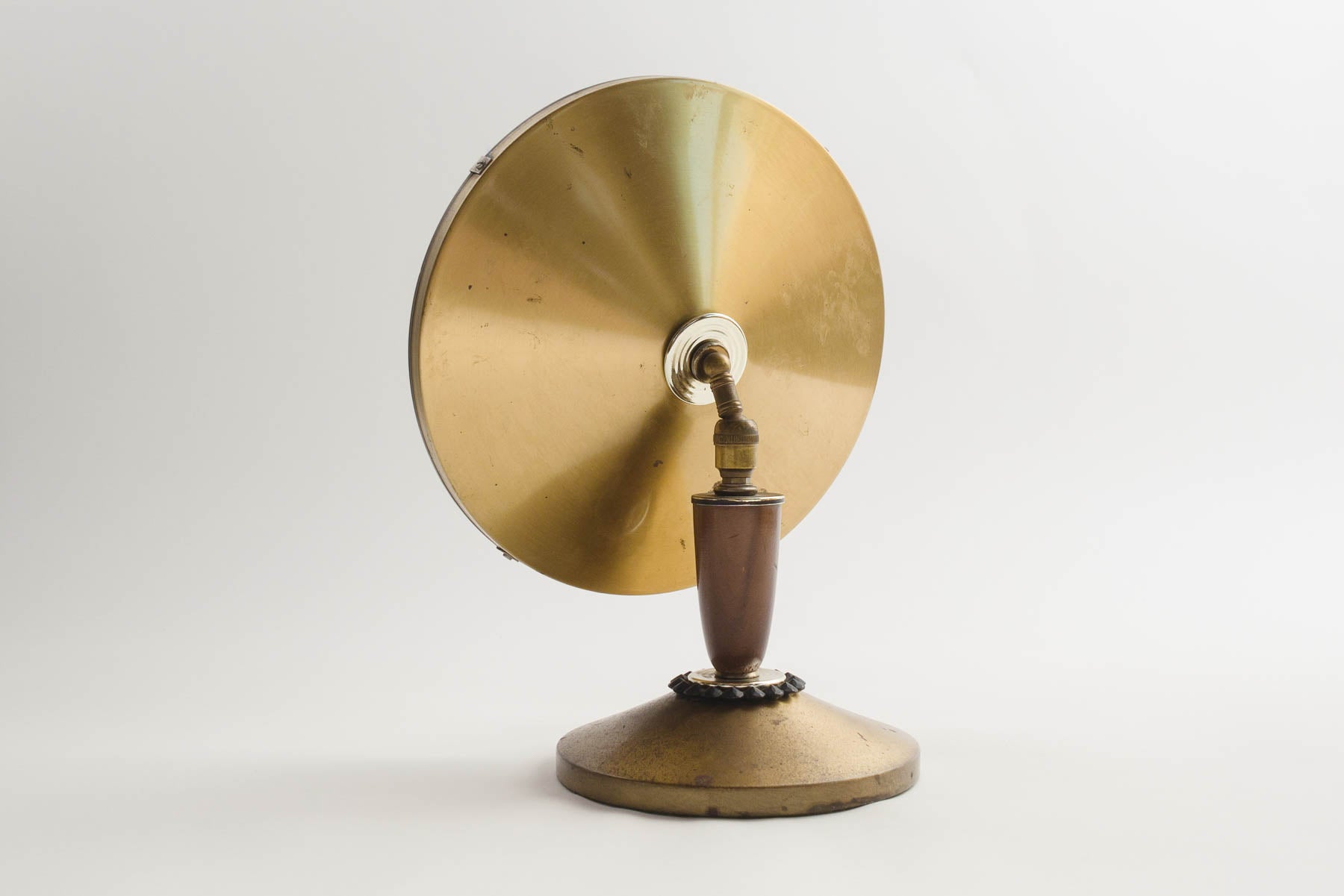 style: adjustable, vanity, tabletop, dresser mirrormaterial: metal, brass, glassage: vintagecondition: good, age related wear - see pictures