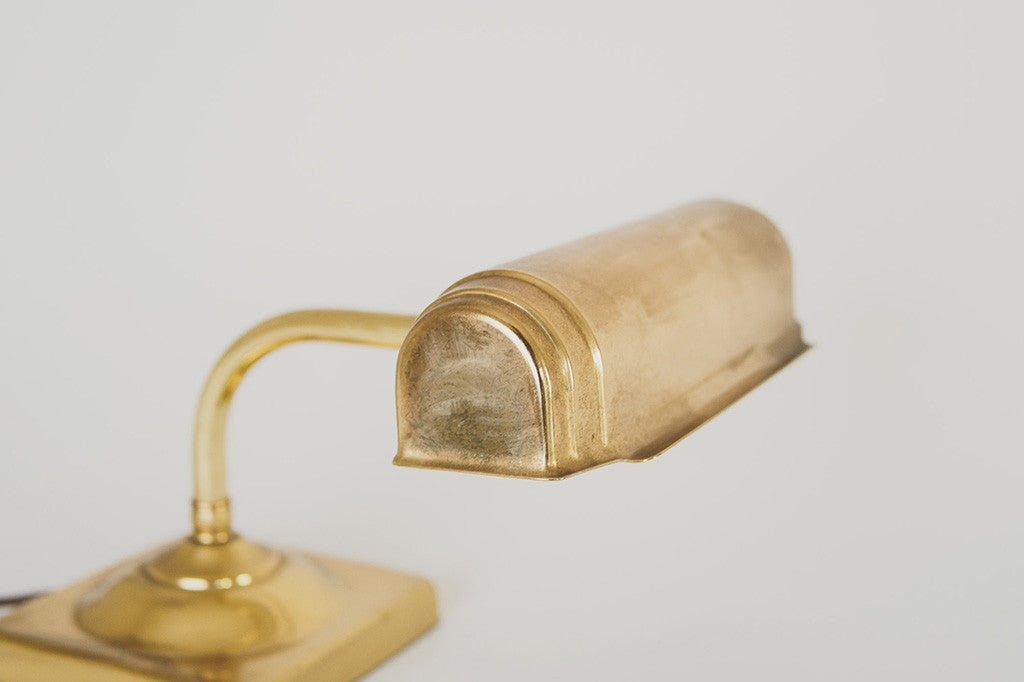 This vintage brass piano lamp holds one bulb. It could be used on a piano but would also work well as a desk lamp. It's in great shape with light age related wear. Please see pictures for detailed condition.