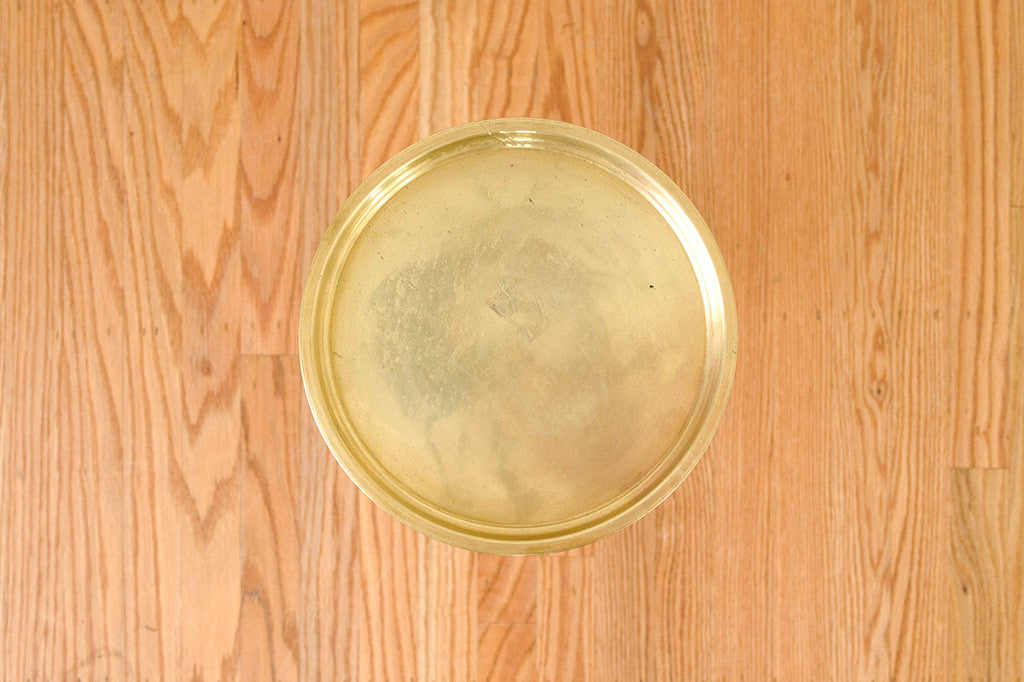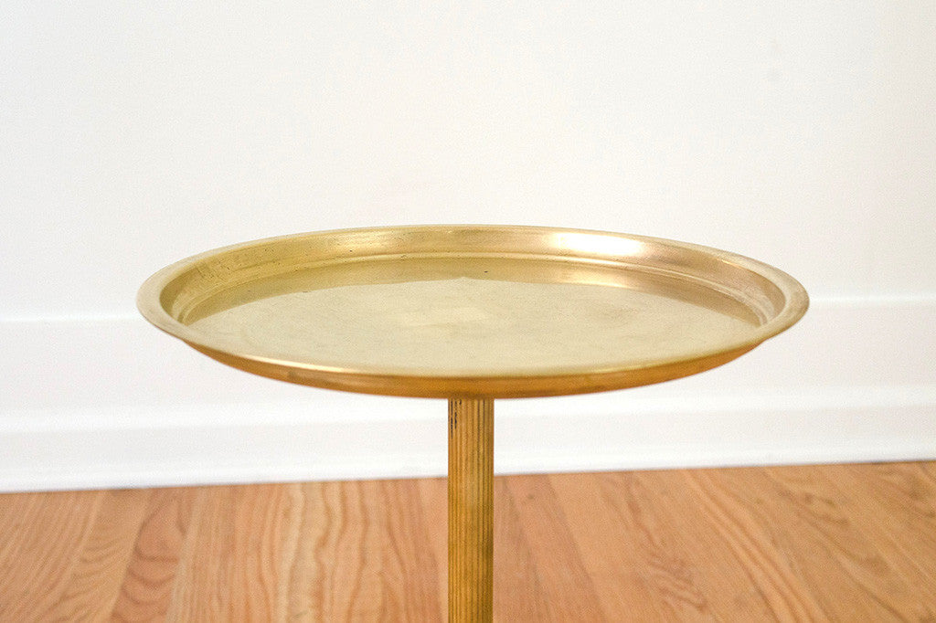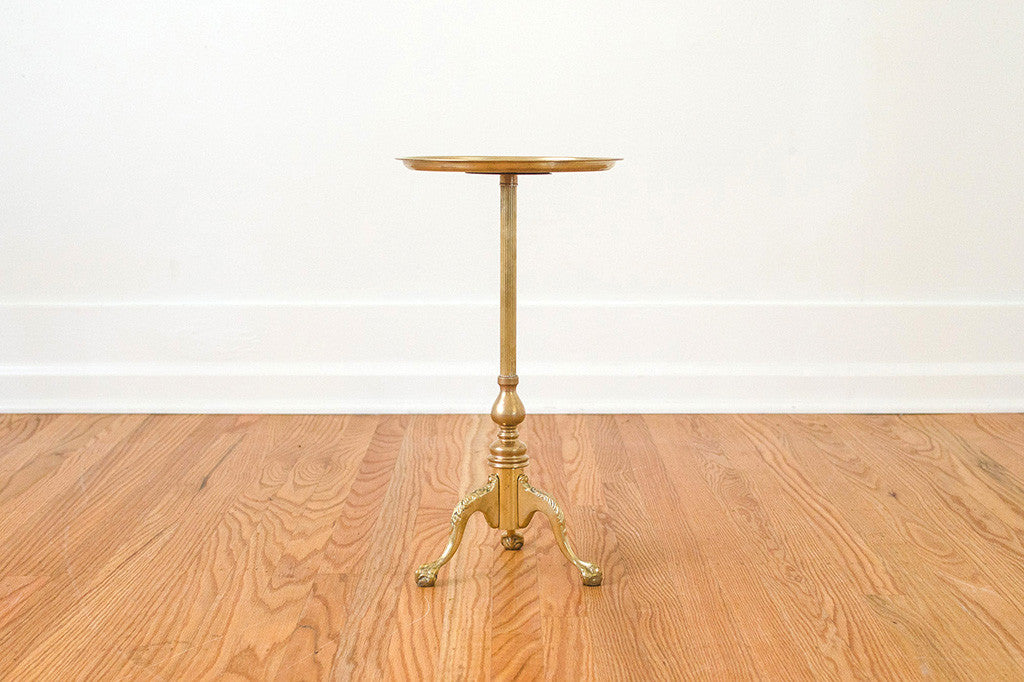 This vintage brass side table is perfect for a tight space or next to your favorite chair. It would also be a great plant stand or put it in your entryway to hold your mail and keys. It's in great overall shape with some light wear. Please see pictures for detailed condition of this piece.