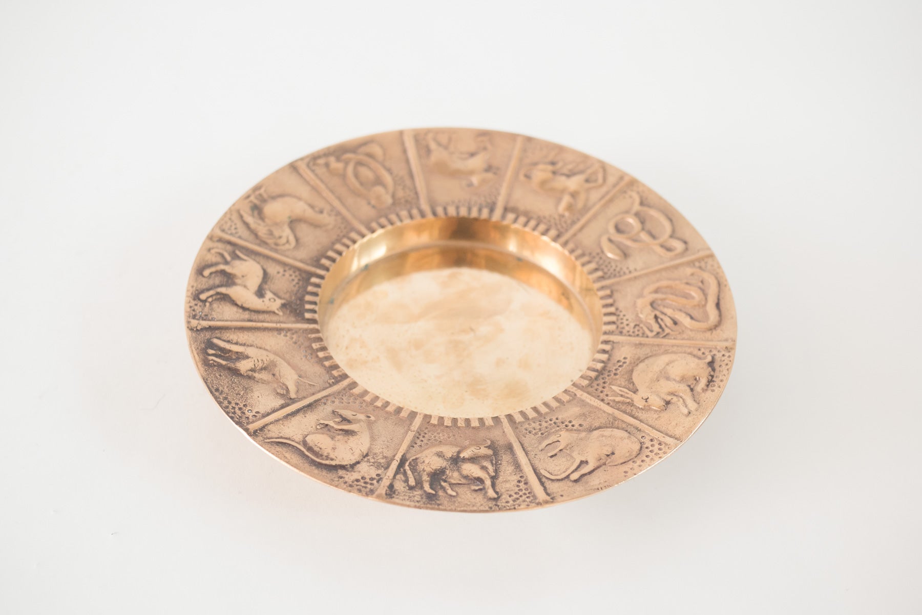 style: tray, tabletop, serveware, dish, astrology material: metal, brass age: vintage condition: good, age related wear - see pictures