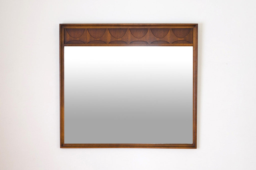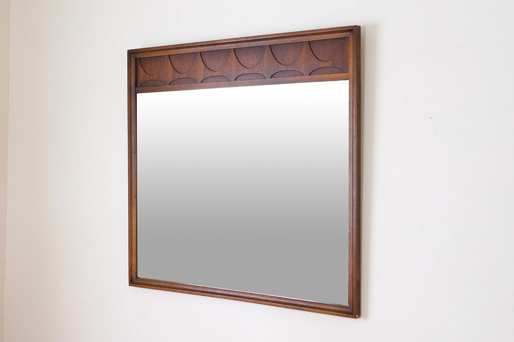 This Mid Century Brasilia mirror is in excellent shape. It would look great above a sofa, fireplace, vanity or with a dresser. Please