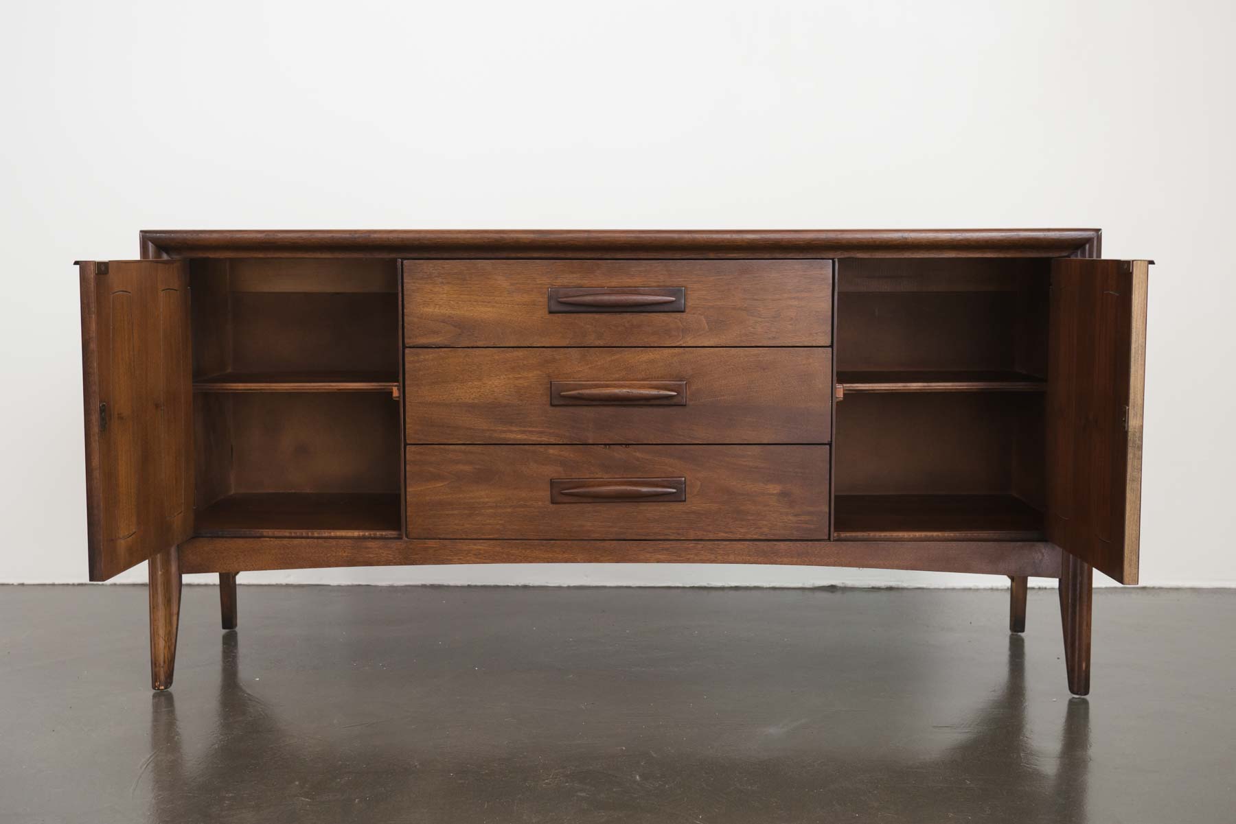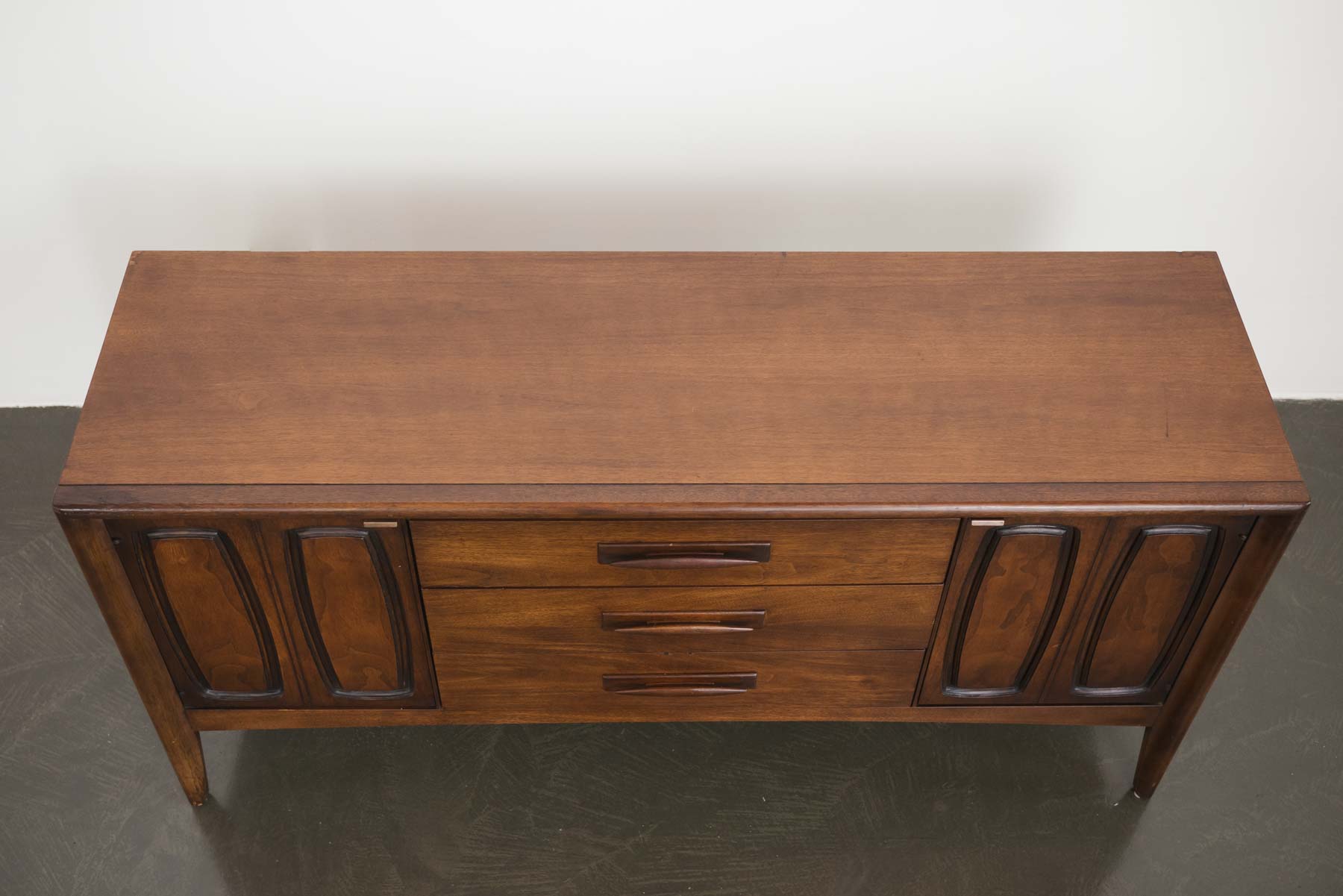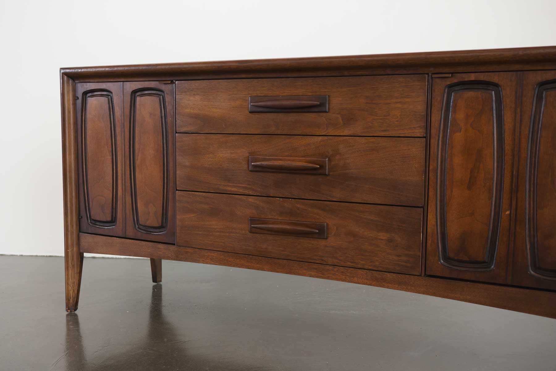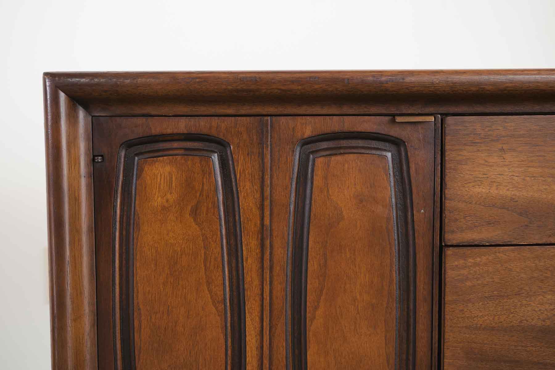 style: modern, lowboy, dresser, credenza, tv stand material: wood (walnut) brand: Broyhill, Emphasis age: vintage, Mid Century condition: good, age related wear - see pictures