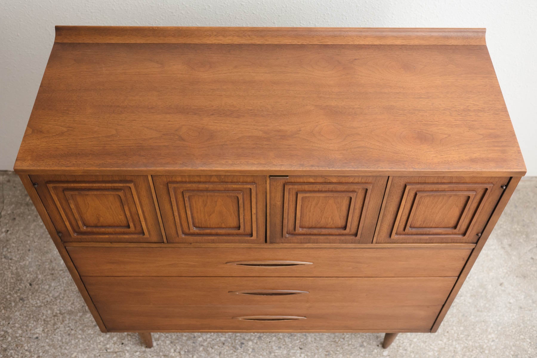 style: Mod, Modern, highboy, dresser, chest, 3 drawer, doorsmaterial: wood (walnut)brand: Broyhill, Sculptraage: vintage, Mid Centurycondition: good, age related wear - see pictures