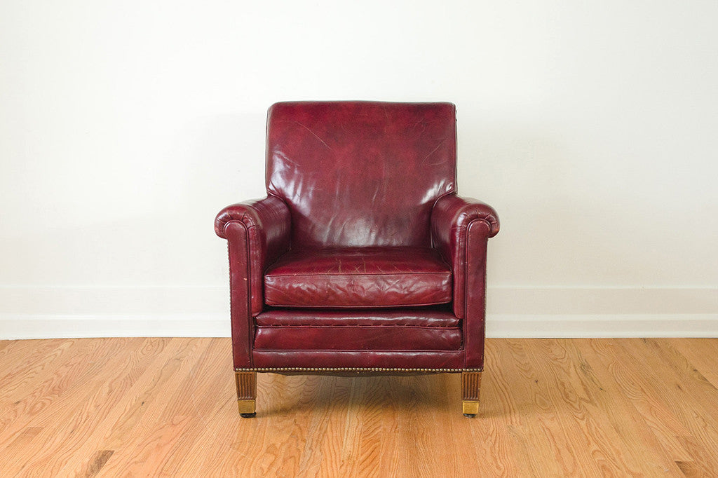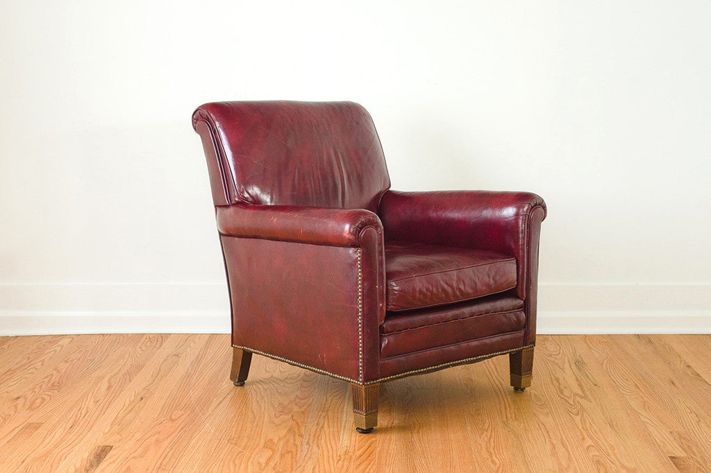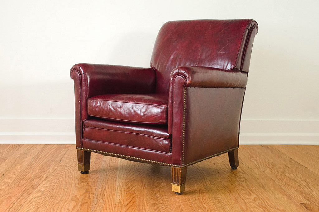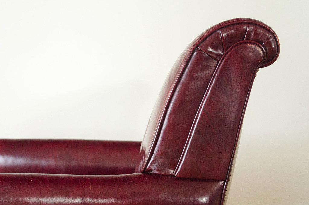 similar company in the 60's. It's a burgundy leather roll arm style with
