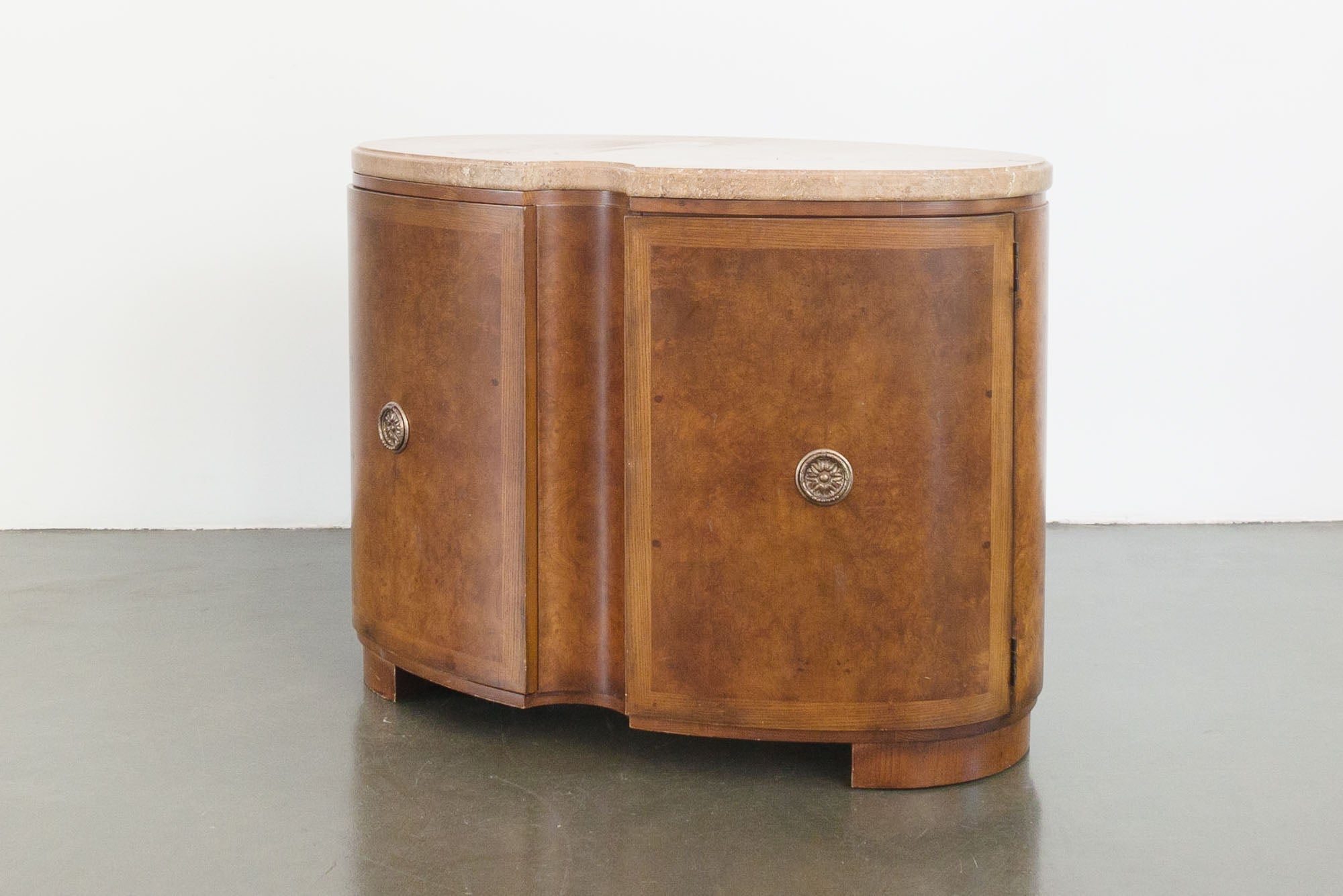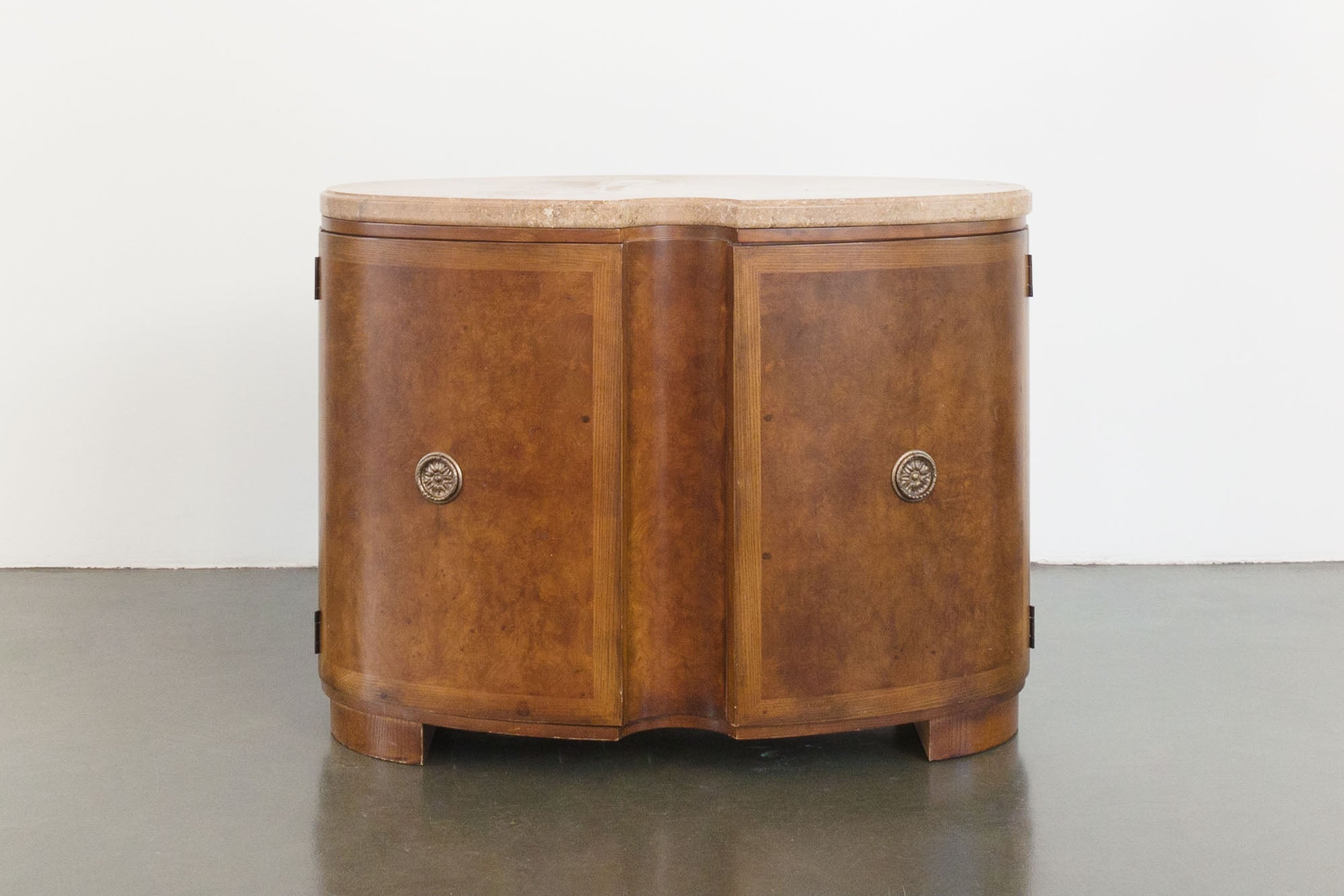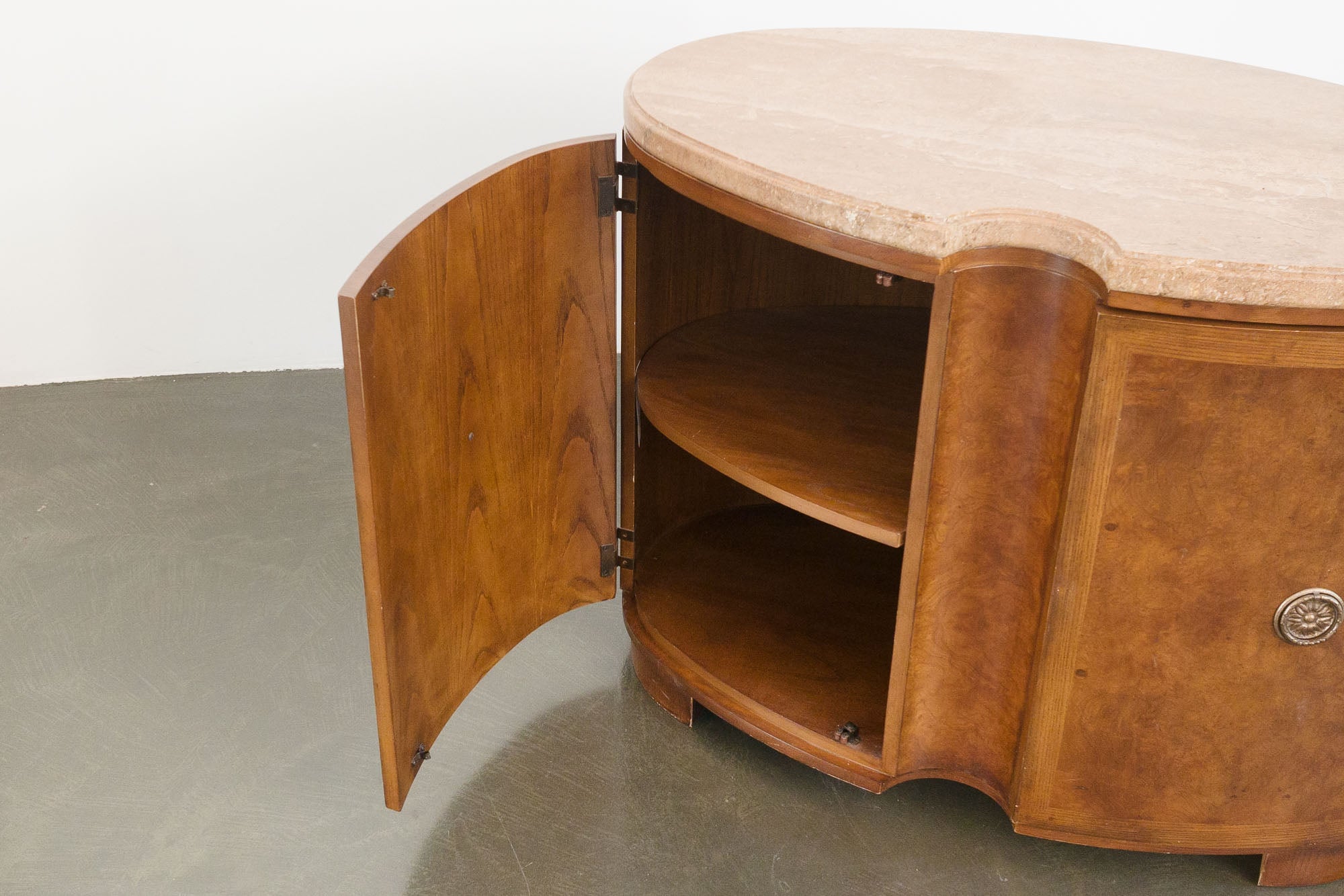 style: bar, buffet, sideboard, cabinetmaterial: burlwood, oak, travertine, metal age: vintagecondition: good, age related wear - see pictures41.5” wide x 24” deep x 32” high