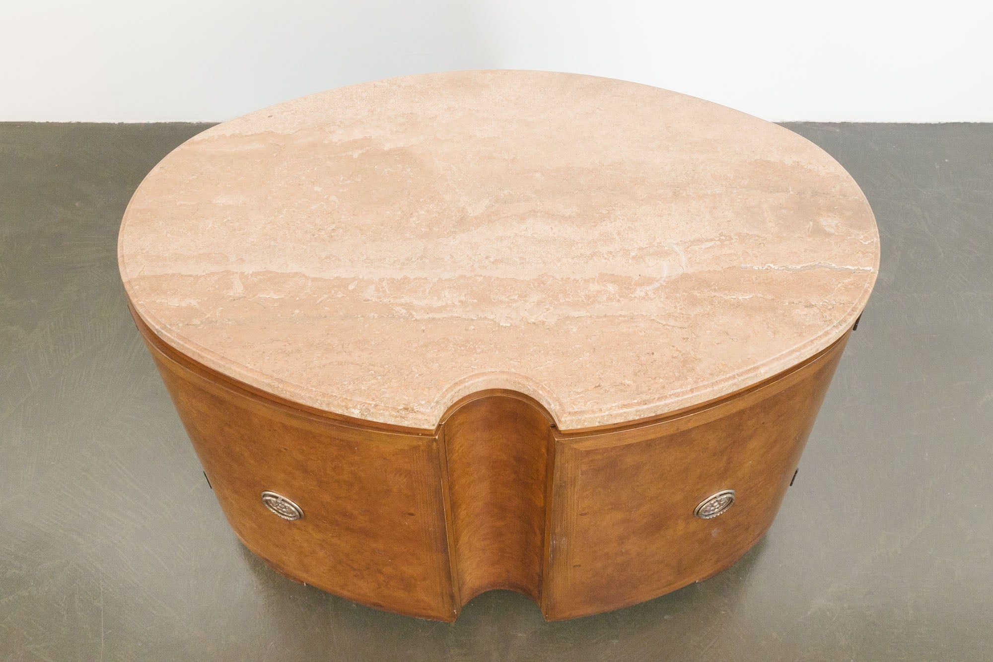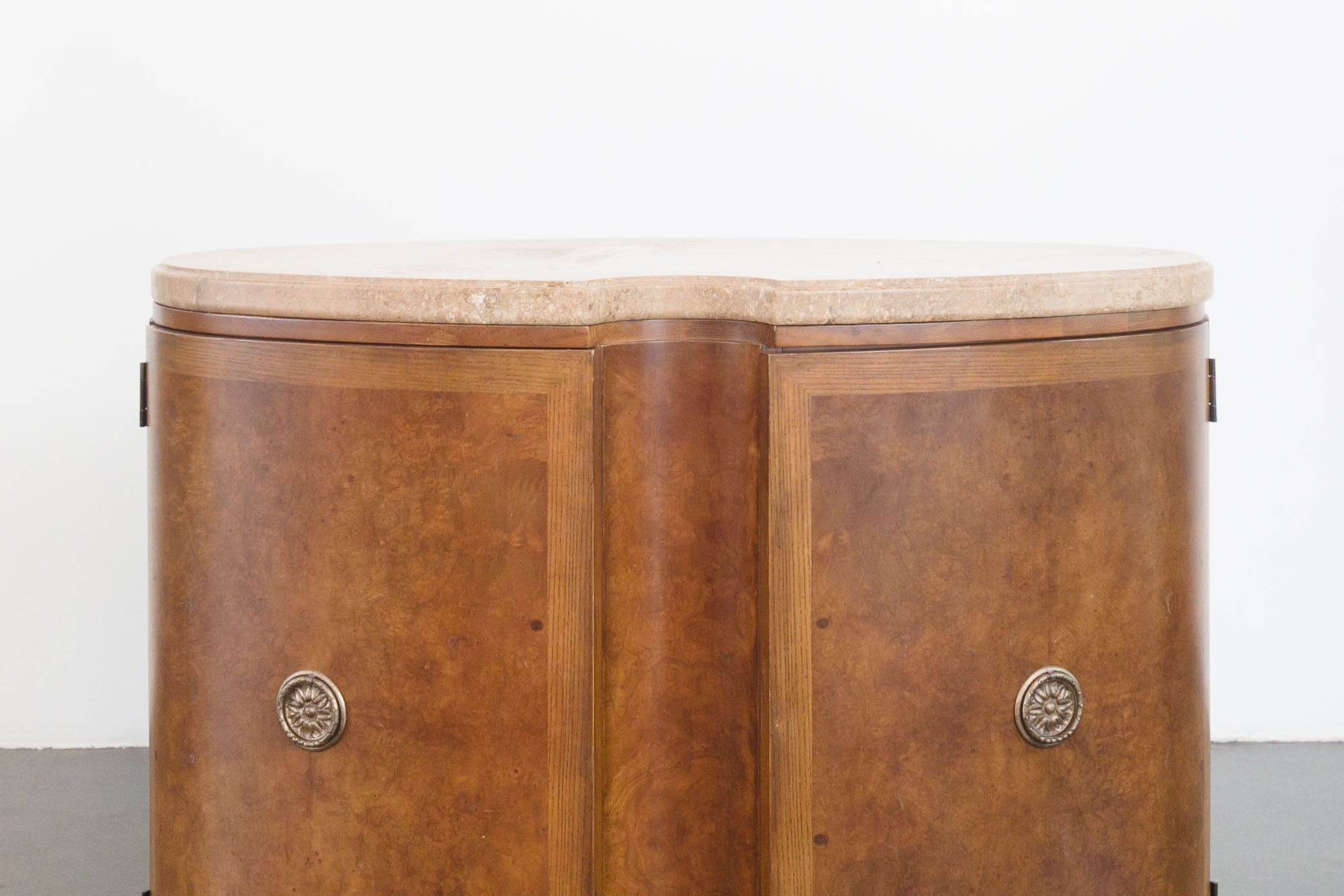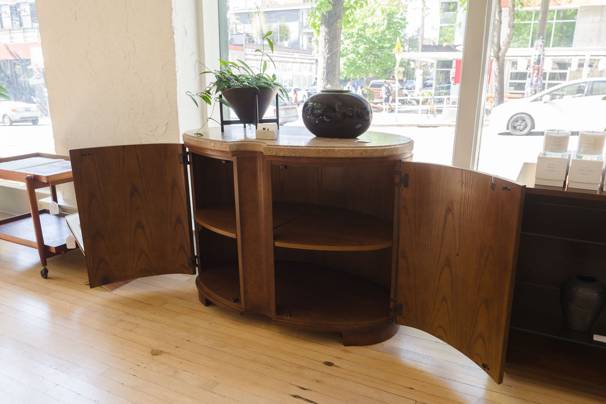 style: bar, buffet, sideboard, cabinetmaterial: burlwood, oak, travertine, metal age: vintagecondition: good, age related wear - see pictures41.5” wide x 24” deep x 32” high