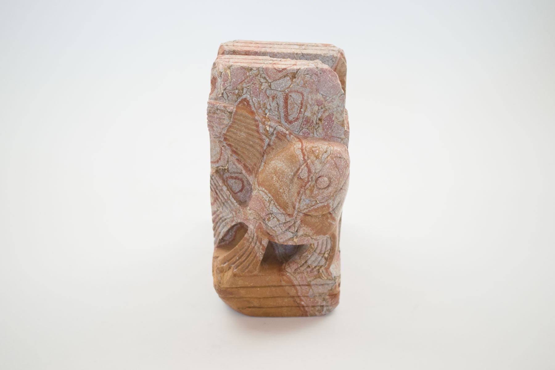 style: carved, stone, natural rock, display, fish, bookend, paperweight, pair