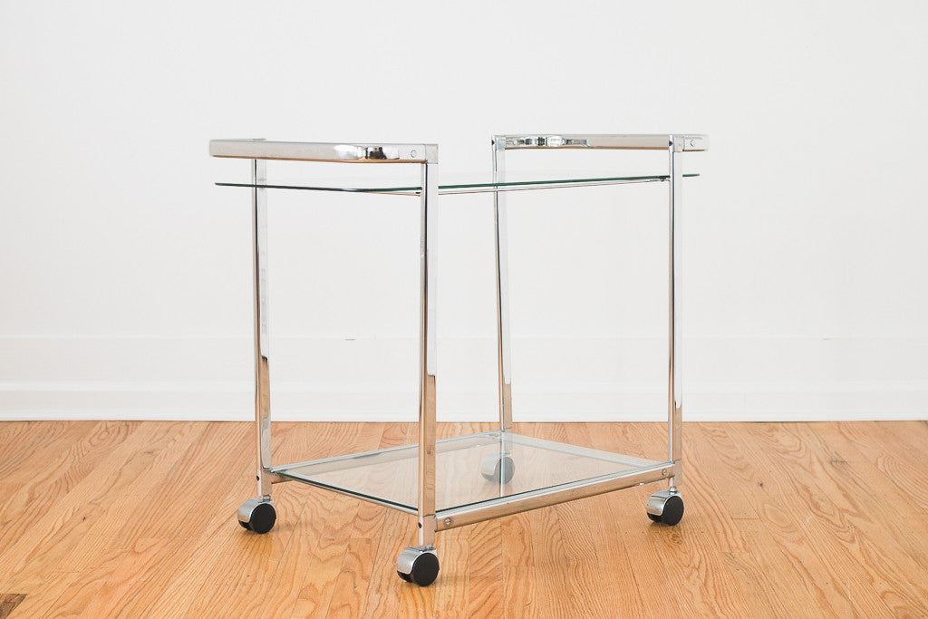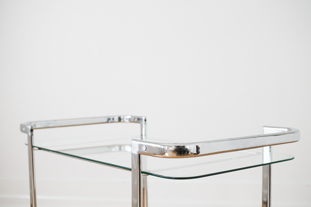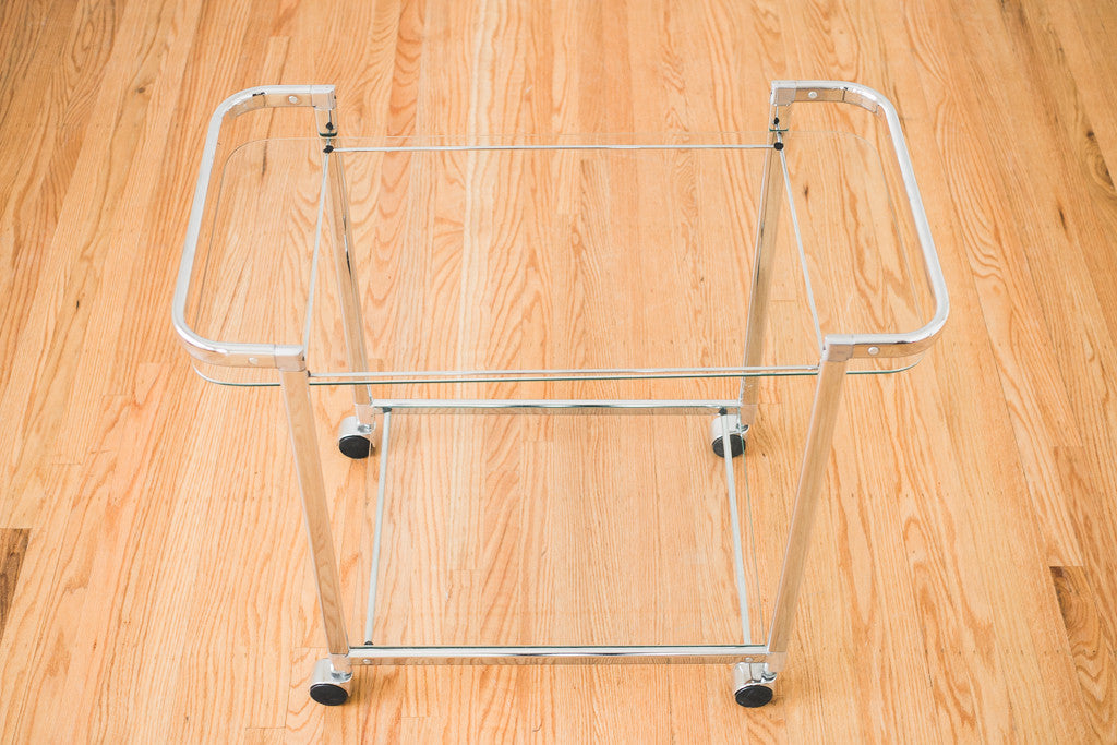 material: chrome, glass, plastic (casters)