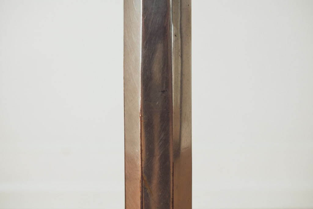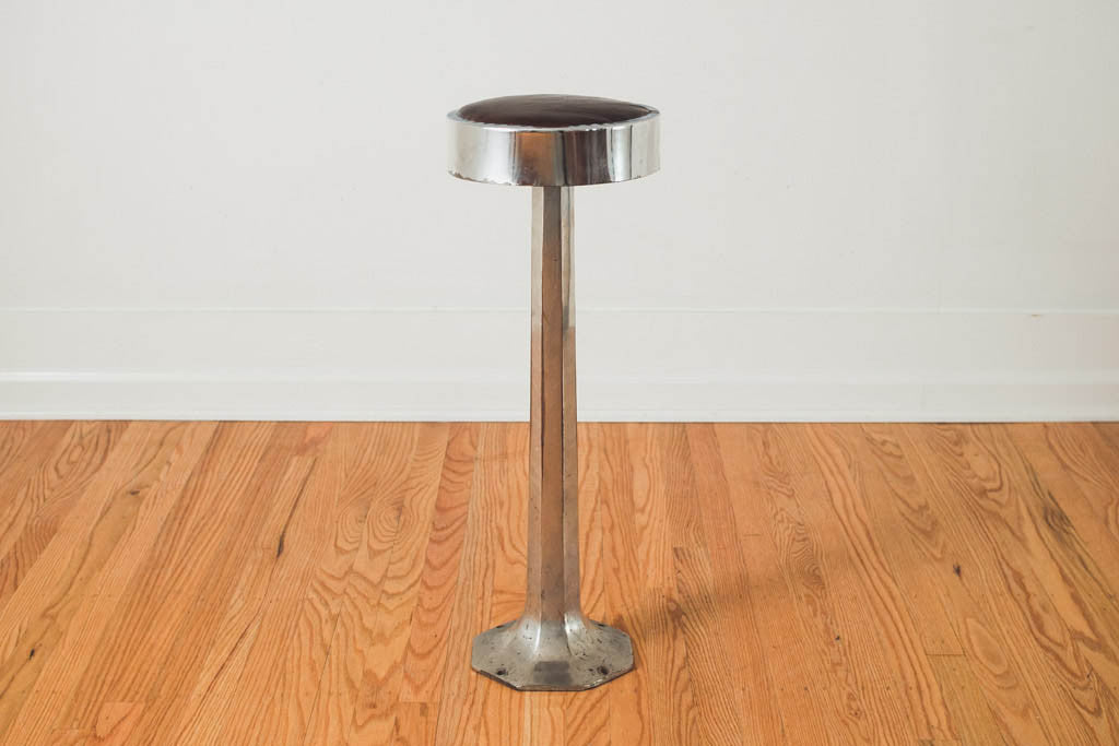 This vintage soda shop stool has brown waxed leather seat on a two piece chrome base. It's in good shape with age related wear. See pictures for detailed condition.