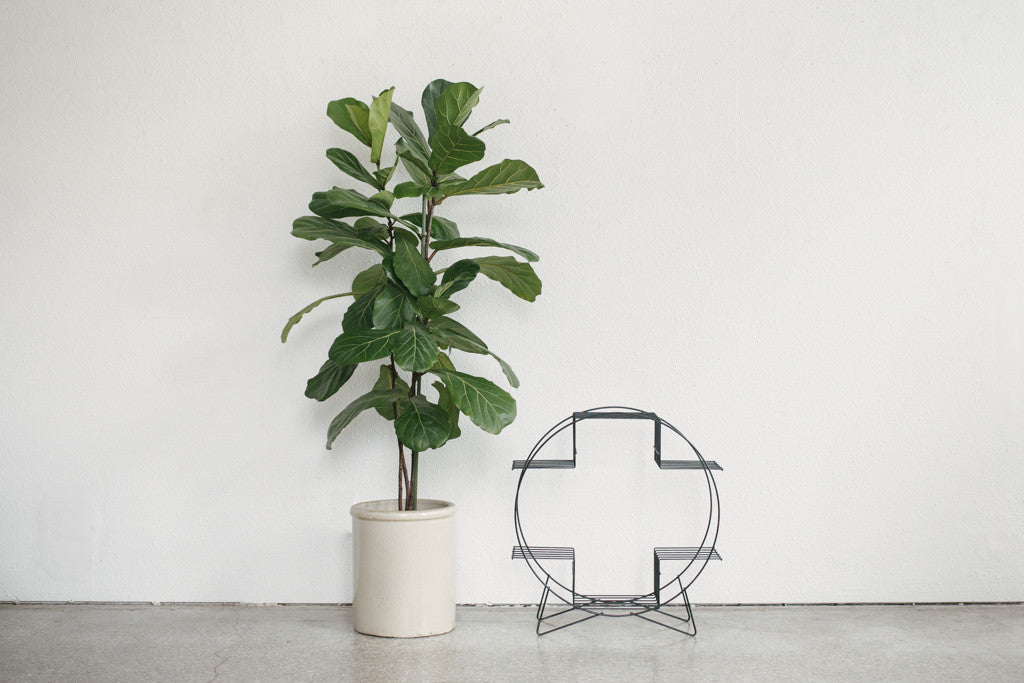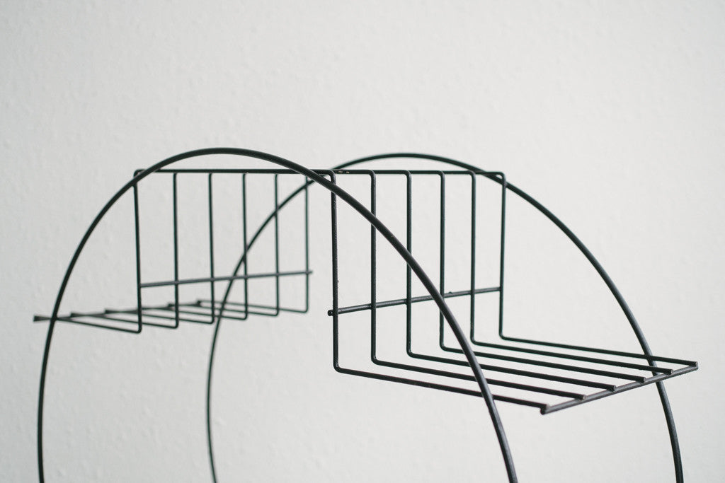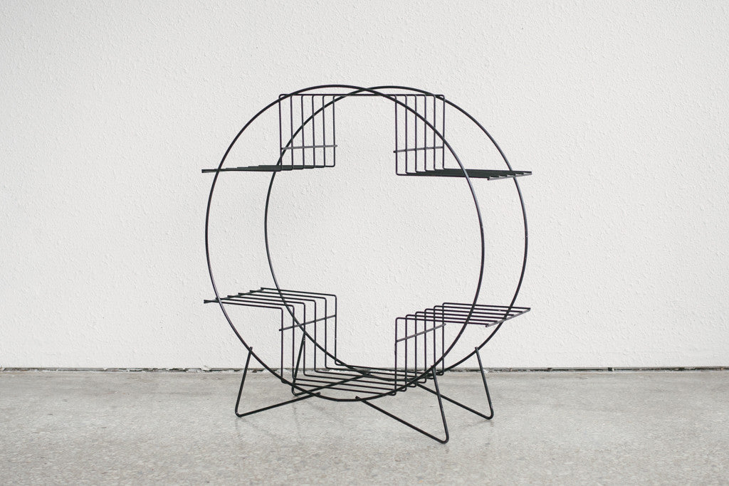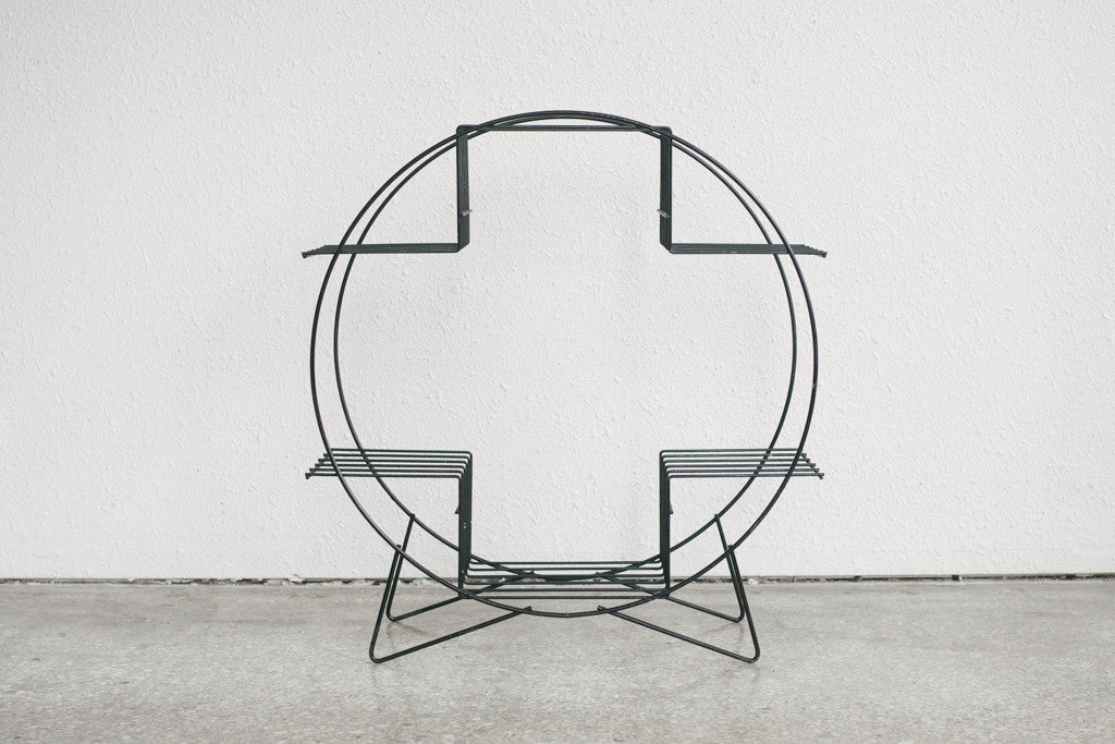 style: Mid Century, wire, hairpin, circle, plant stand, shelf