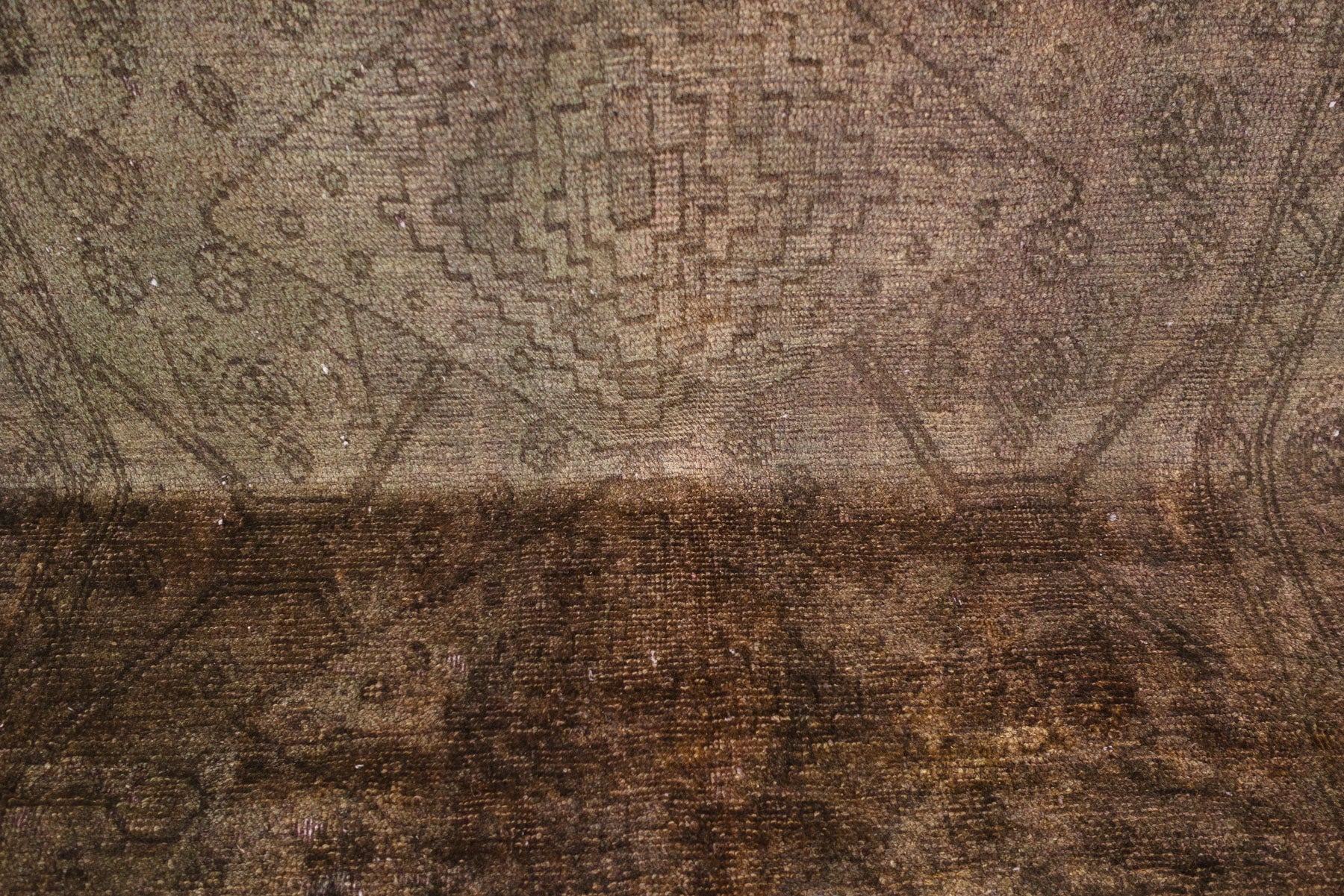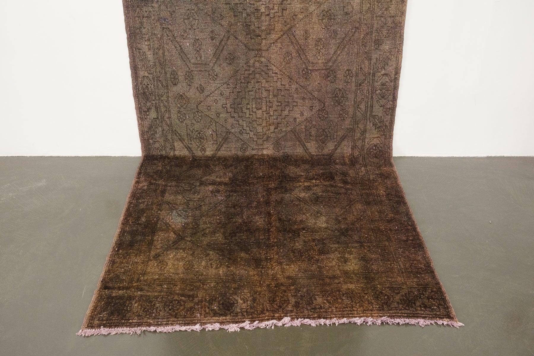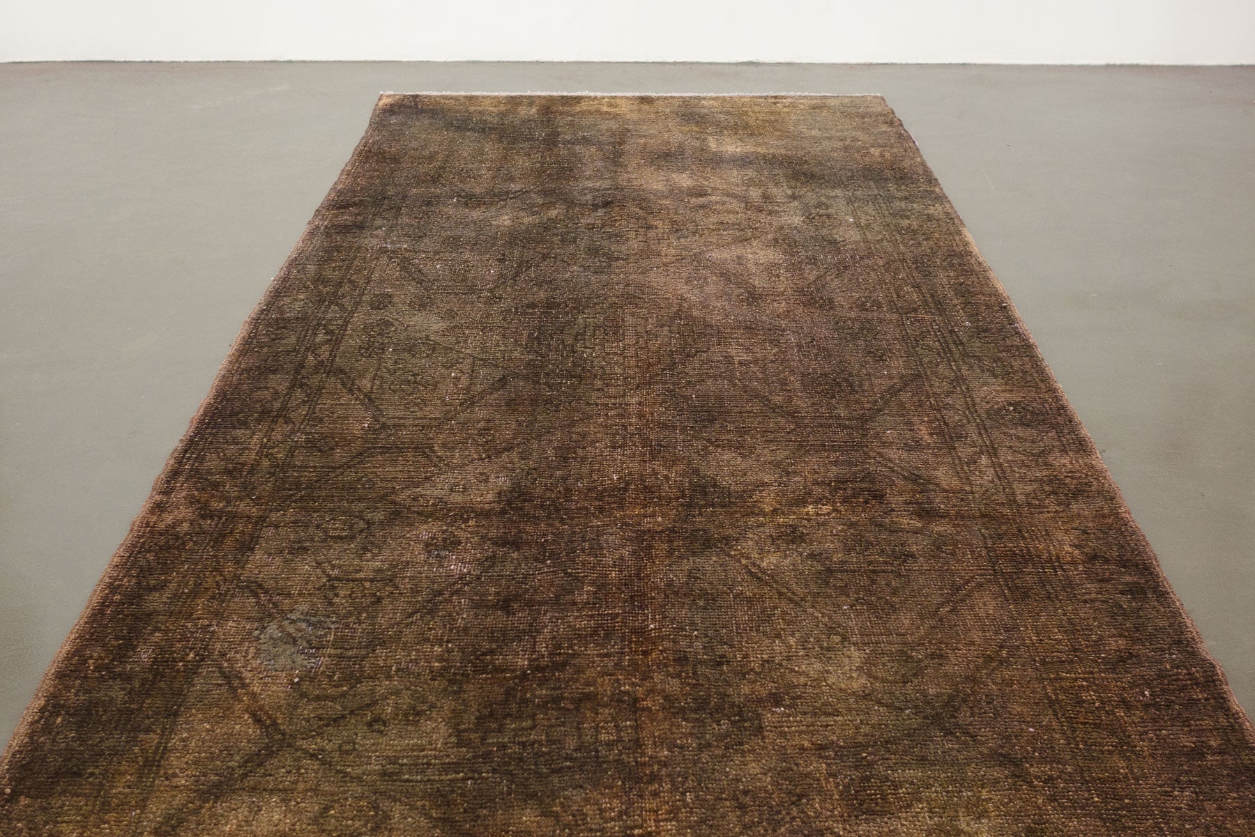 name: Tirnamorigin: Iran (Persian), Voguestyle: over-dyed, rug, carpetmaterial: hand knotted woolcolors: browns, black, cream age: vintage 1940-1970condition: good, age related wear - see picturesappraised value: $2,11254" x 126" (closest standard rug size is 4.5x10.5)Free domestic shipping on all rugs.Contact us for an international shipping quote.