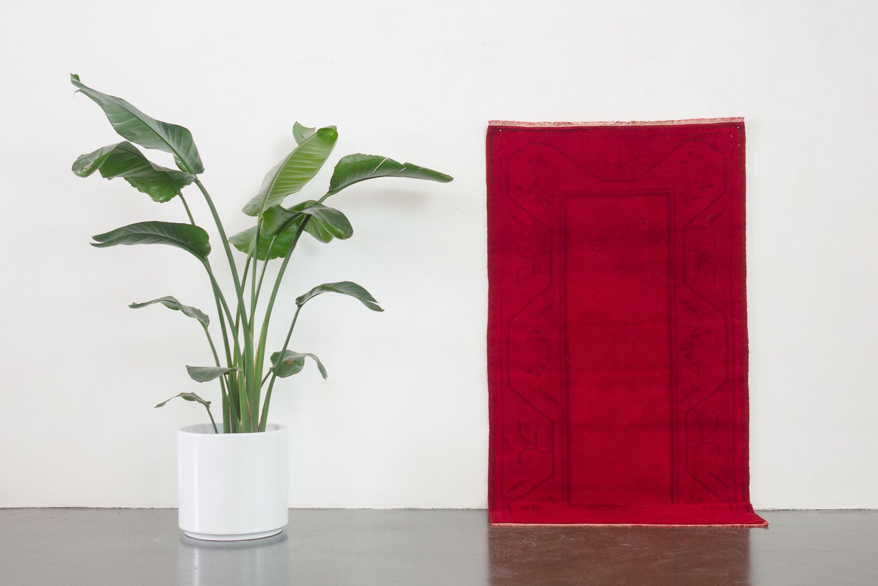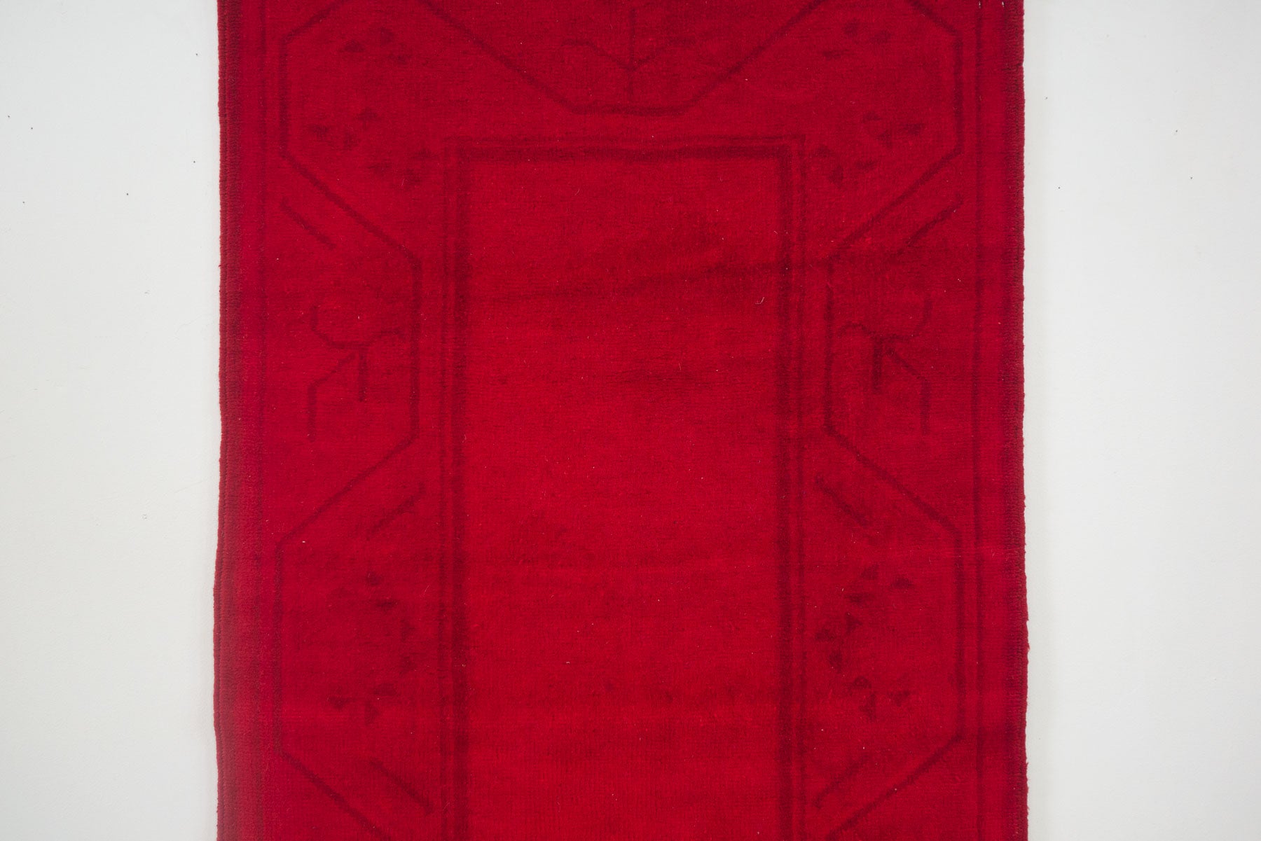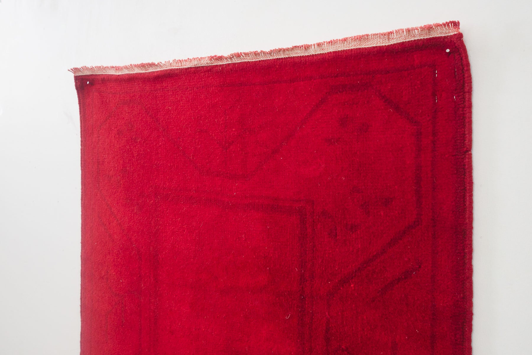 name: Faikorigin: Turkey style: over-dyed, rug, carpetmaterial: hand knotted woolcolor: redsage: vintage, 1940-1970condition: good, age related wear - see picturesappraised value: $596
