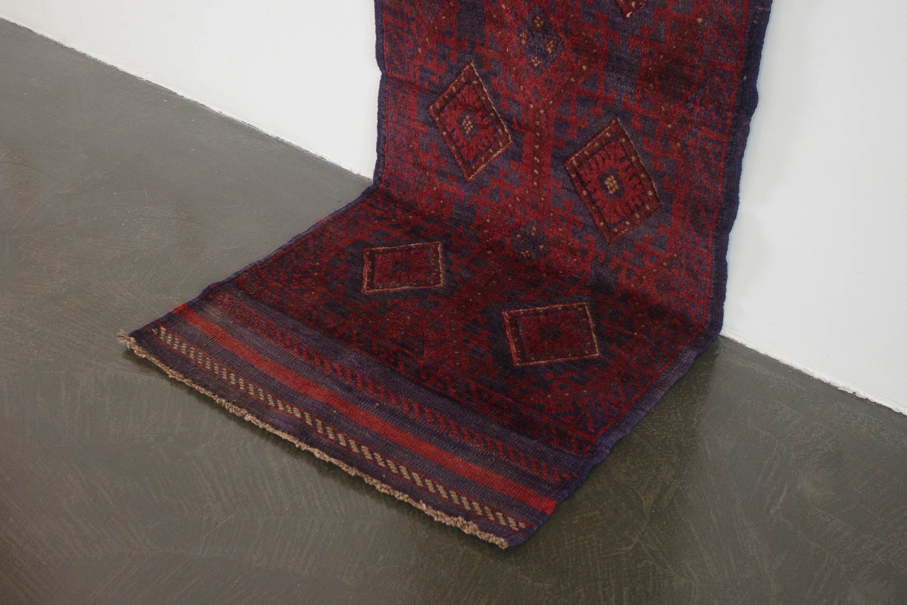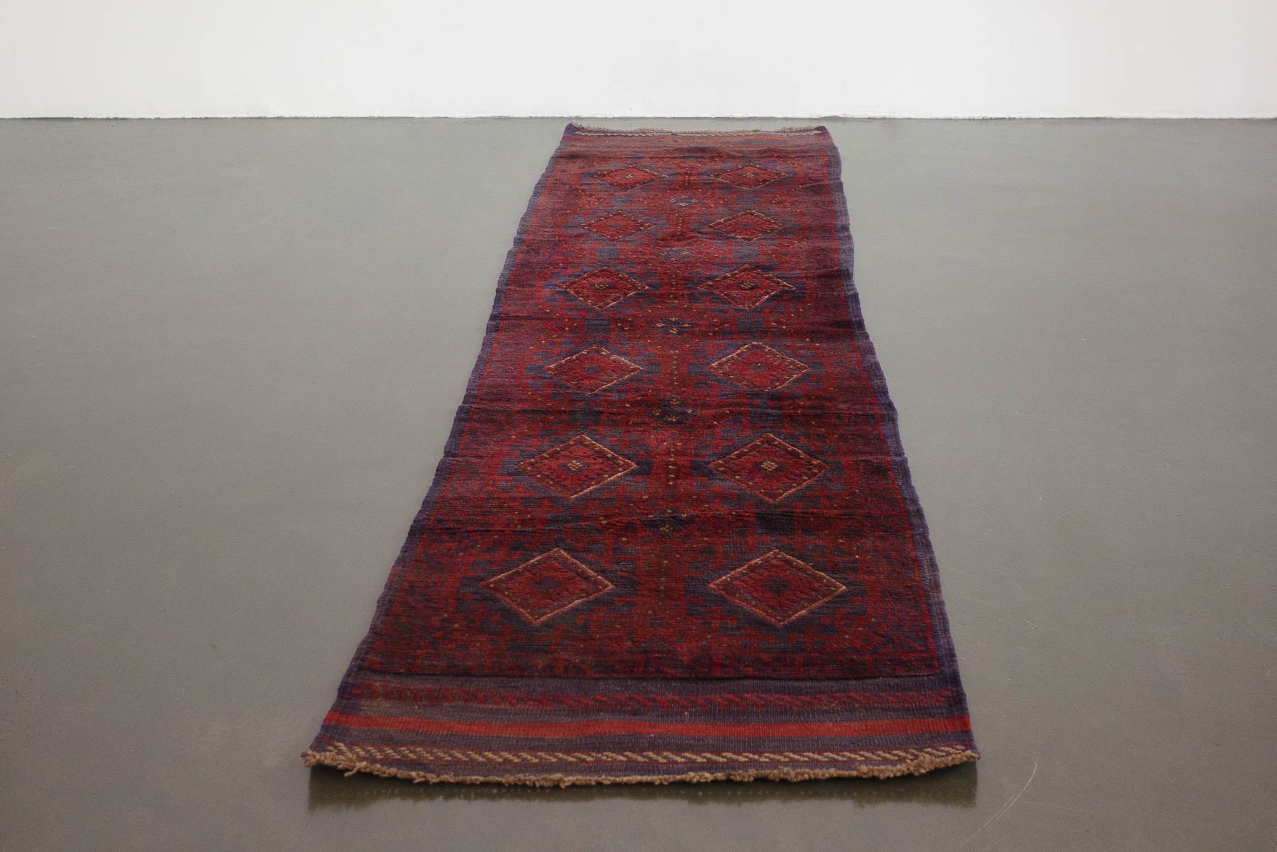 name: Samsororigin: Afghanistan, Tajikstyle: rug, runner, carpetmaterial: hand knotted woolcolors: red, navy, camelage: vintage condition: good, age related wear - see picturesappraised value: $620