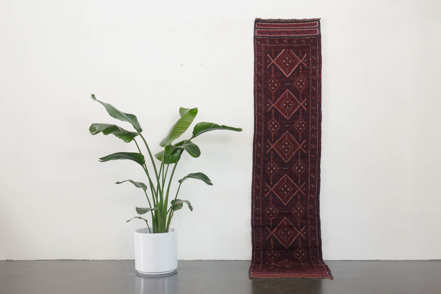 name: Samoonorigin: Afghanistan, Tajikstyle: rug, runner, carpetmaterial: hand knotted woolcolors: red, navy, camelage: vintage condition: good, age related wear - see picturesappraised value: $608