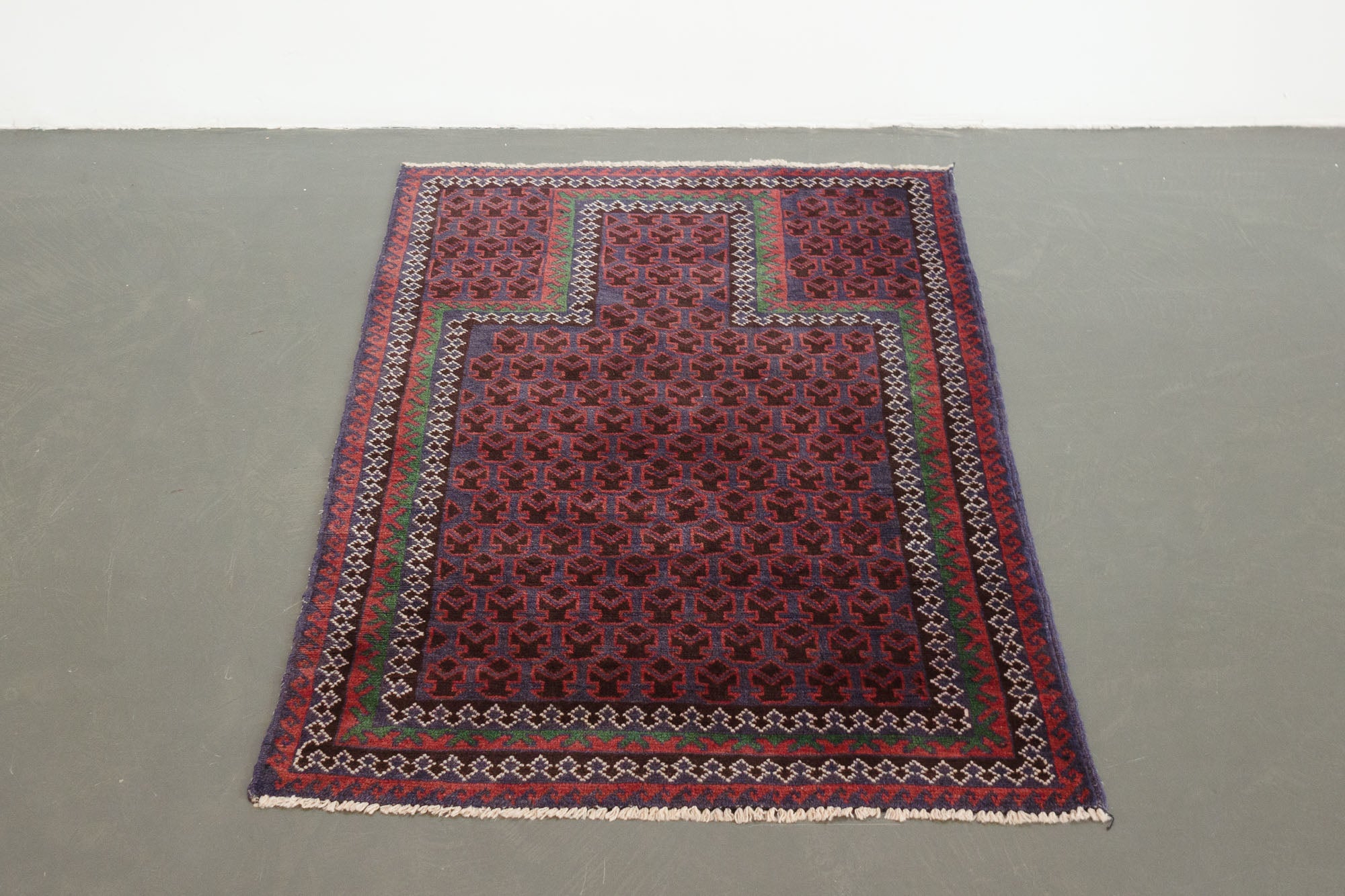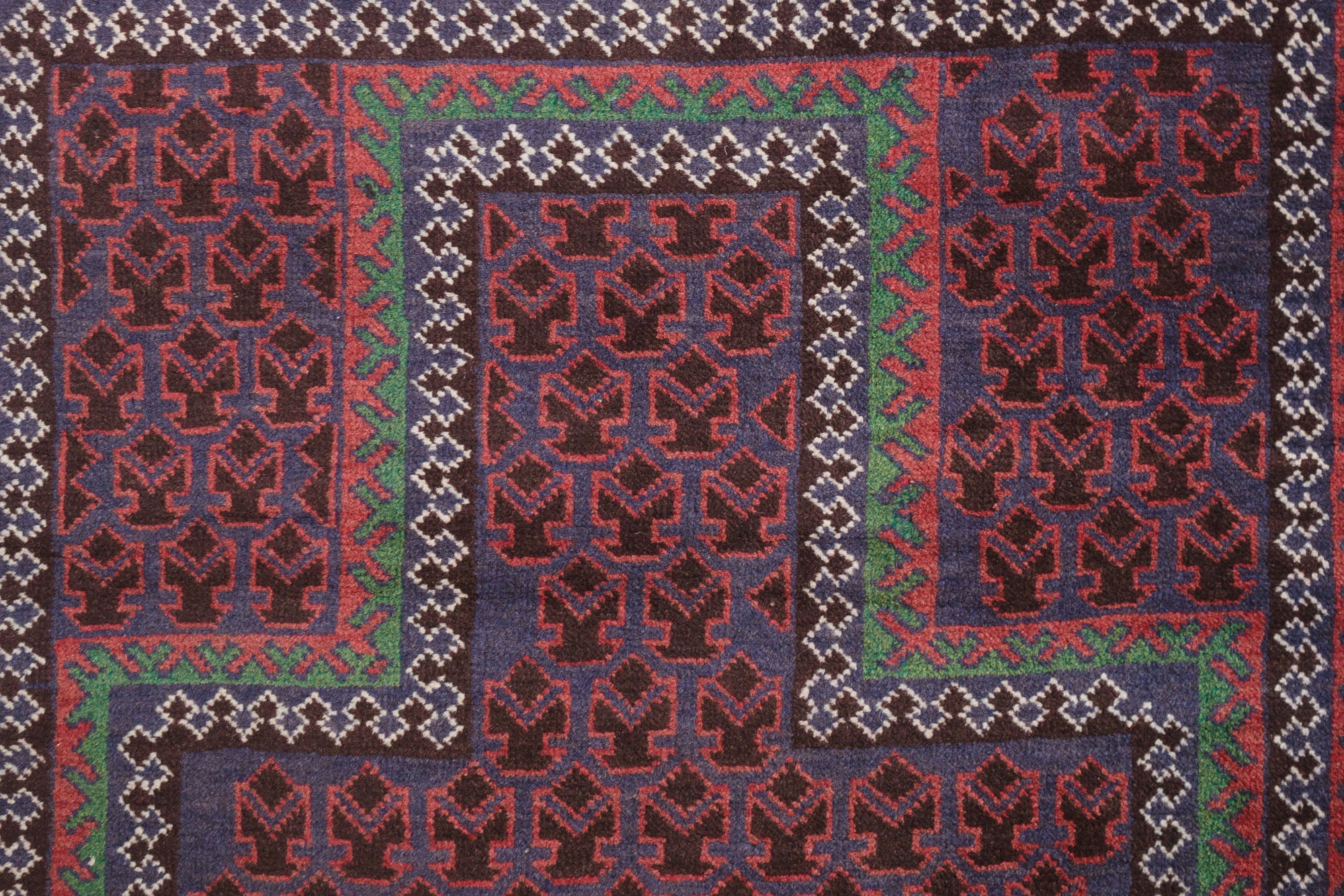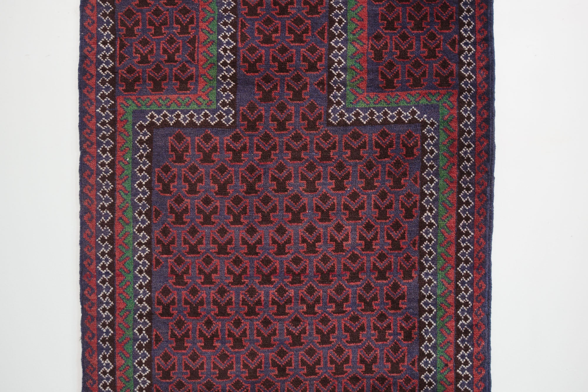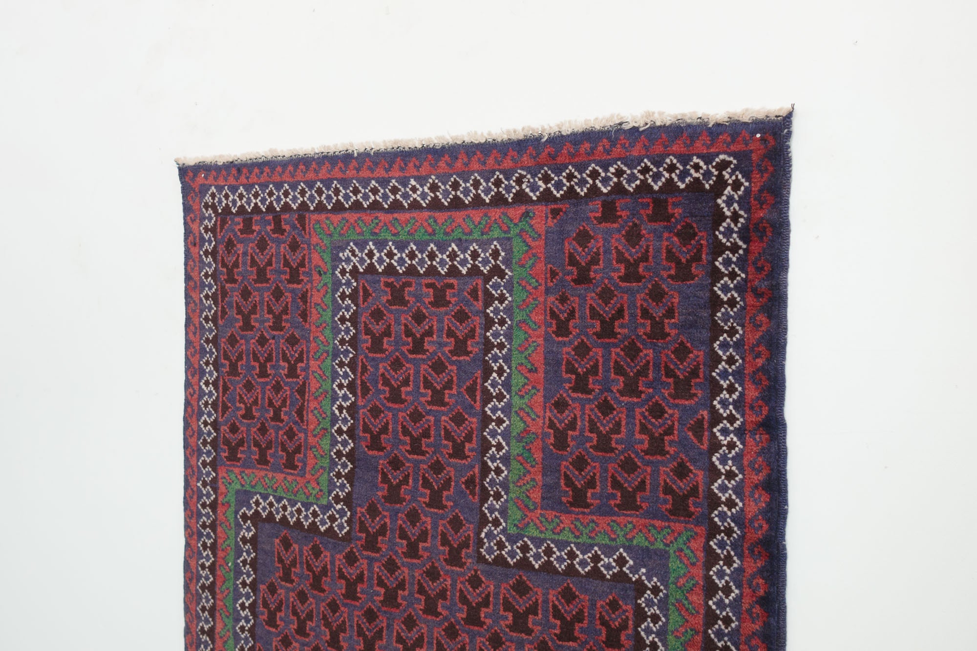 name: Mirwaisorigin: Afghanistanstyle: Baluch, rug, carpetmaterial: hand knotted woolcolor: red, blue, black, cream, greenage: vintage (1940-1969)condition: good, age related wear - see picturesappraised value: $496