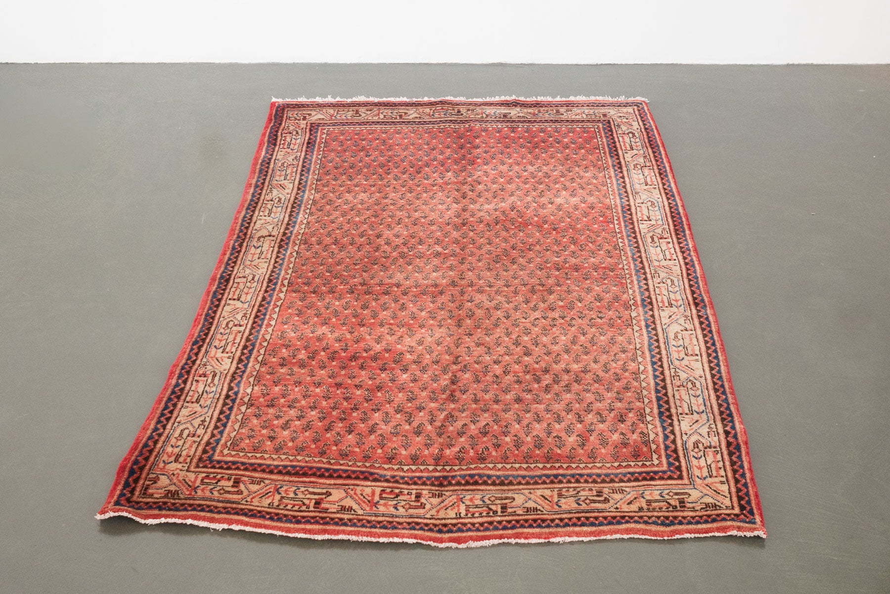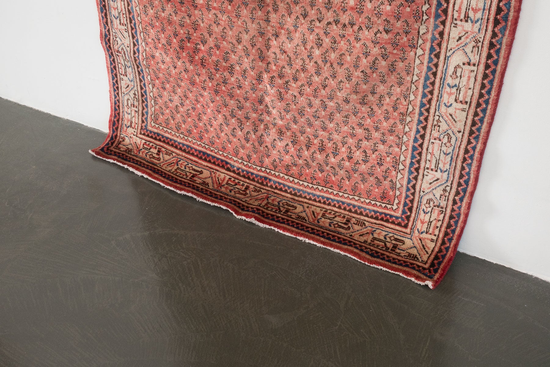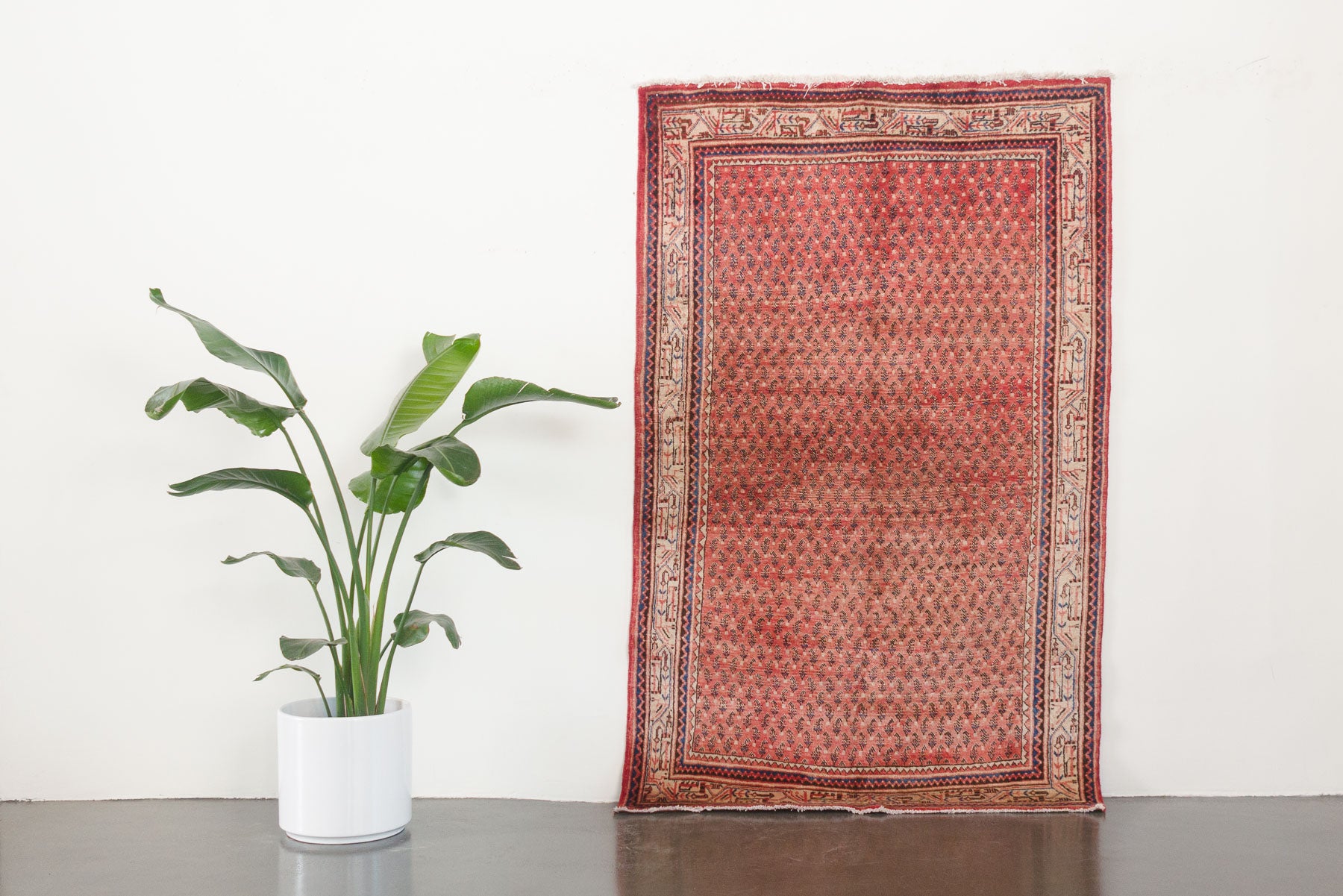 name: Shayganorigin: Iran (Persian), Arakstyle: rug, carpetmaterial: hand knotted woolcolors: pinks, cream, navy, camel, brownage: vintage, 1940-1969condition: good, age related wear - see picturesappraised value: $1,26051" x 80" (closest standard rug size is 4x7)Free domestic shipping on all rugs.Contact us for an international shipping quote.
