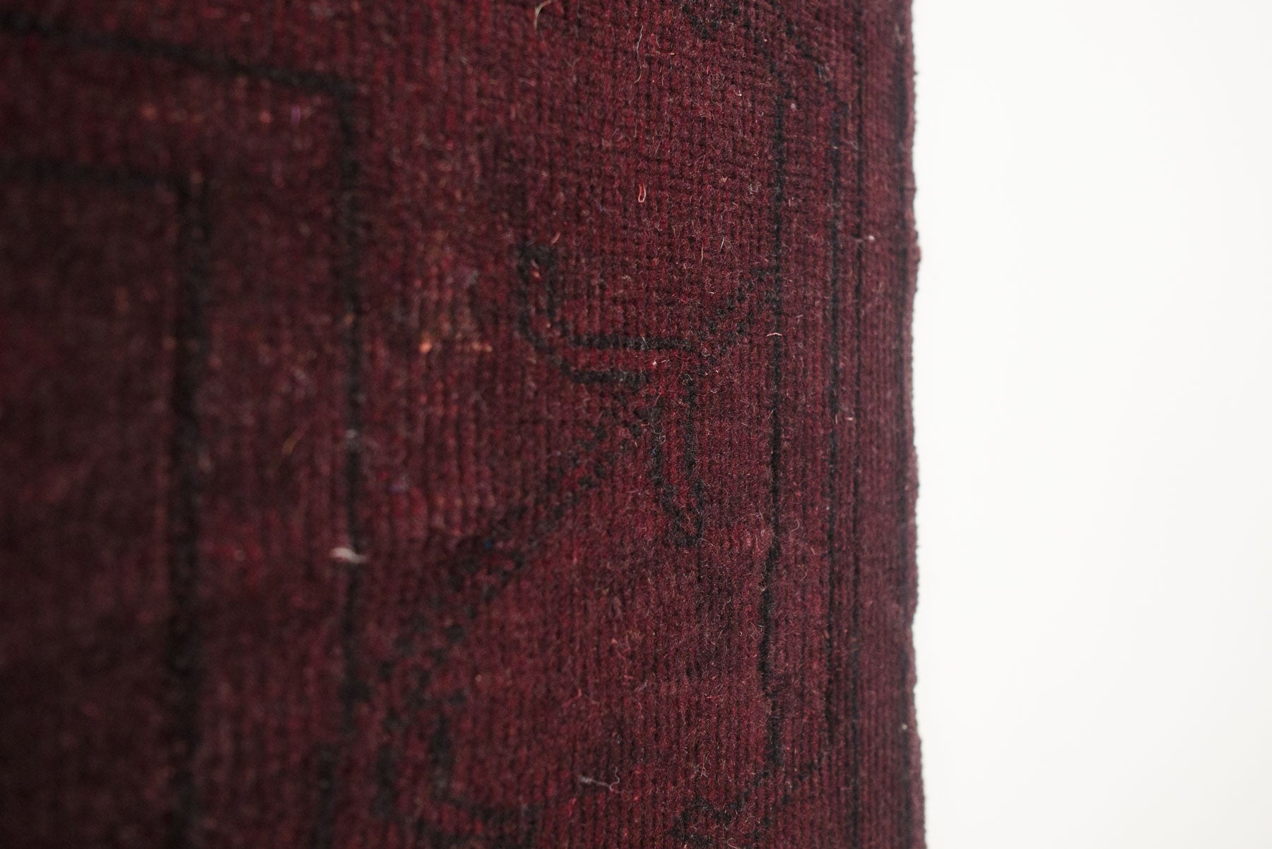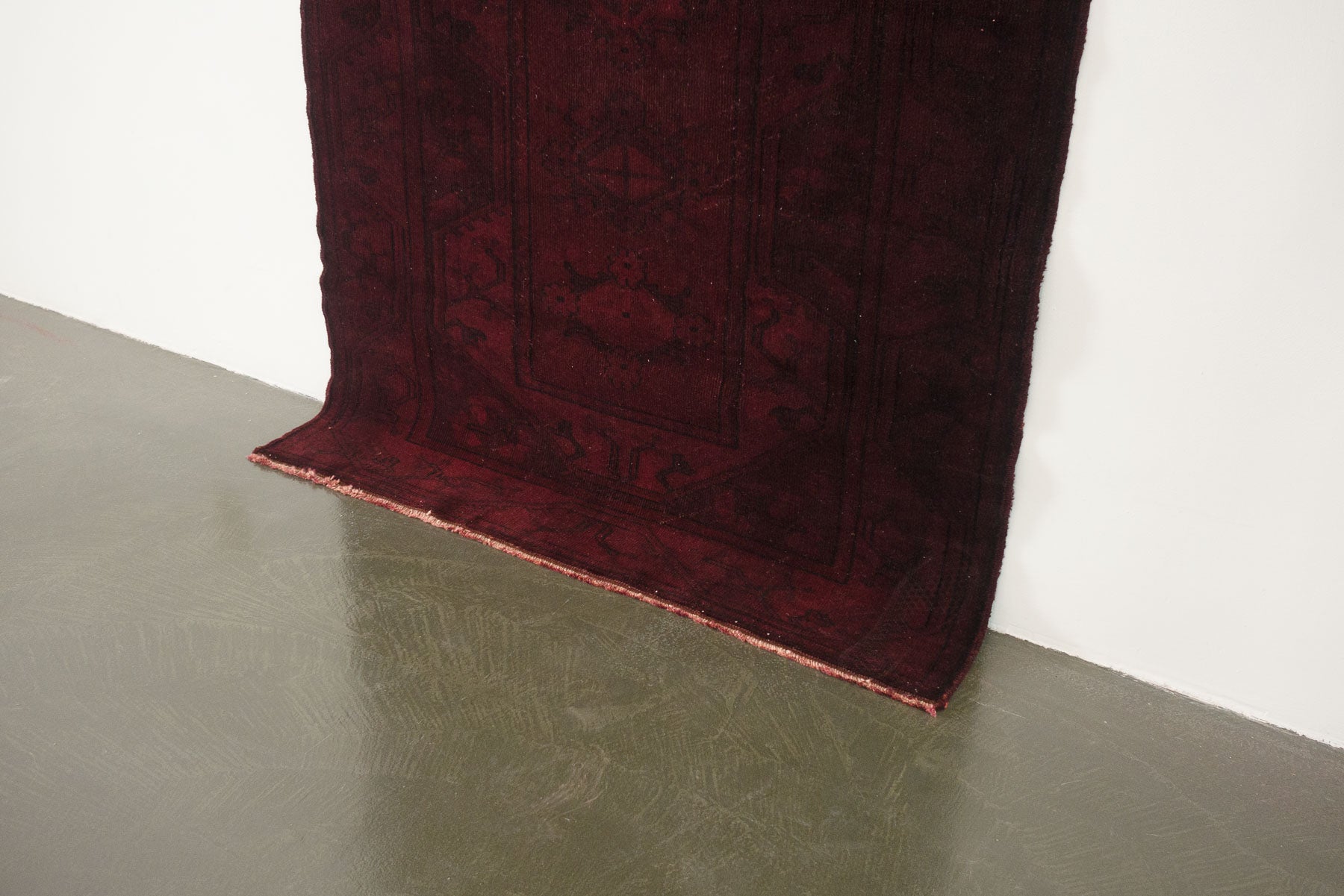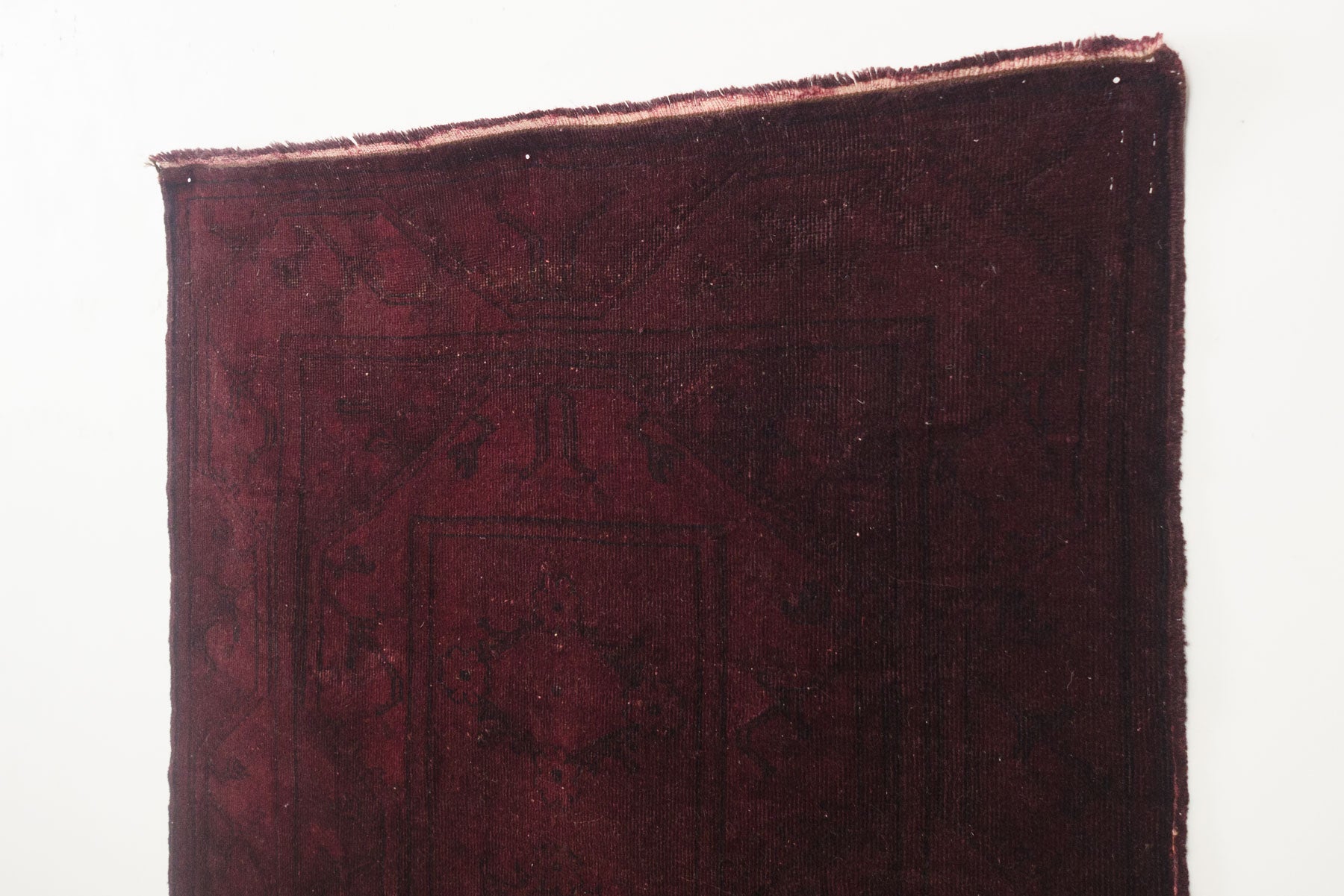 name: Faziletorigin: Turkey style: over-dyed, rug, carpetmaterial: hand knotted woolcolor: red, purple, blackage: vintage, 1940-1970condition: good, age related wear - see picturesappraised value: $936
