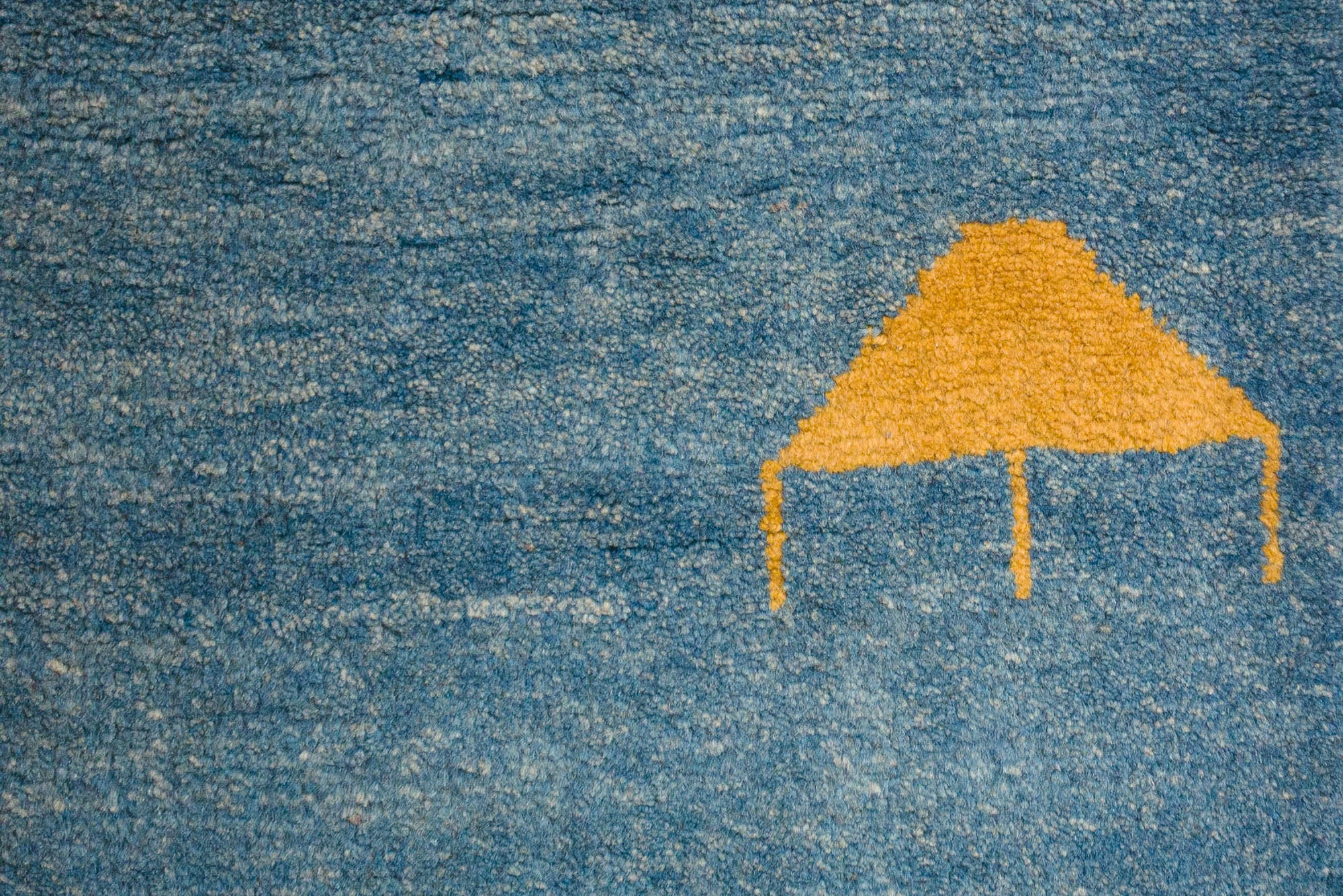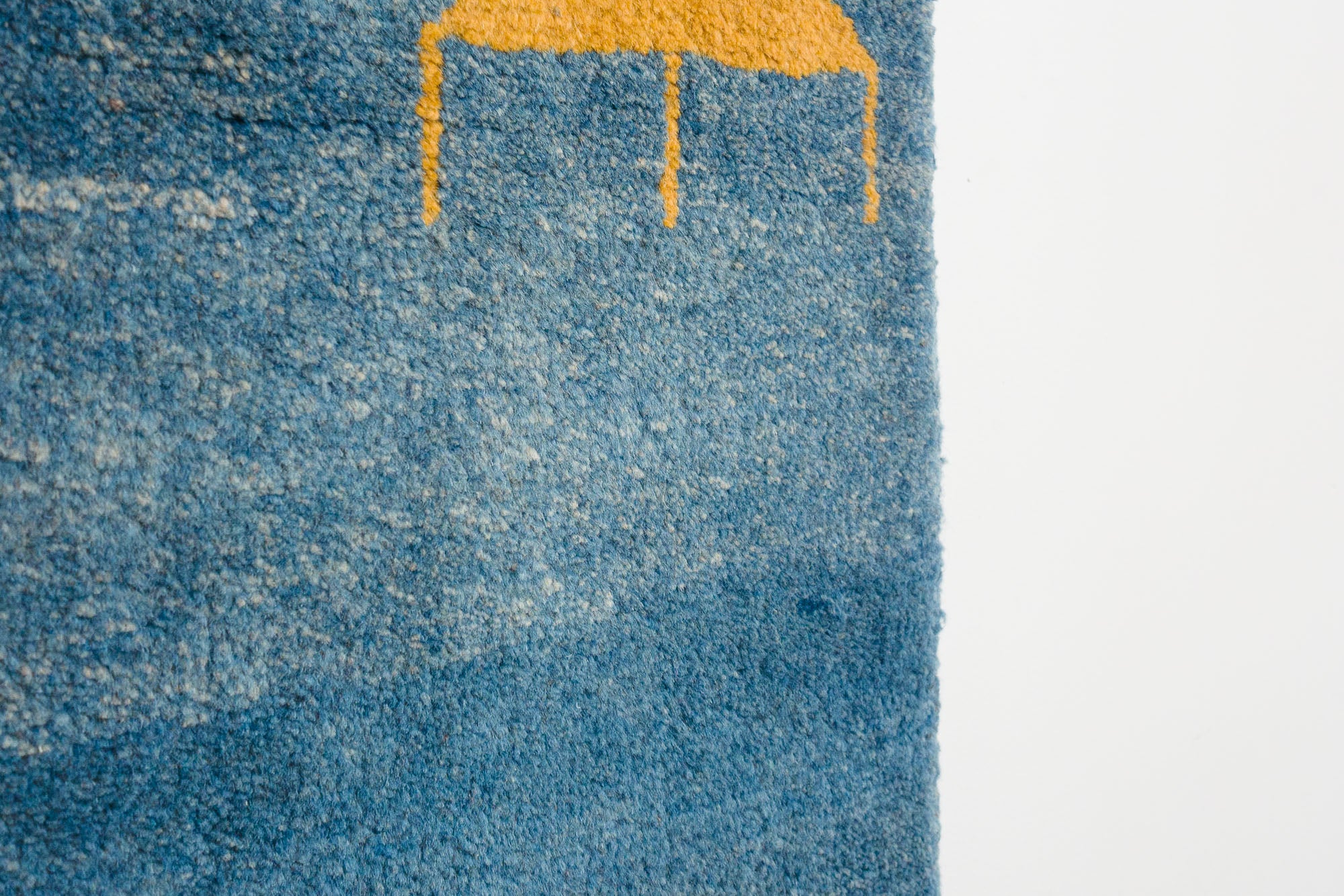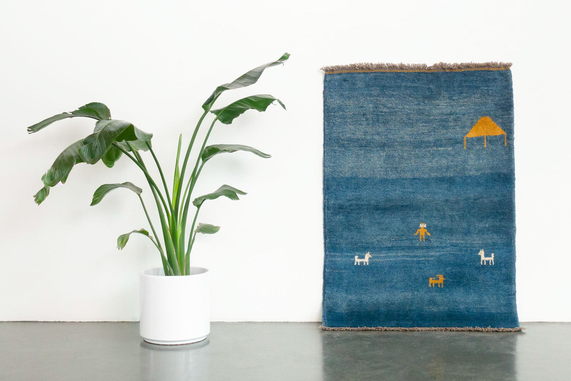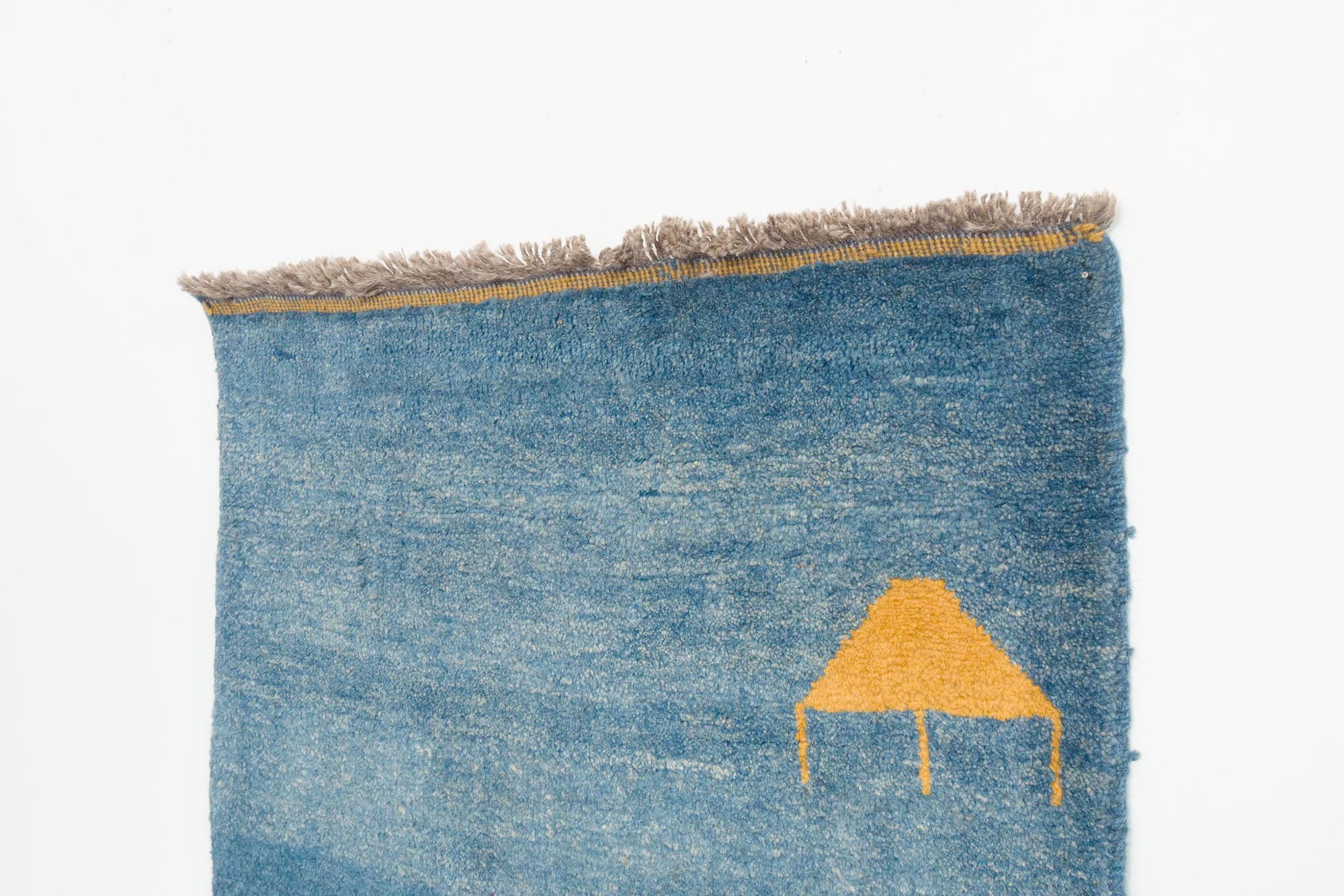 name: Hurdadorigin: Persian (Iran)style: gabbeh, traditional, figural, rug, carpetmaterial: hand knotted woolcolor: blue, yellow, creamage: vintage (1940-1969)condition: good, age related wear - see picturesappraised value: $876