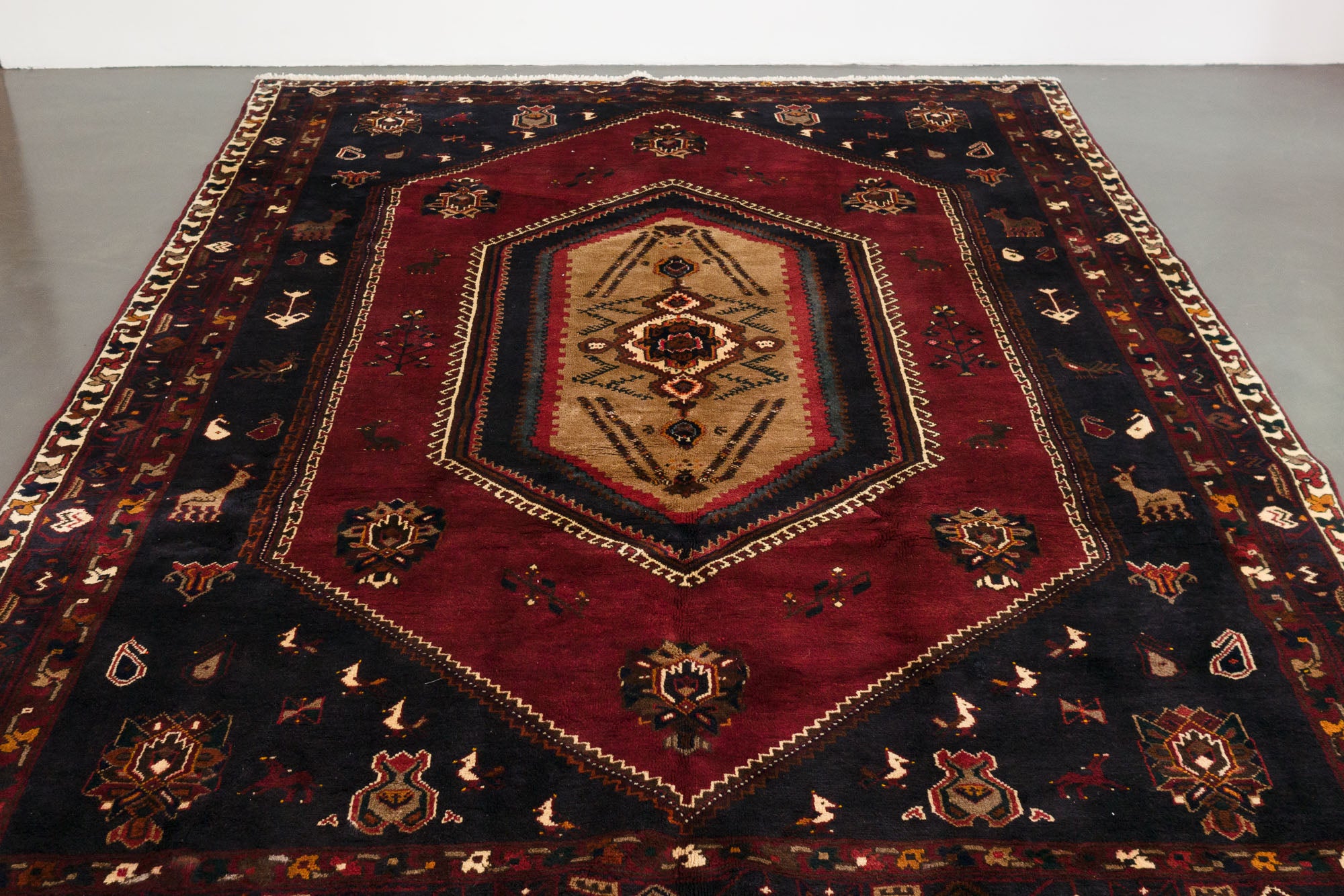 name: Izadorigin: Persia (Iran)style: roodbar, rug, carpet material: hand knottedwoolcolors: black, red, yellow, brown, orange, blue, creamage: vintage (1940 - 1969)condition: good, age related wear, no holes - see picturesappraised value: $4,276