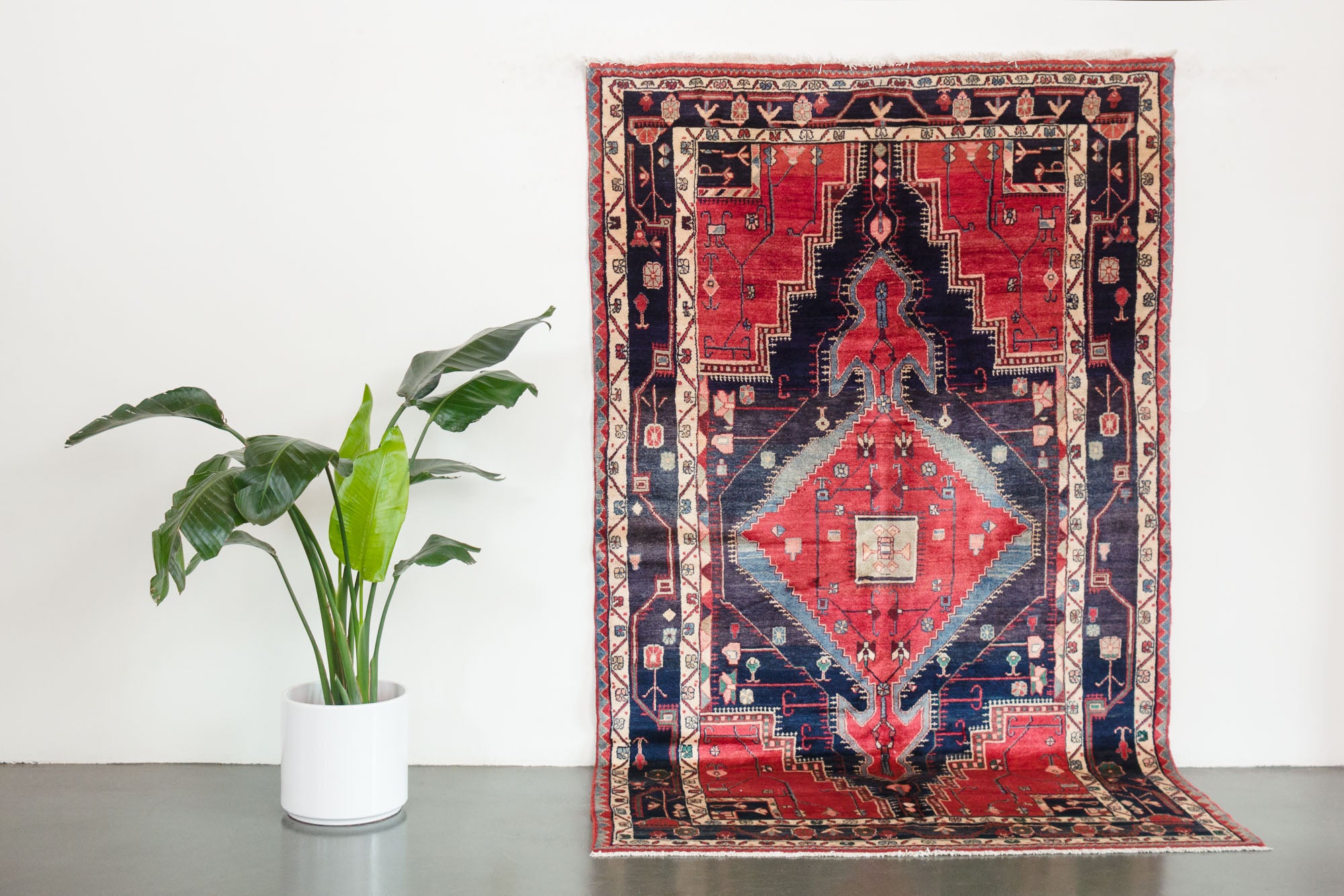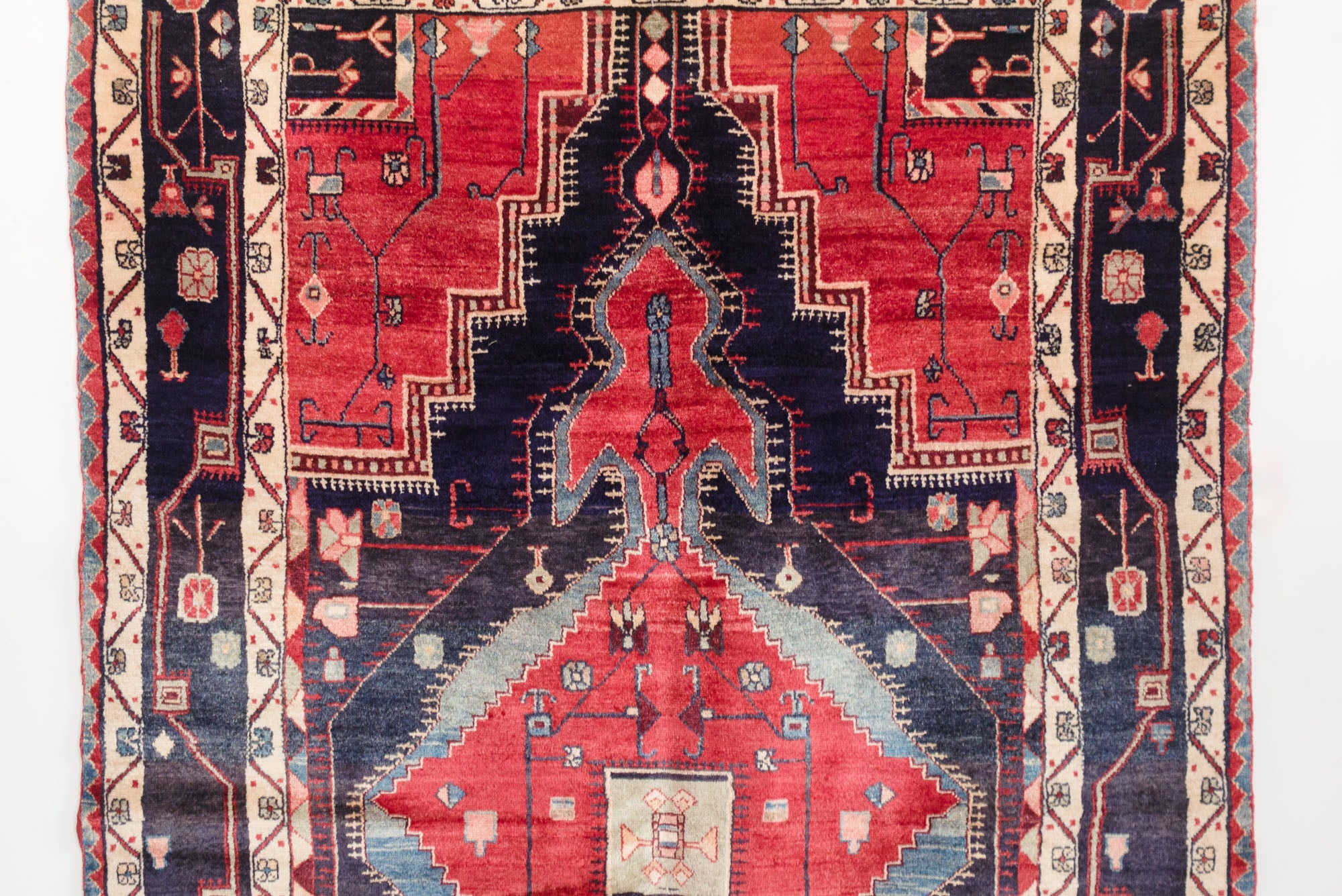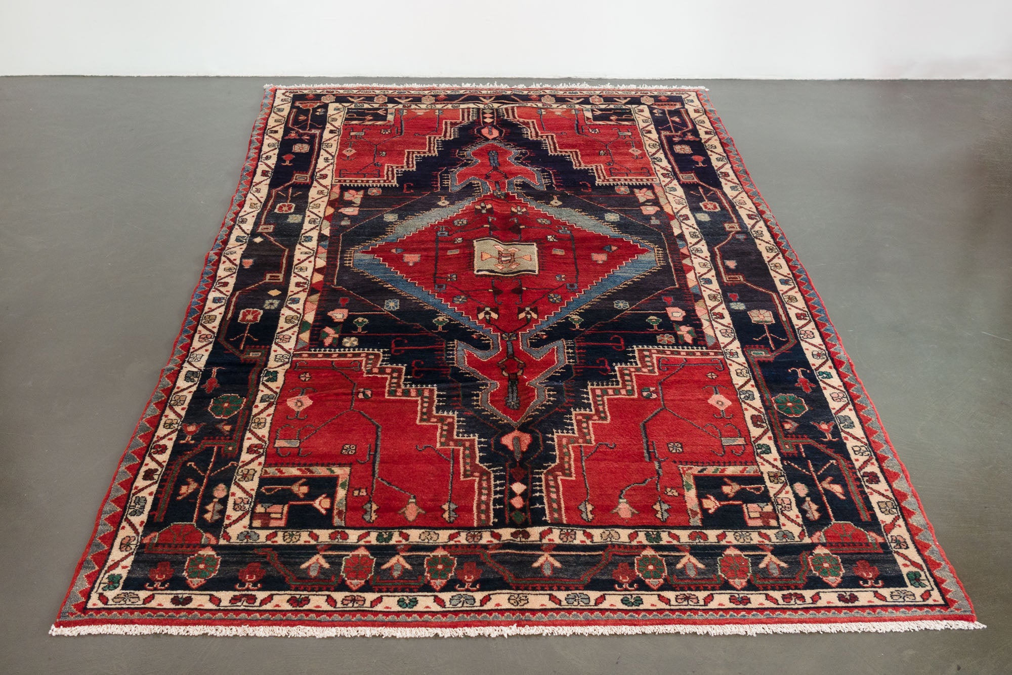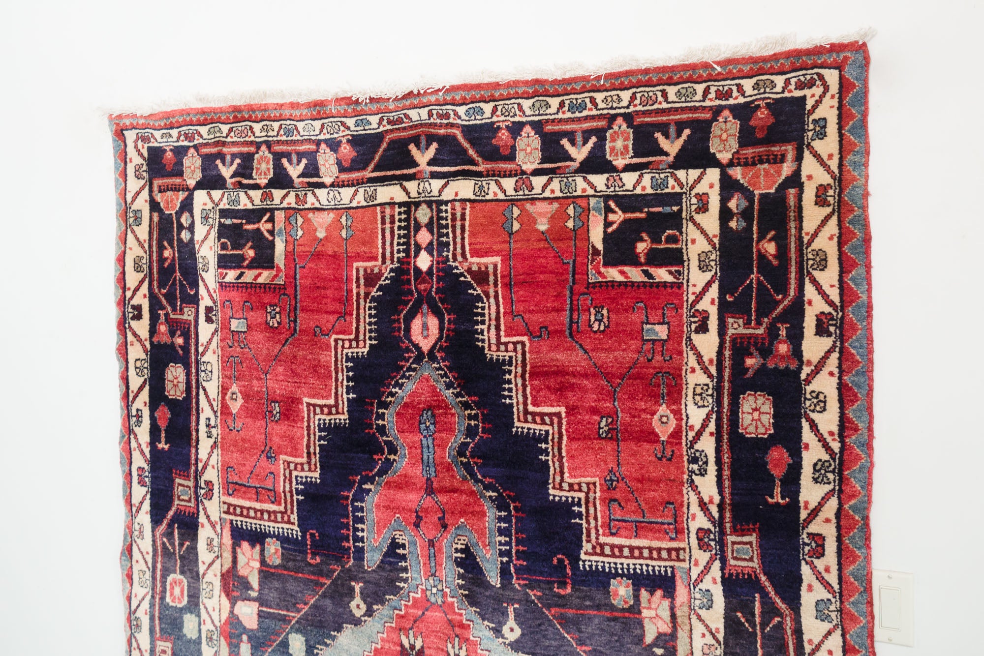 name: Armanorigin: Iran (Persia)style: rug, carpet material: hand knotted woolcolors: red, navy, blue, green, brown, pink, creamage: vintage (1940 - 1969)condition: good, age related wear, no holes - see picturesappraised value: $2,716