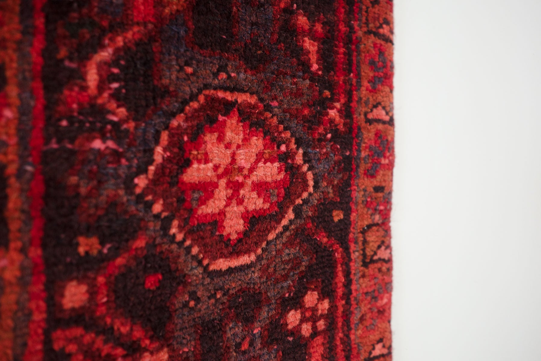 name: Sirmonorigin: Iran (Persian), Bayakstyle: rug, carpetmaterial: hand knotted woolcolors: reds, black, brown, blue age: vintage, 1940-1970condition: good, age related wear - see picturesappraised value: $3,476