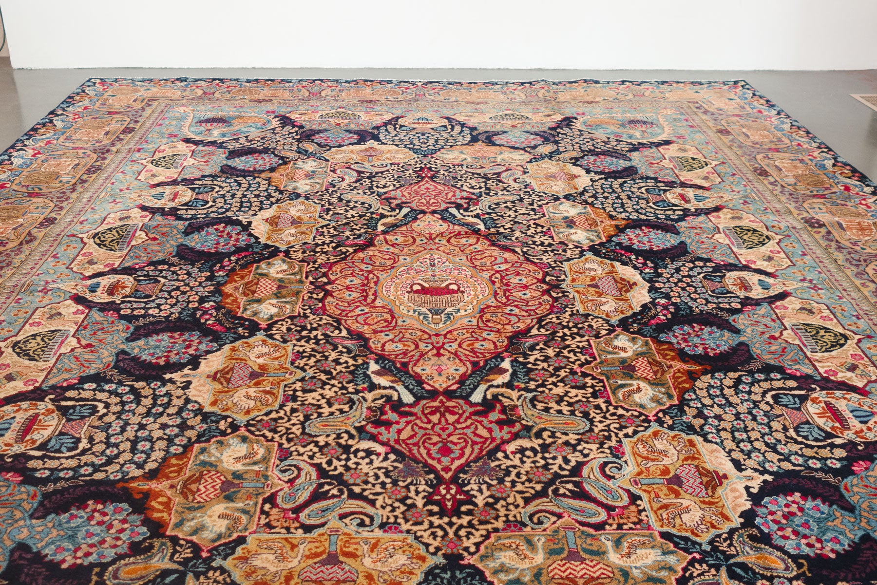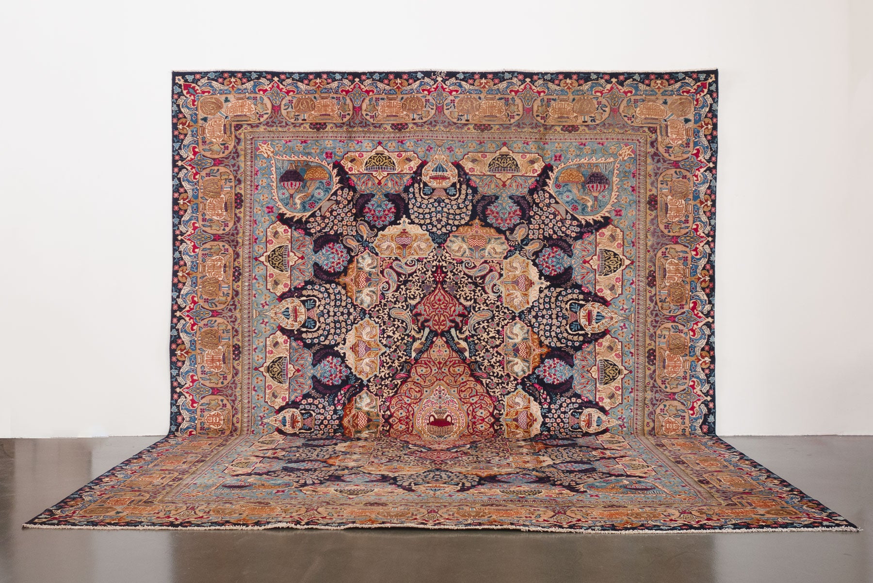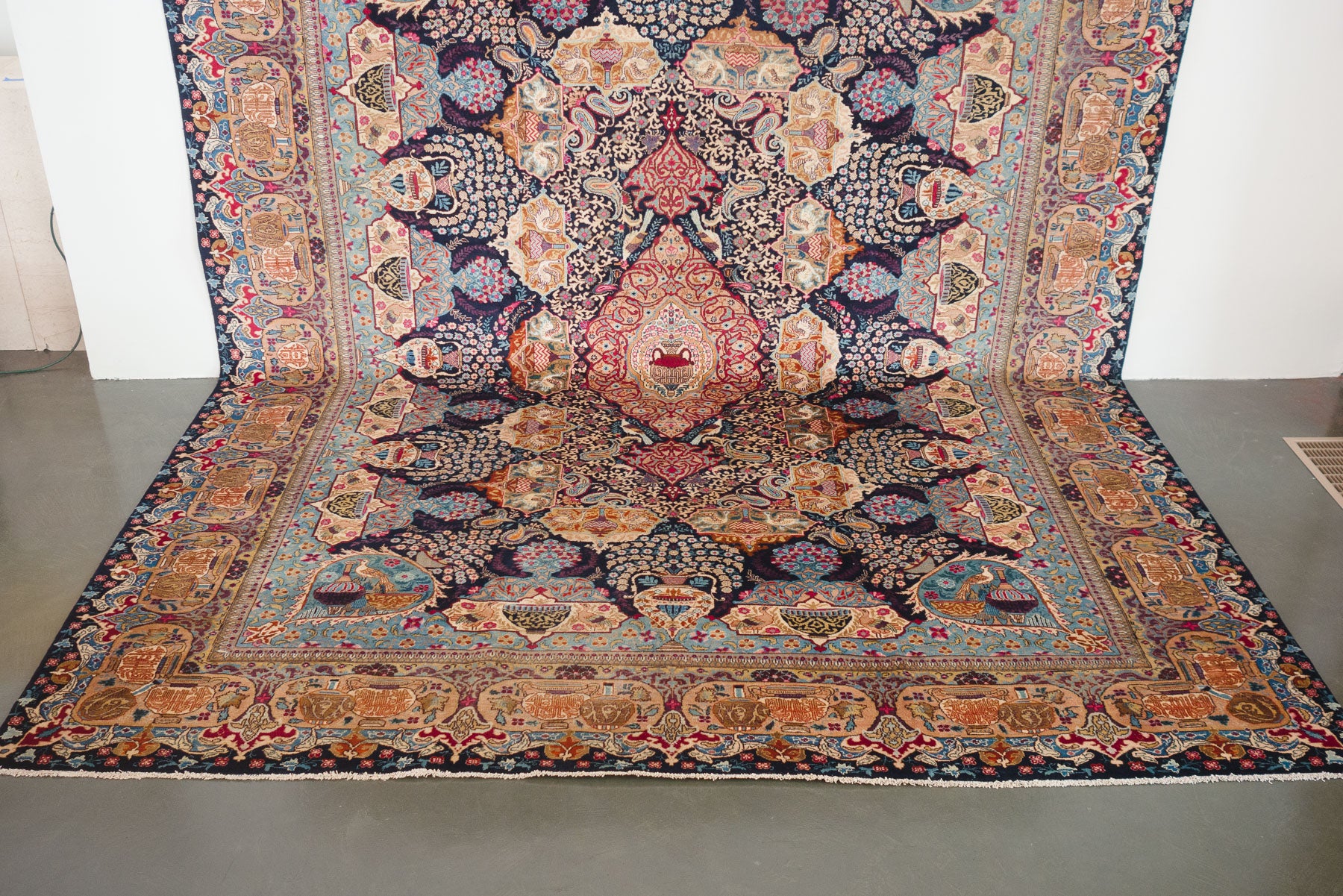 118" x 151" (closest standard rug size is 9.5x12.5)