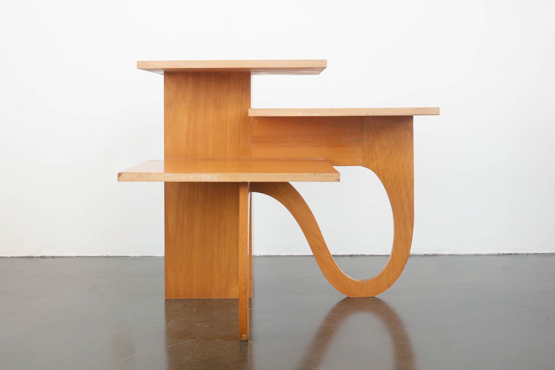 style: modern, mod, square, tiered, side table, end table material: wood (custom cut) age: vintage, Mid Century condition: good, age related wear - see pictures