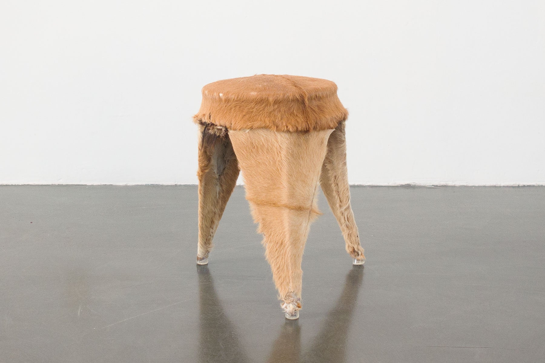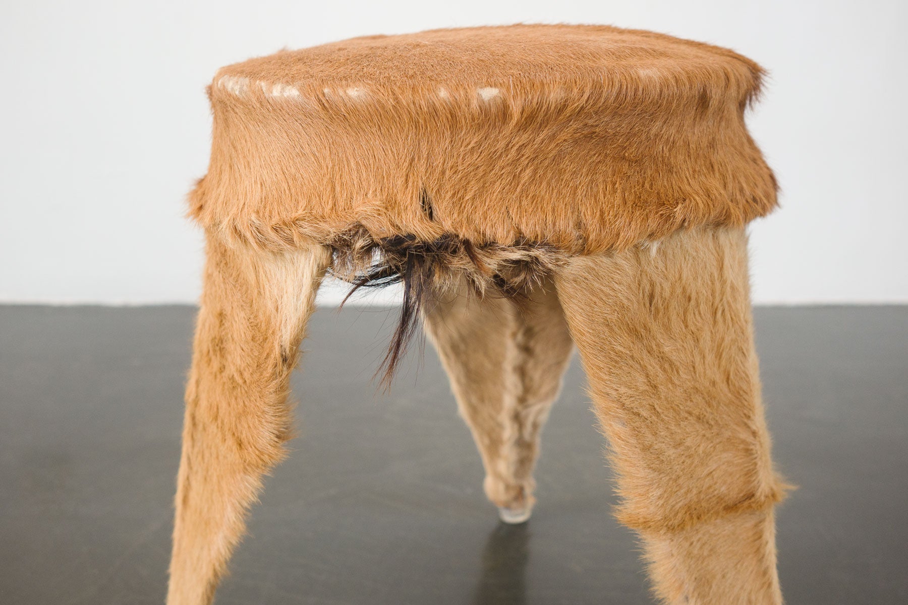 style: hand crafted, stoolmaterial: fur, metal frameage: vintagecondition: good, age related wear - see pictures