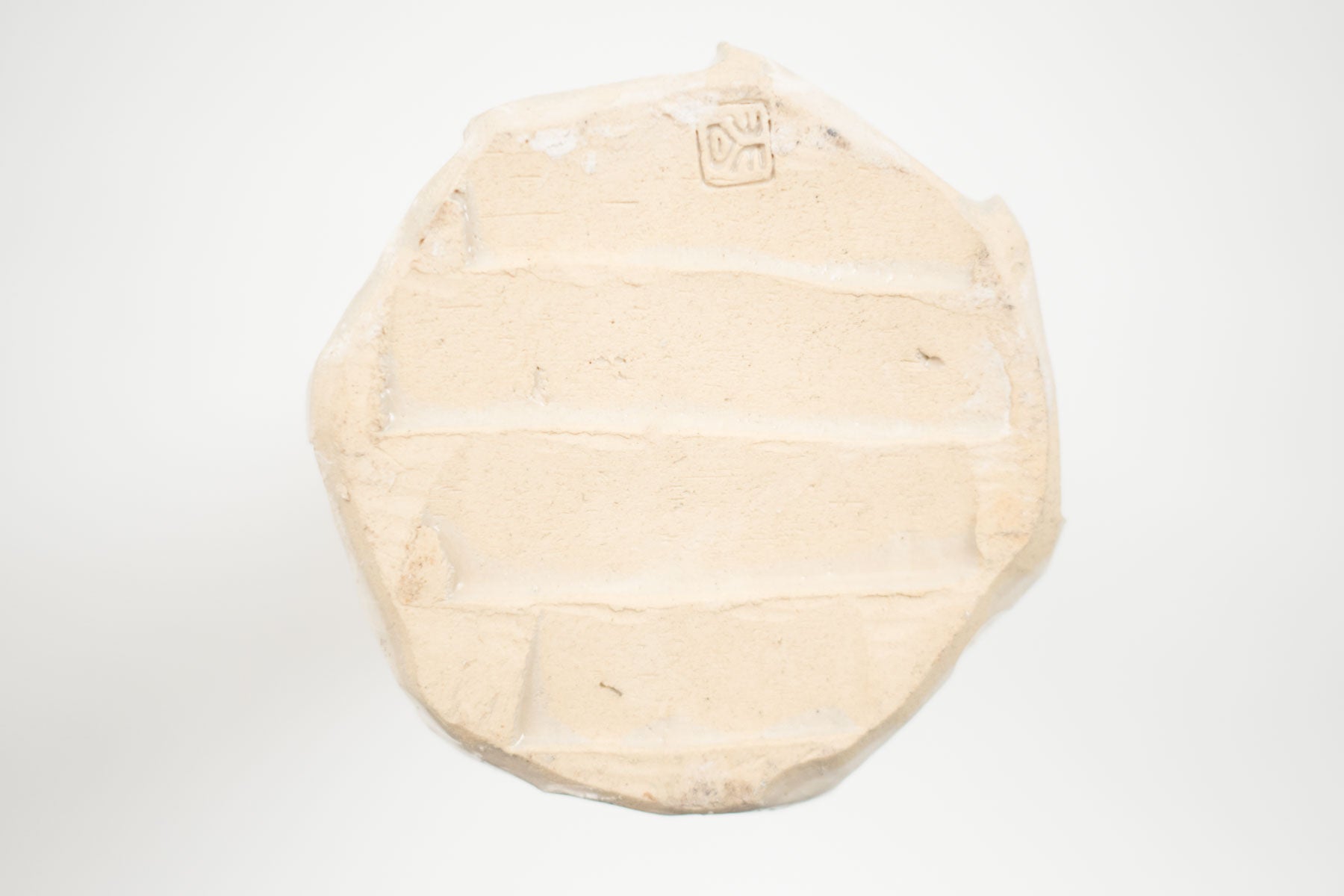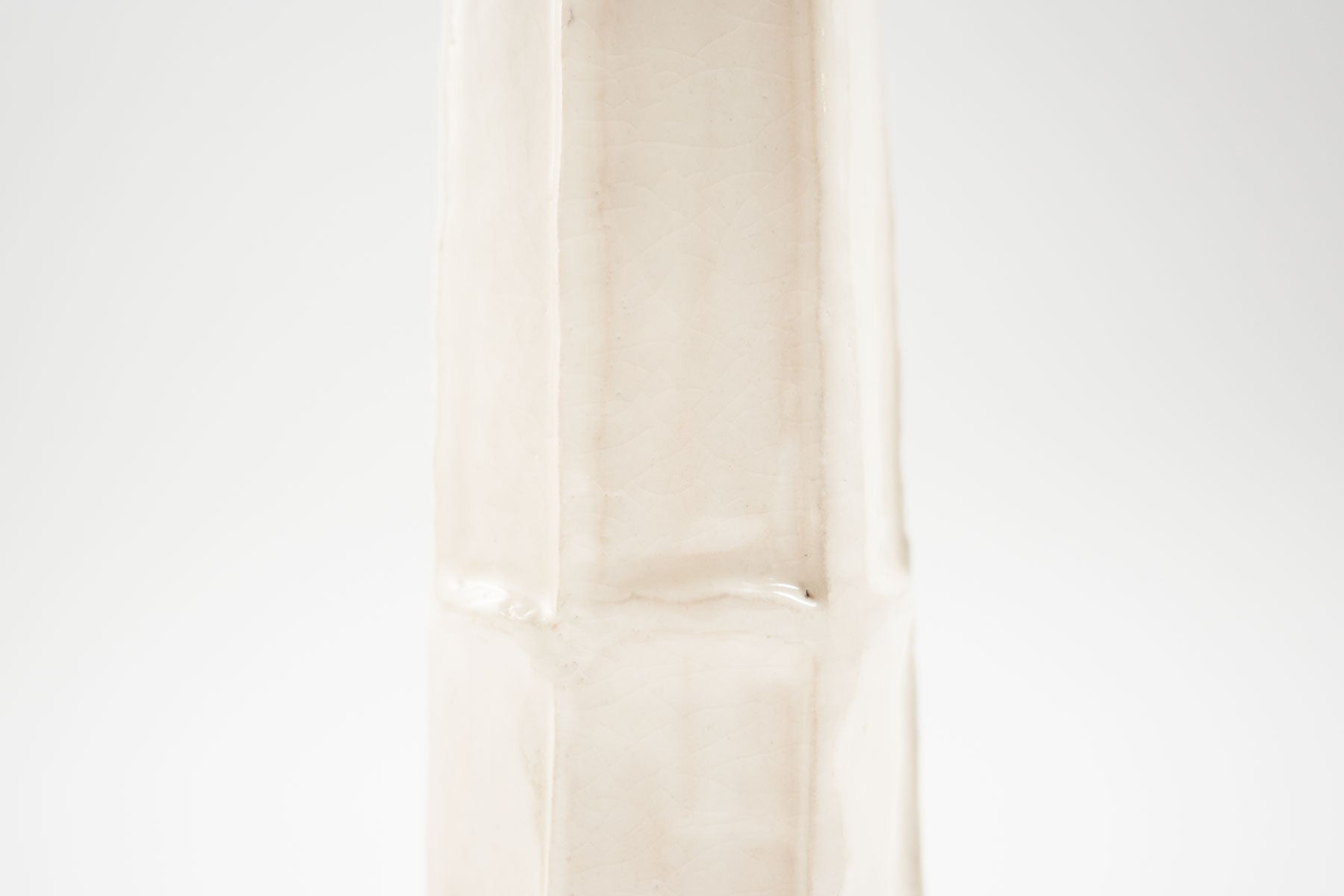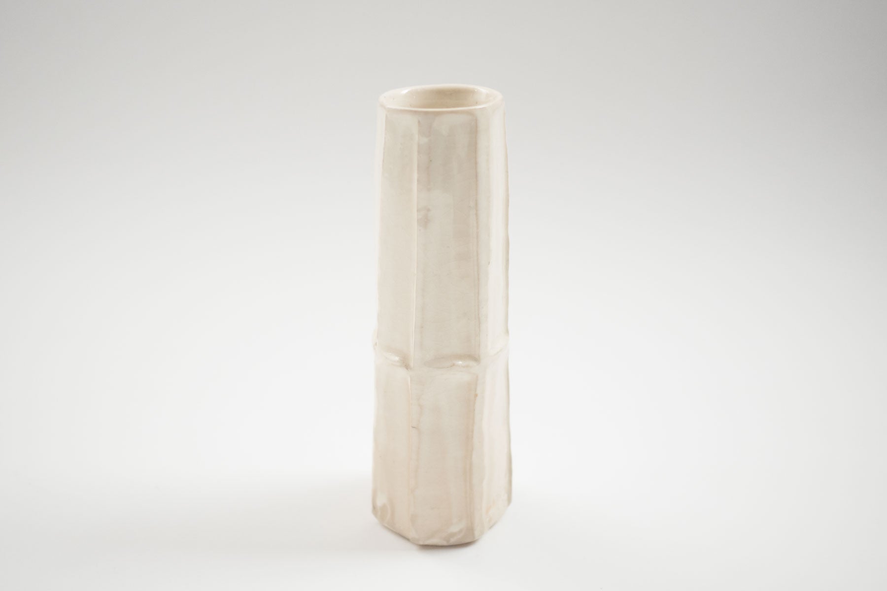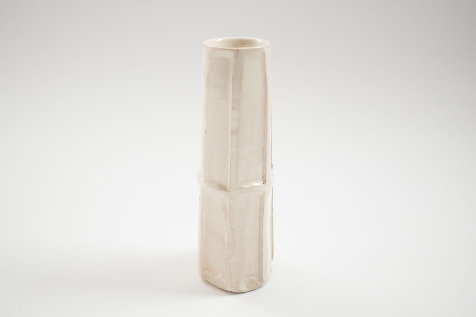 style: hand built, ceramic, studio pottery, display, vase, 5-sided material: clay, glaze - cream, tan age: vintage, Mid Century condition: good, age related wear - see pictures