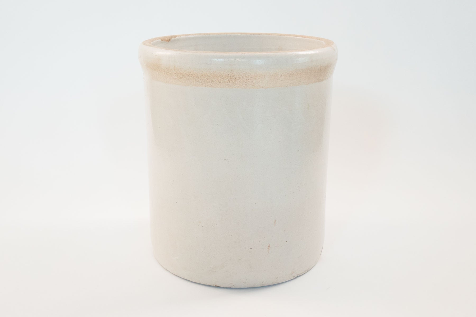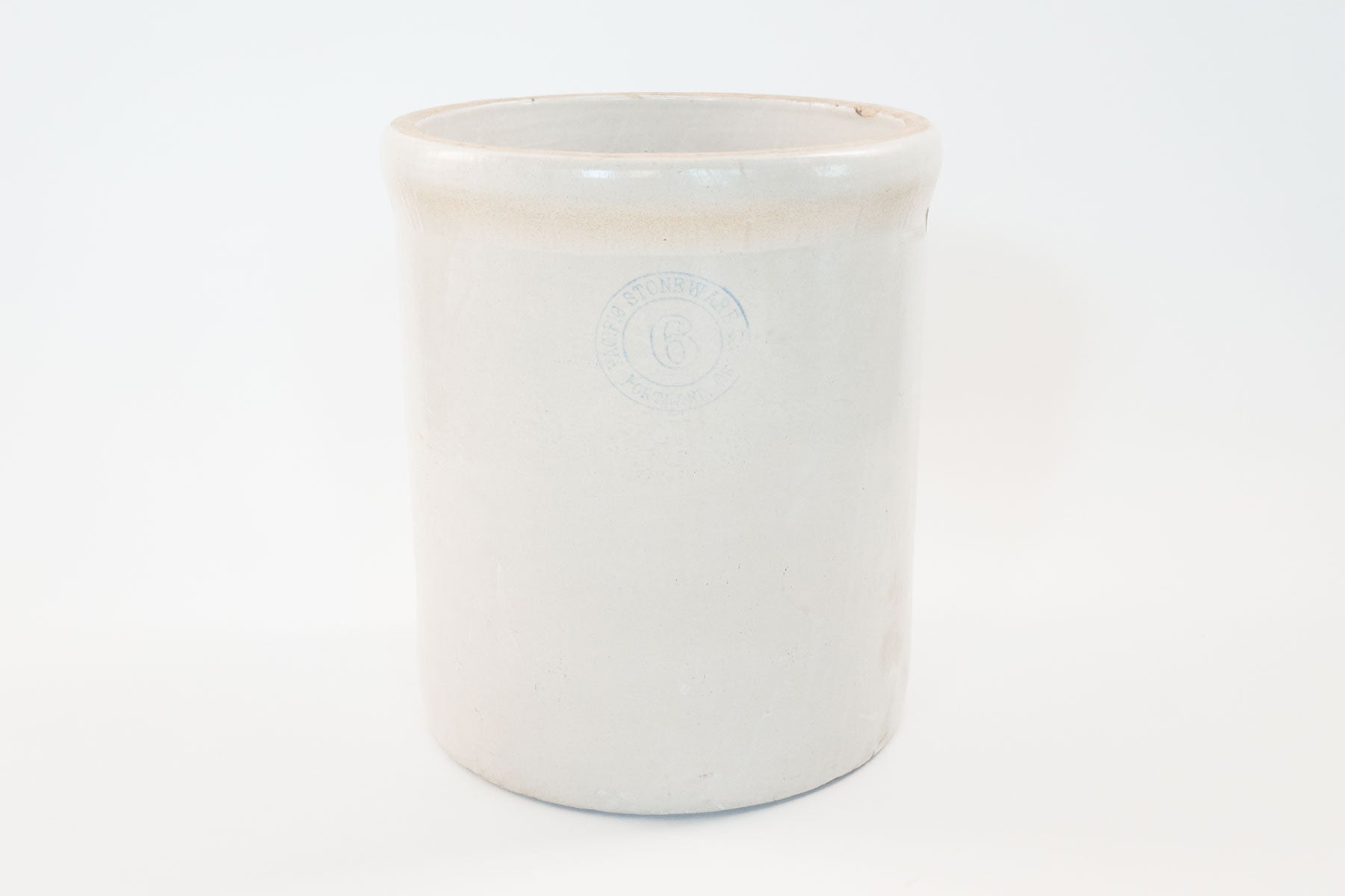 style: crock, pot, planter, ceramic, non-draining, storage, 6 gallonmaterial: clay, glazebrand: Pacific Stonewareage: antiquecondition: good, age related wear - see pictures
