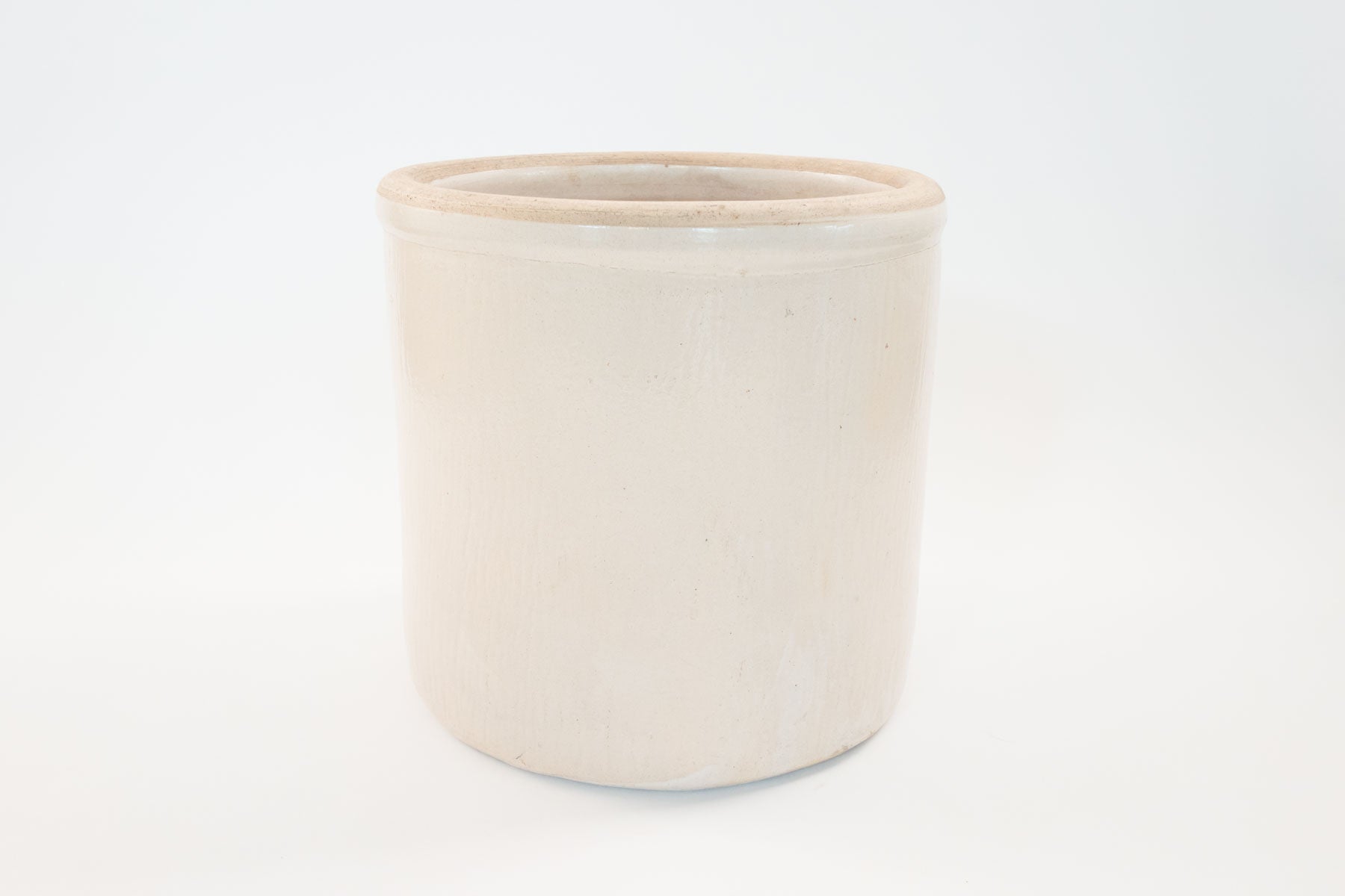 style: crock, pot, planter, ceramic, non-draining, storage, 5 gallonmaterial: clay, glazeage: antiquecondition: good, age related wear - see pictures