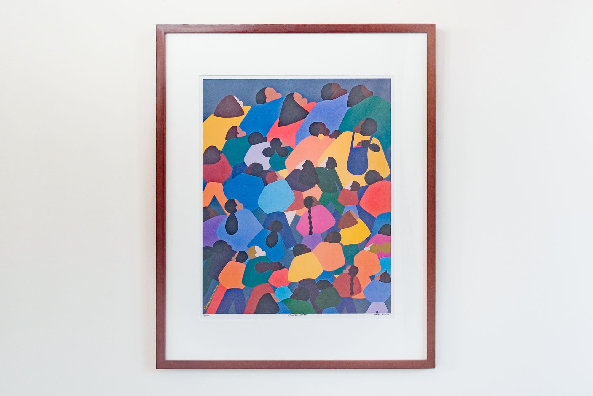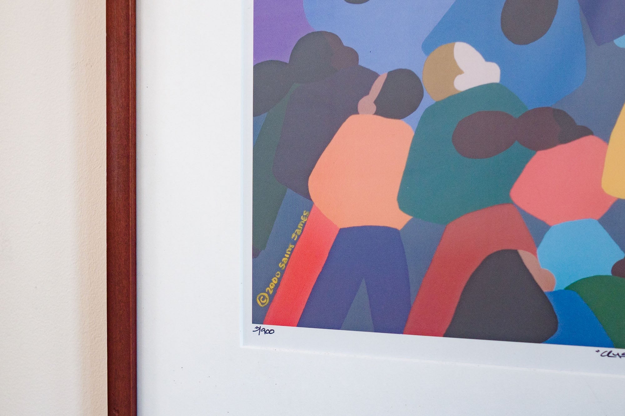 style: signed, original, abstract, lithographmaterial: paper, wood framesigned: Synthia St James age: vintage, 2000condition: good, age related wear - see picturessku: wa-155