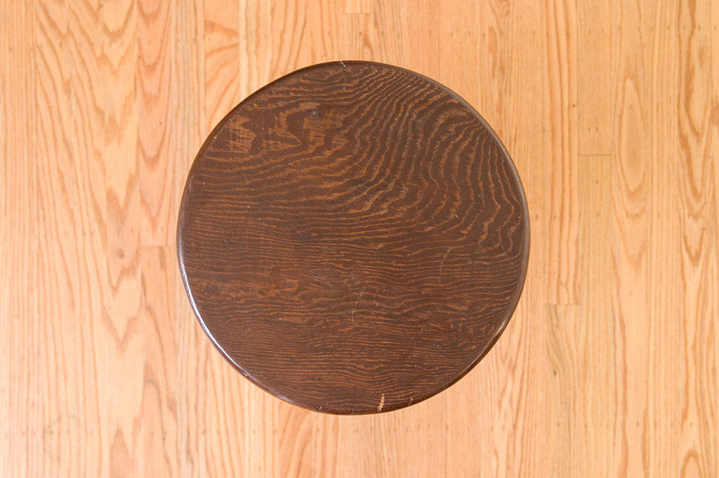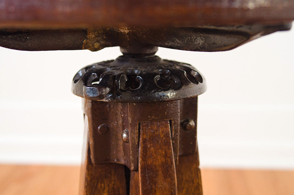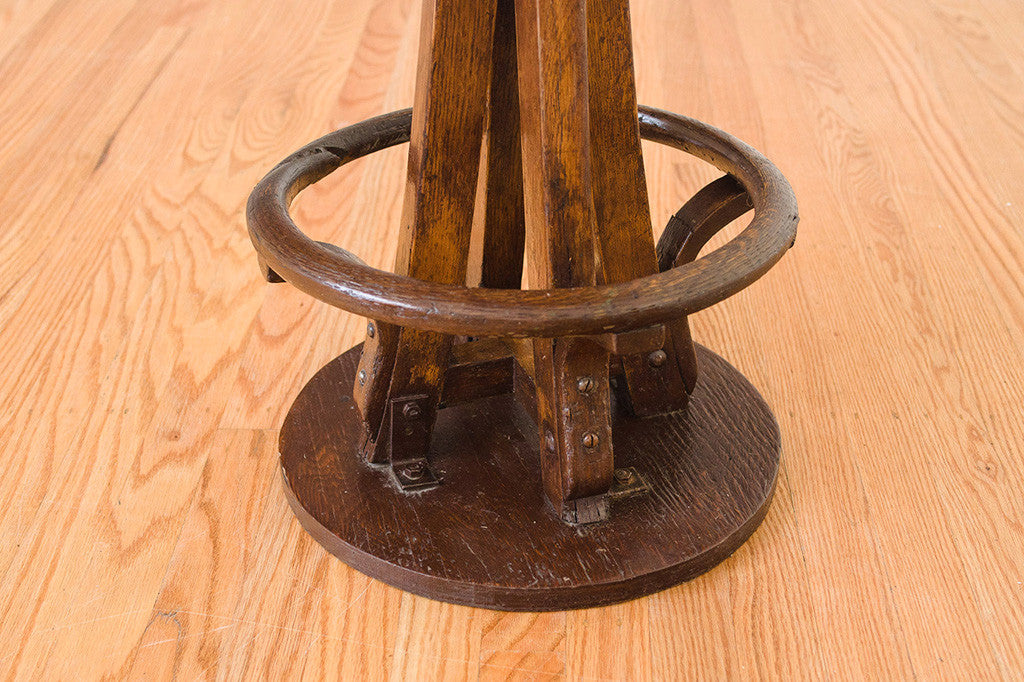 This vintage stool would be perfect with a drafting table or at a kitchen island. It could also be used as a plant stand or side table. It has a naturally distressed finish, rotating seat and footrest. Please see pictures for detailed condition of this piece.