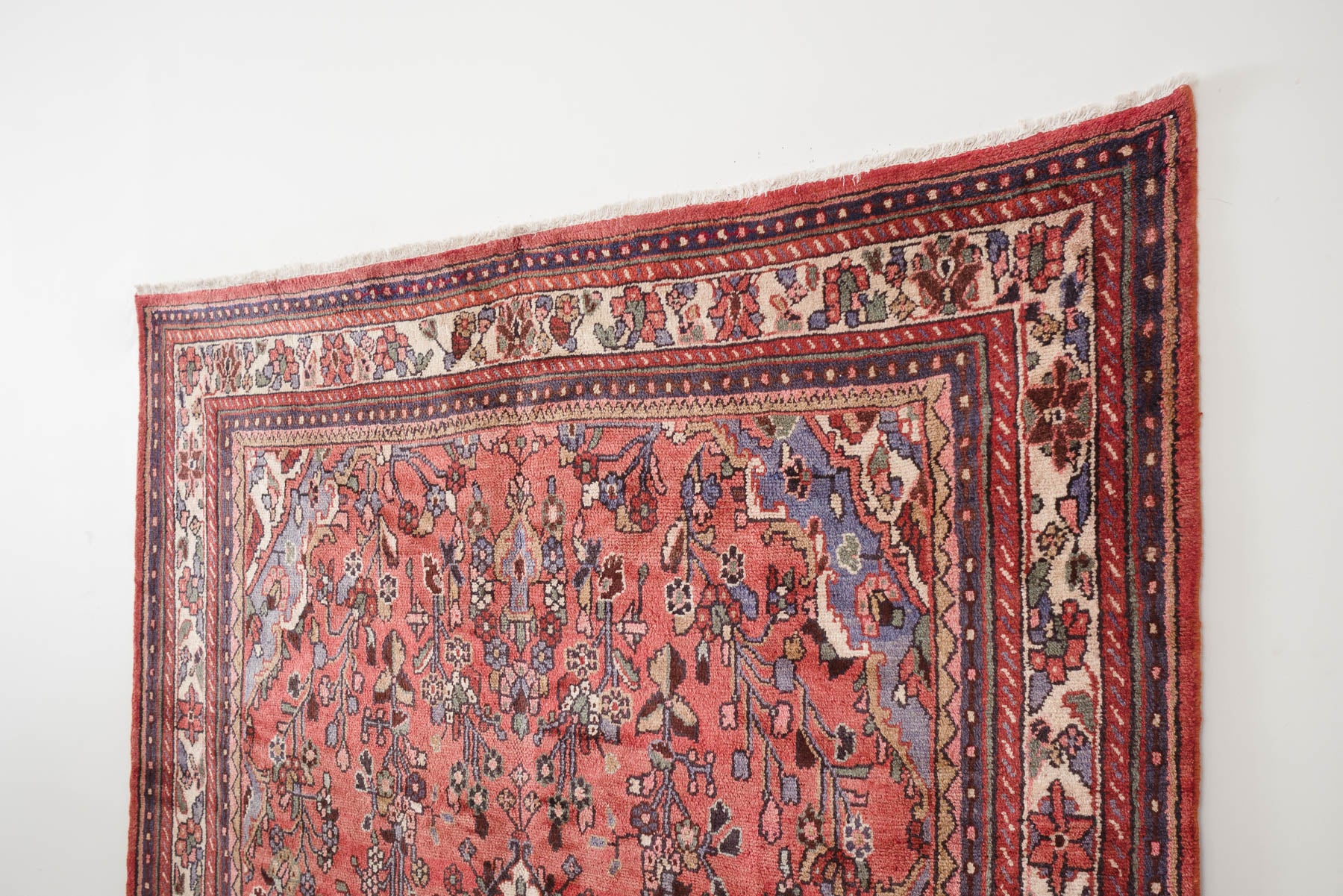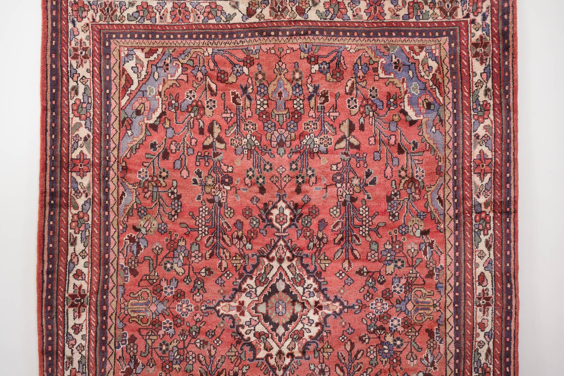 name: Sarmadstyle: hand knotted, Persian, Lilihan, rug, carpetmaterial: woolcolors: oxblood, burgundy, coral, green, tan, brown, greyage: vintage condition: good, age related wear - see pictures84" x 117" (closest standard rug size is 7x10)Free domestic shipping on all rugs.Contact us for an international shipping quote.