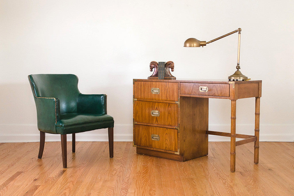 looker. It's upholstered in emerald green Naugahyde with brass nailhead