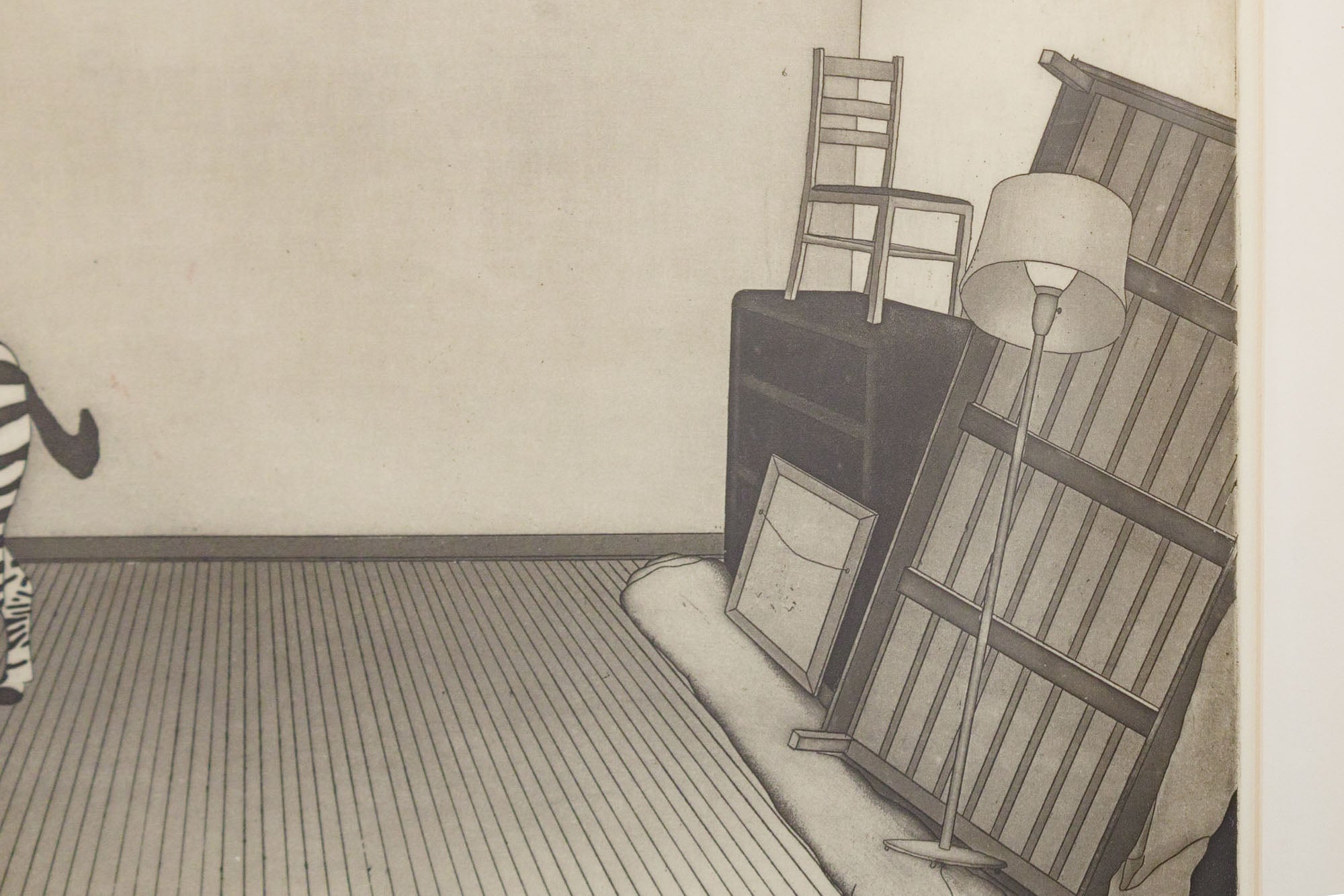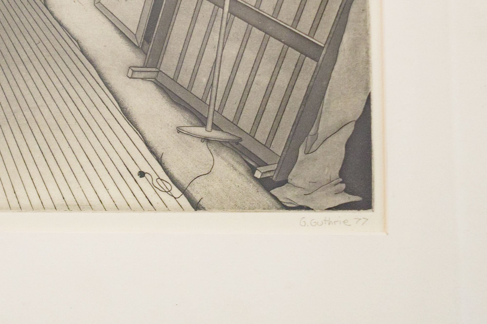 style: signed, original, surrealist, etching, sketch, drawingmaterial: paper, wood framesigned: G. Guthrie age: vintage, 1977condition: good, age related wear - see picturessku: wa-15424.25" x 18.25"We ship nationwide. Contact us for a more exact or combined shipping quote.