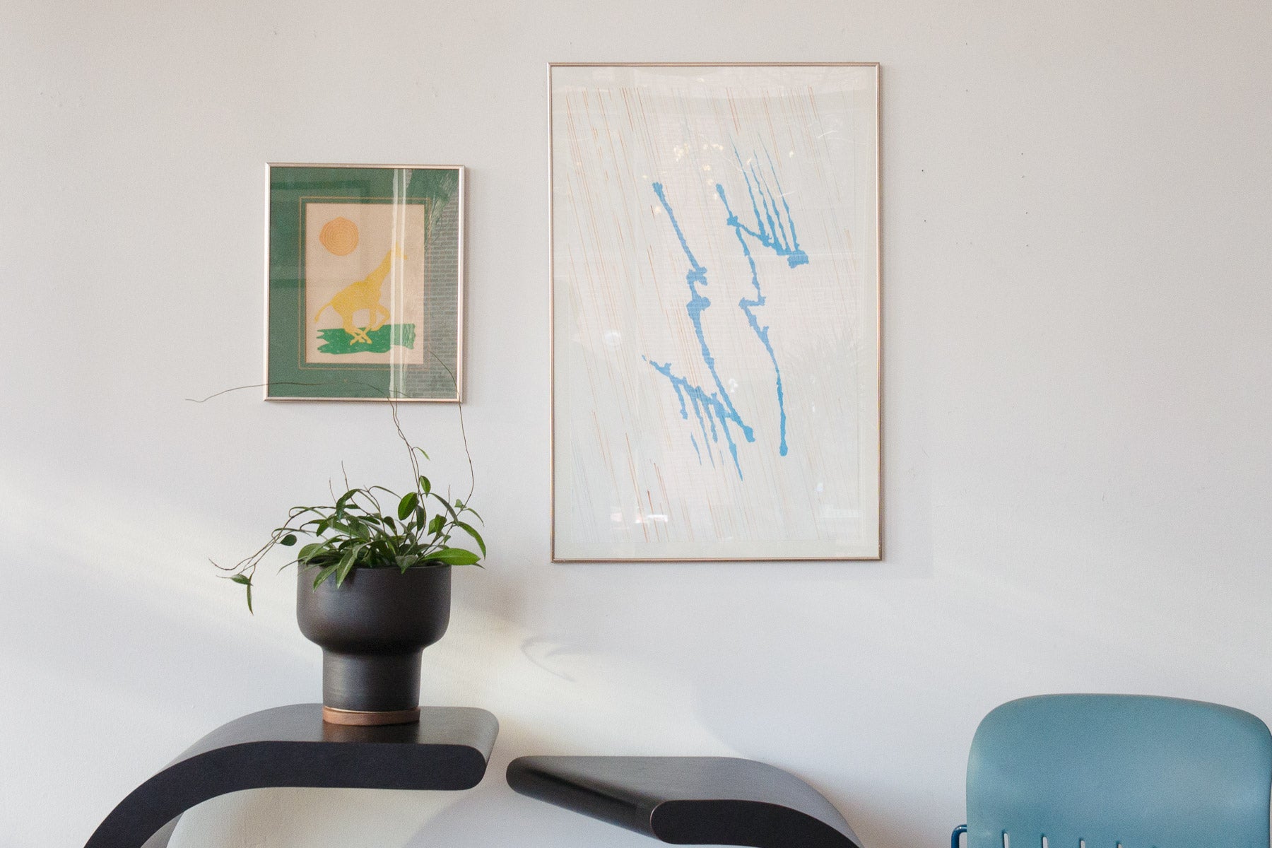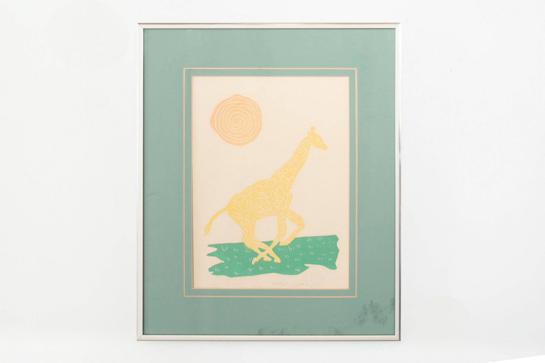 style: original, modern, framed, block screen print material: paper, paint, metal, glassage: vintagecondition: good, age related wear - see pictures