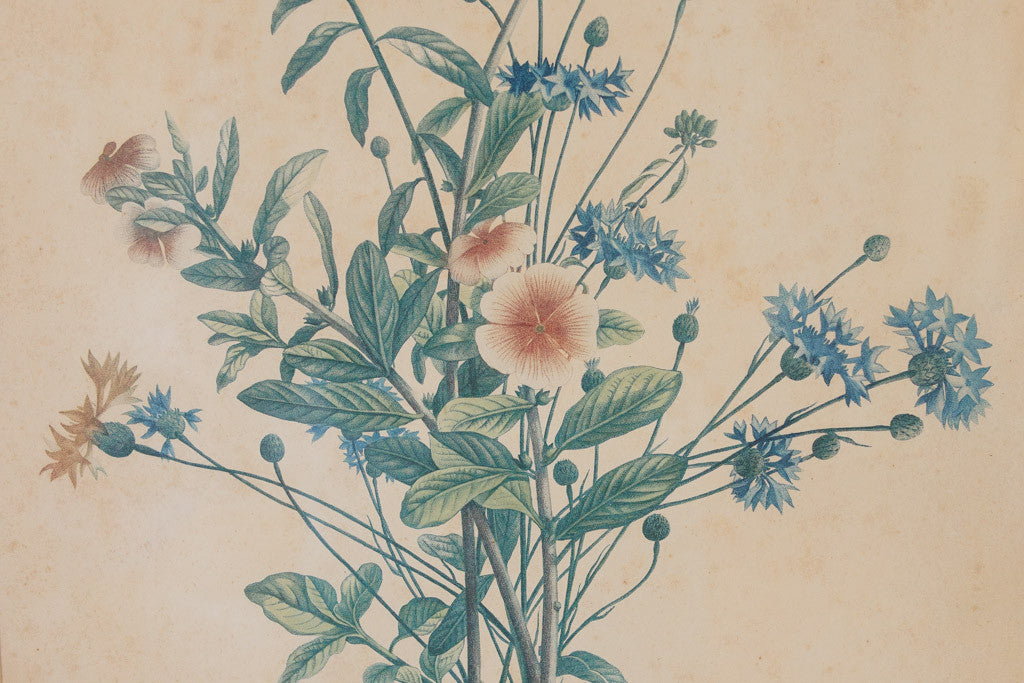 This framed vintage botanical print has a glass front and is signed, "Ruotte". It's in good overall shape with age related wear. Please see pictures for detailed condition.
