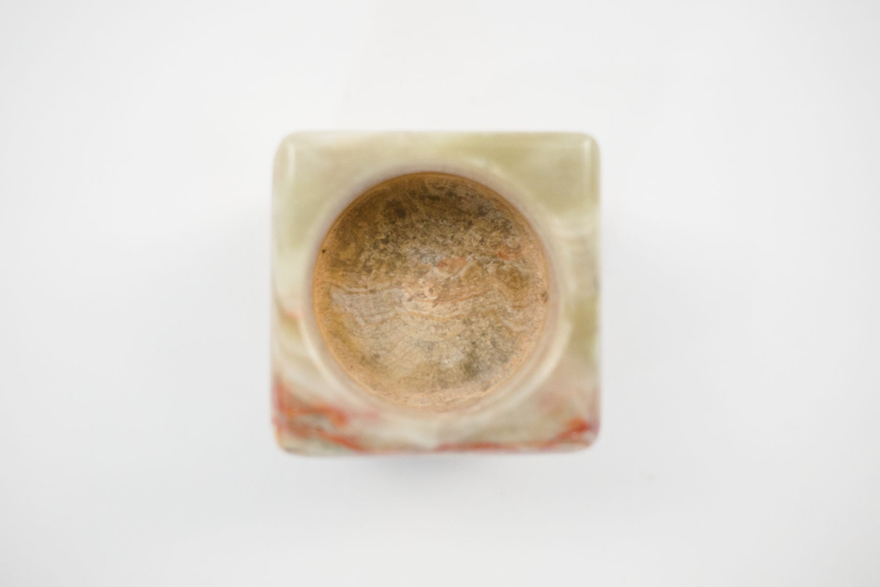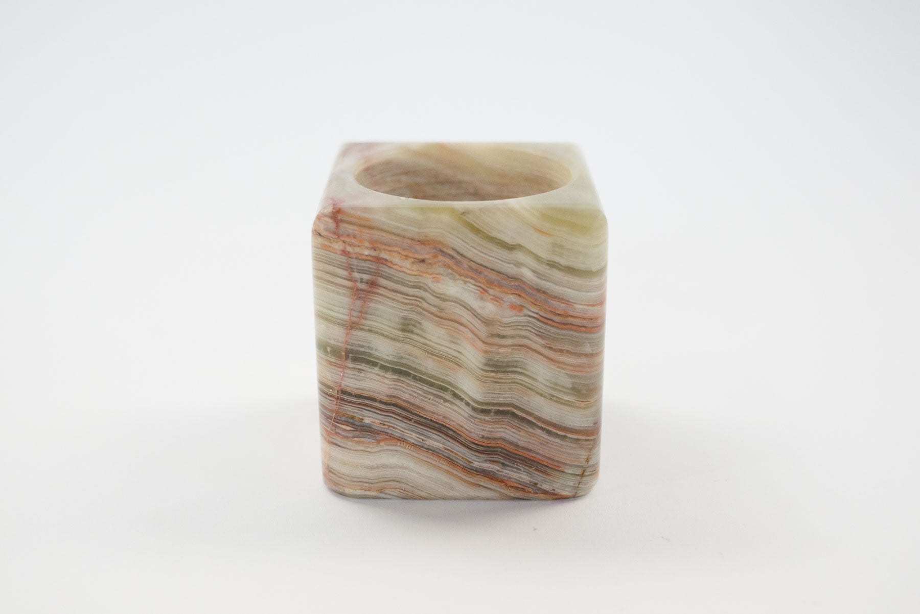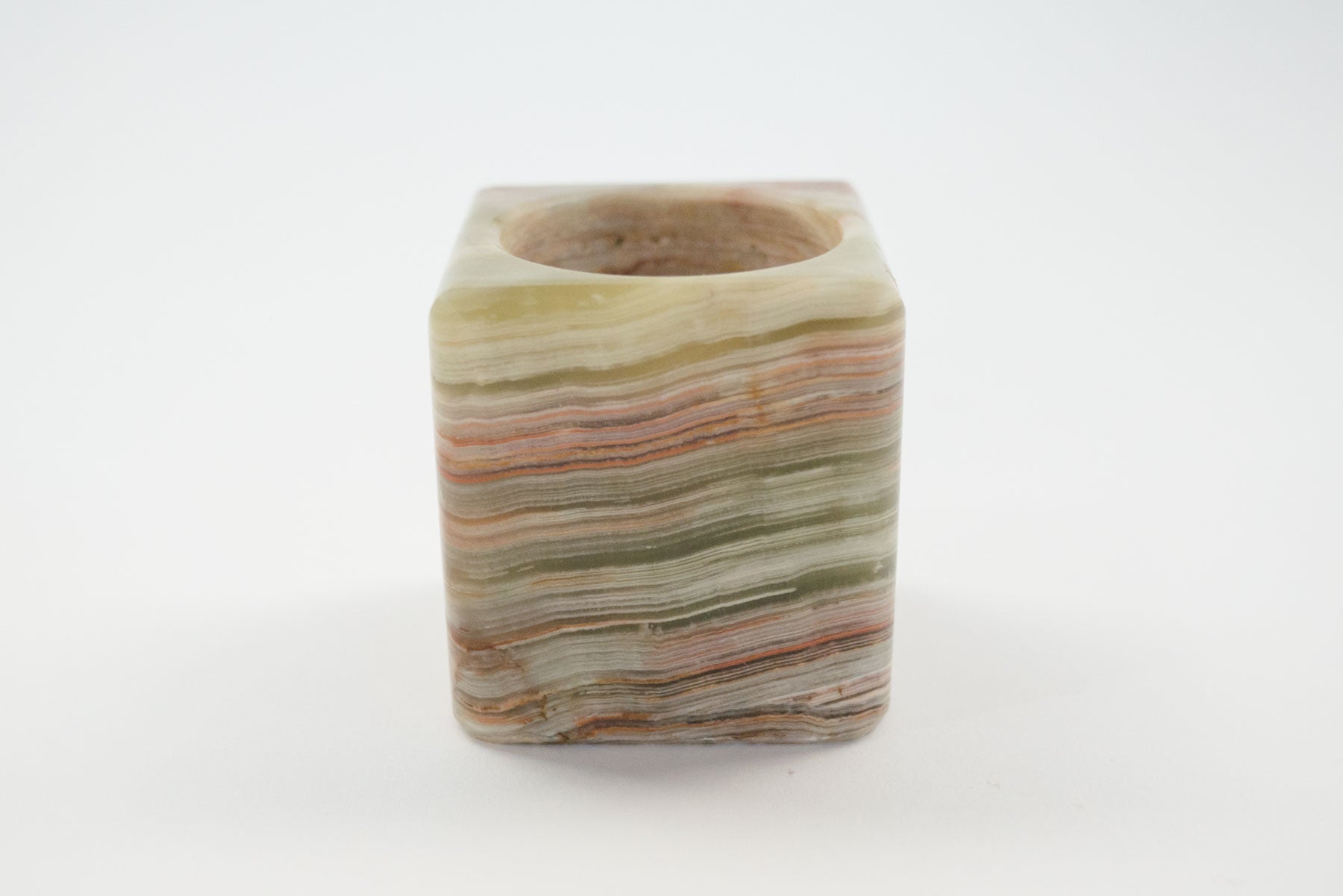 style: stone, marble, minimalist, modern, candle holder, tea lightmaterial: stone, onyx age: vintage condition: good - see pictures2" wide 2" deep x 2" high