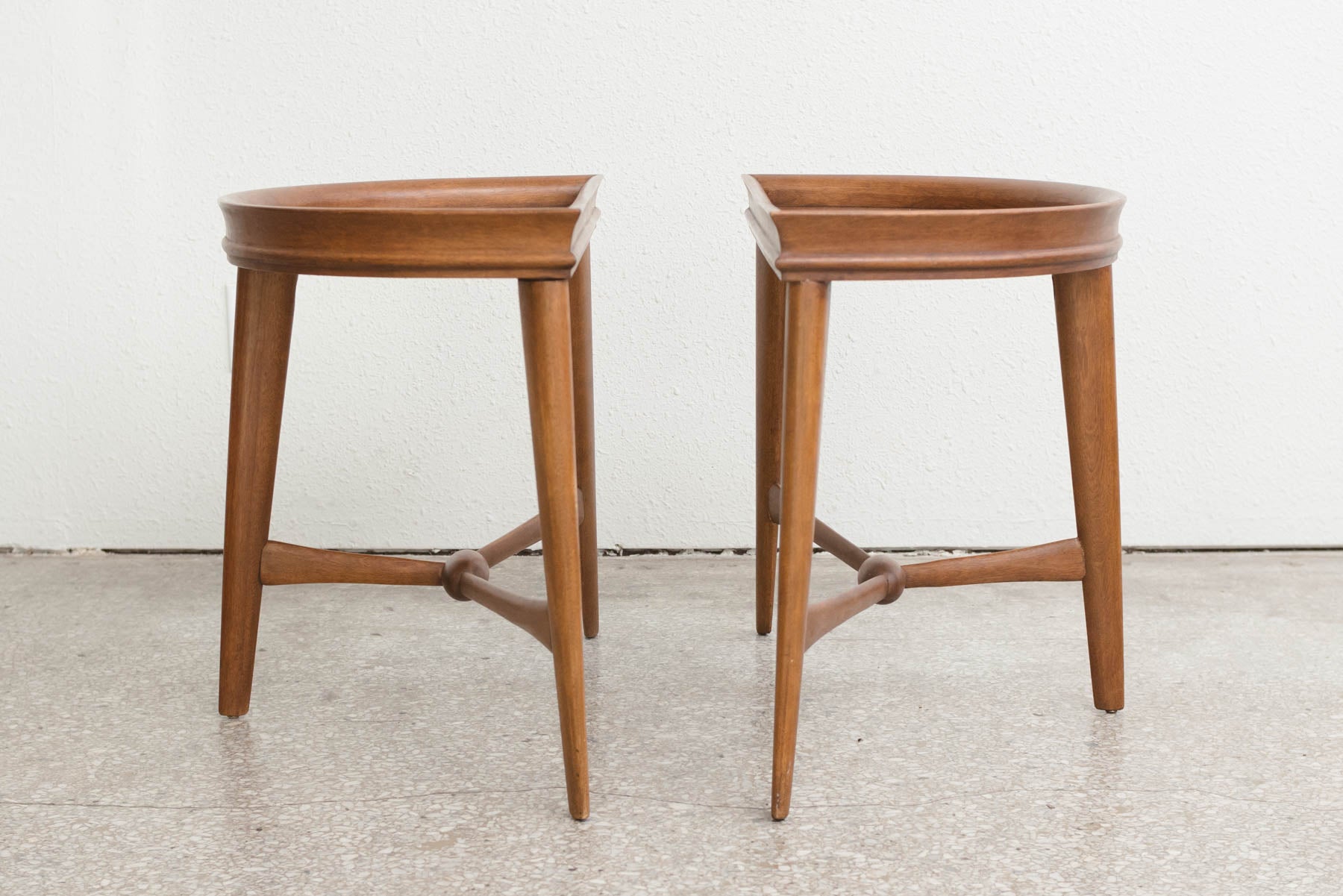 style: modern, minimalist, semi-circle, end, side, round, table, pairmaterial: wood brand: Heywood Wakefield, USAage: vintage, Mid Centurycondition: good, age related wear - see pictures