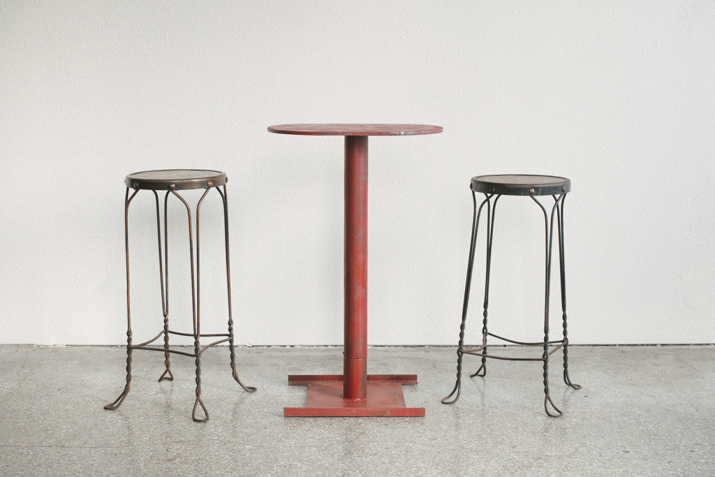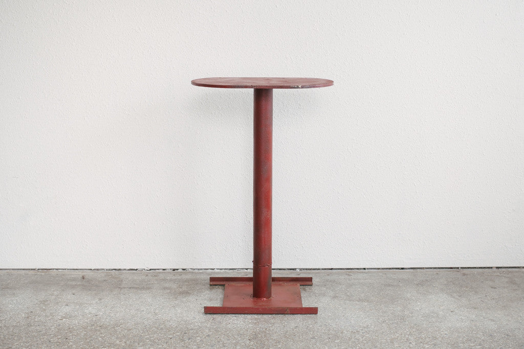style: red, industrial, bar table, plant stand, indoor/outdoormaterial: metal (iron)age: vintagecondition: good, age related wear - see pictures