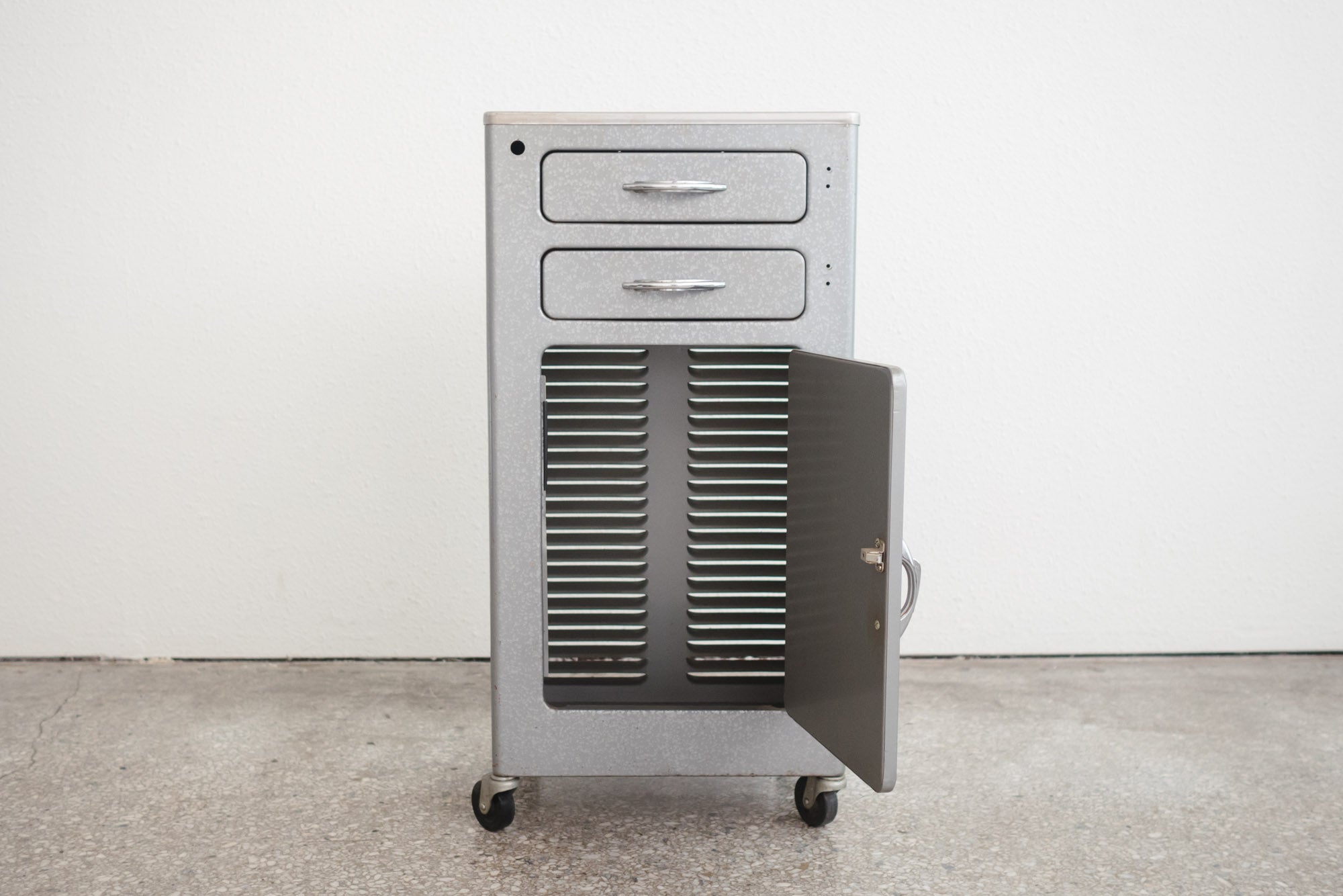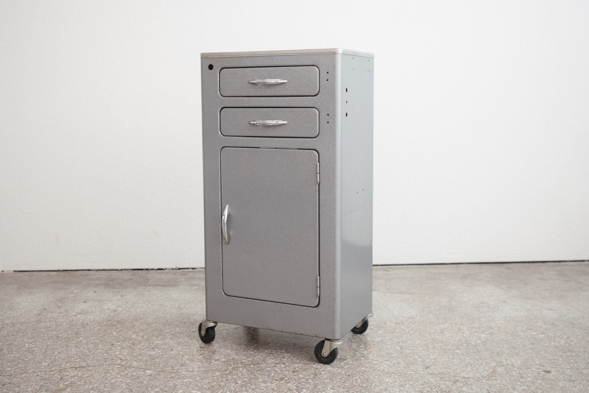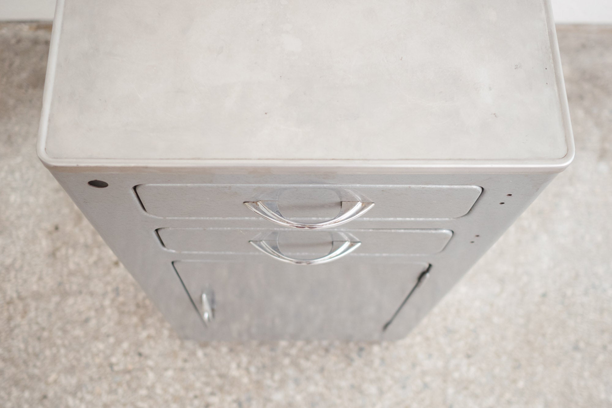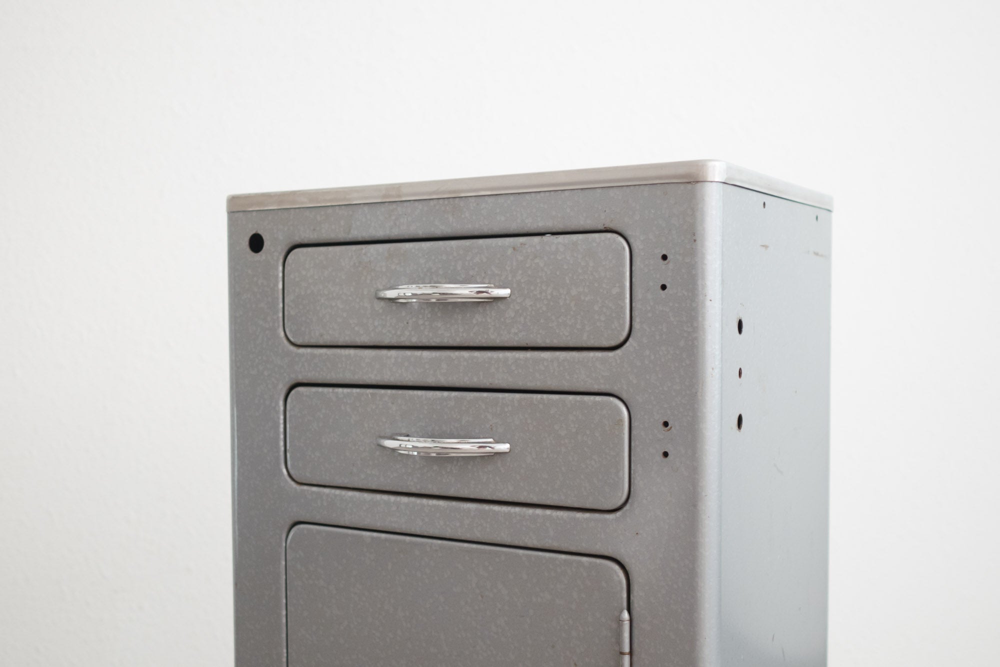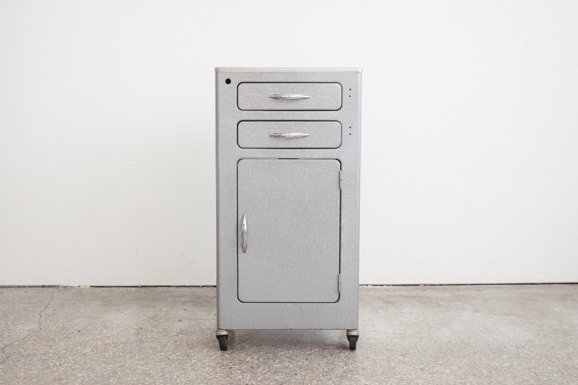 style: Mid Century, industrial, end/side table, bar cart, cabinetmaterial: steelage: vintagecondition: good, age related wear - see pictures