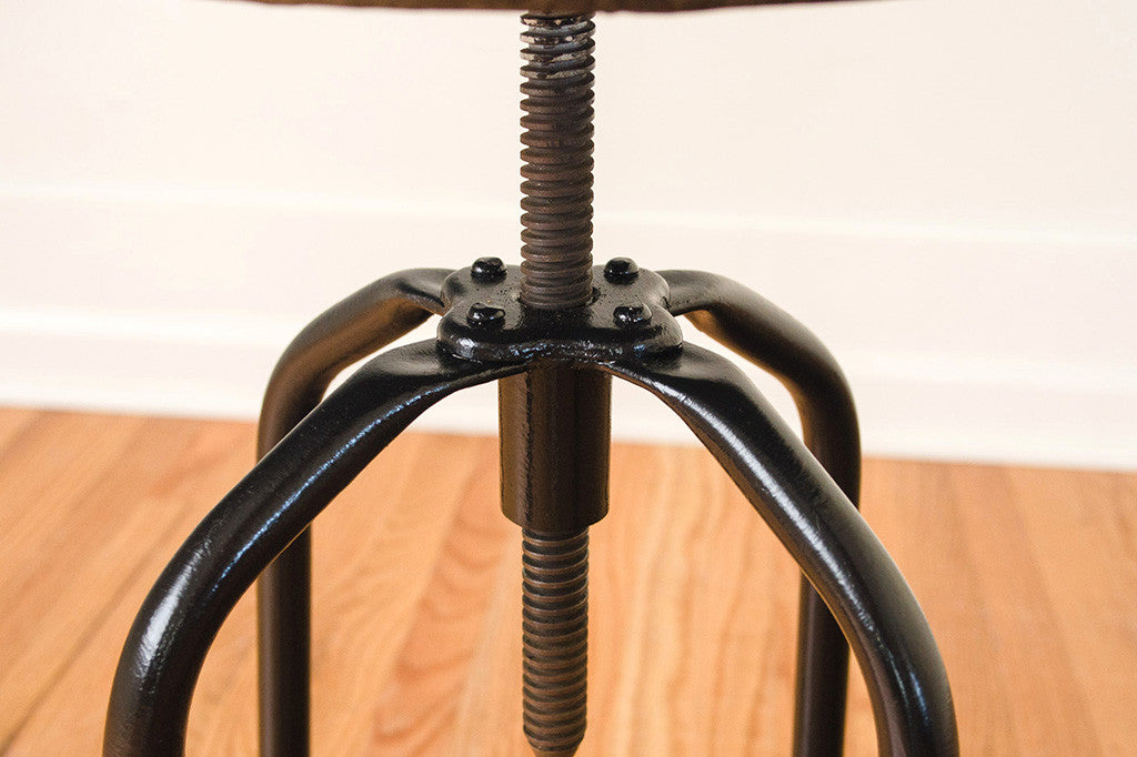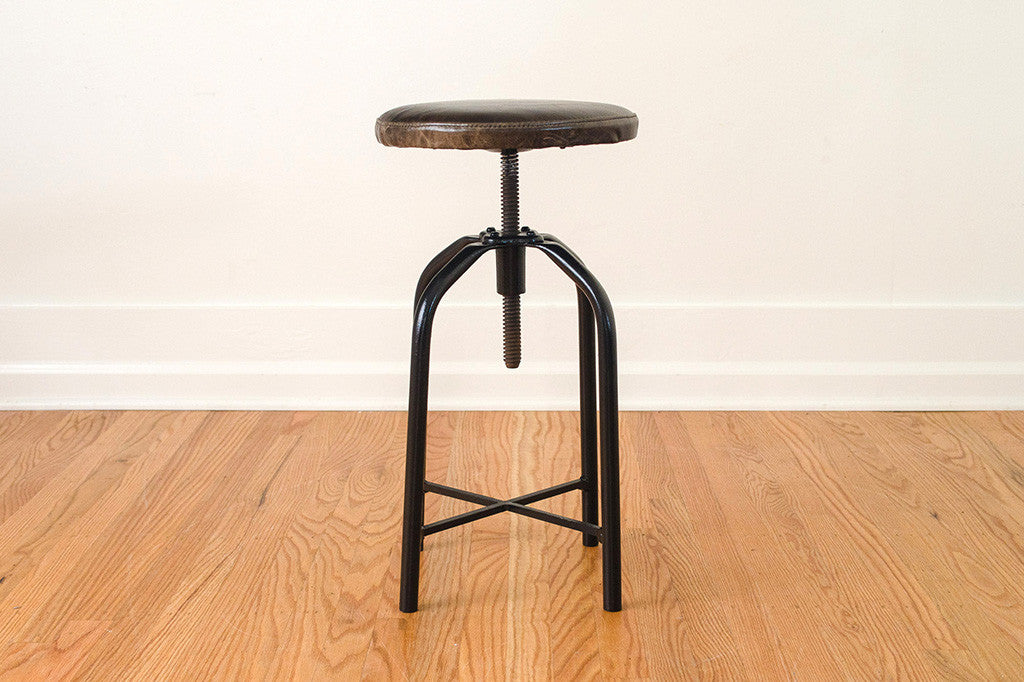 This vintage drafting stool is part of our HS Collection. It's upholstered in the same high quality waxed leather that Restoration Hardware uses. It has an adjustable height metal base and would be perfect at a desk, kitchen island or bar. Please see pictures for detailed condition of this piece.