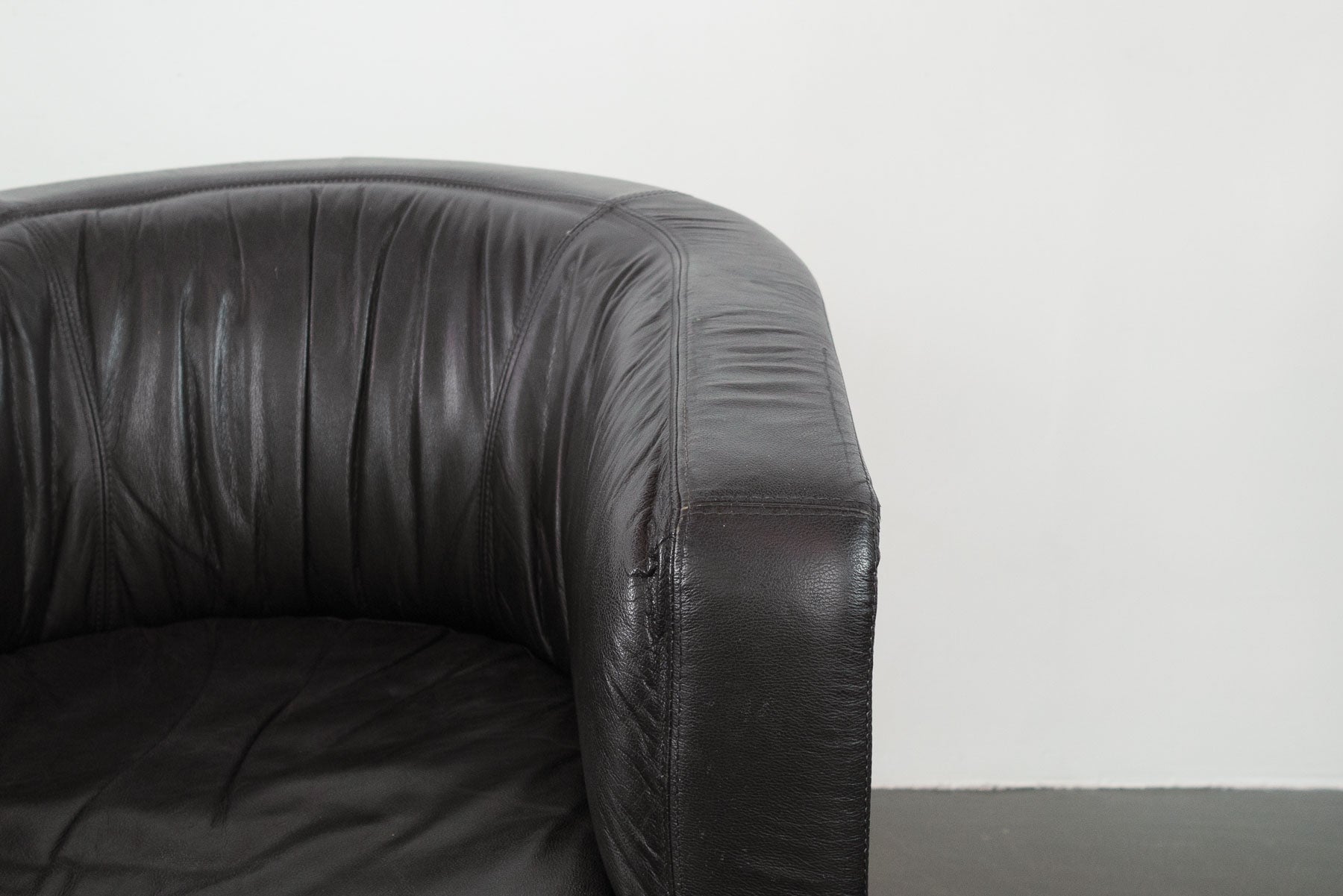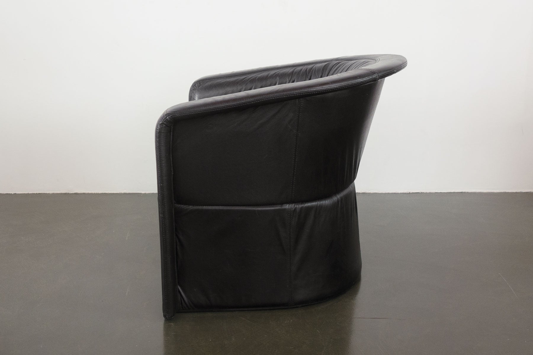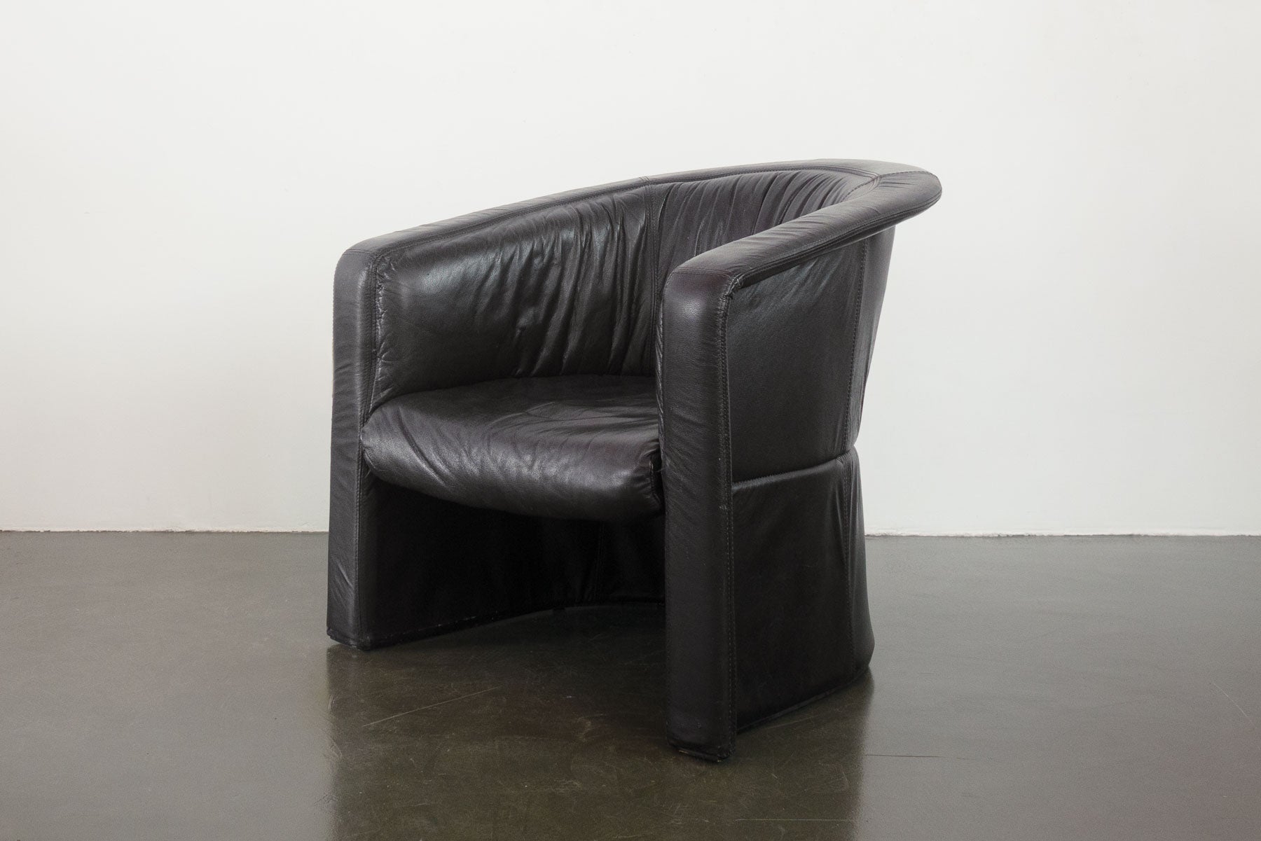 style: post modern, accent, lounge, club, arm, chair material: black leather brand: Natuzzi Salotti, Made in Italy age: vintage condition: good, age related wear - see pictures