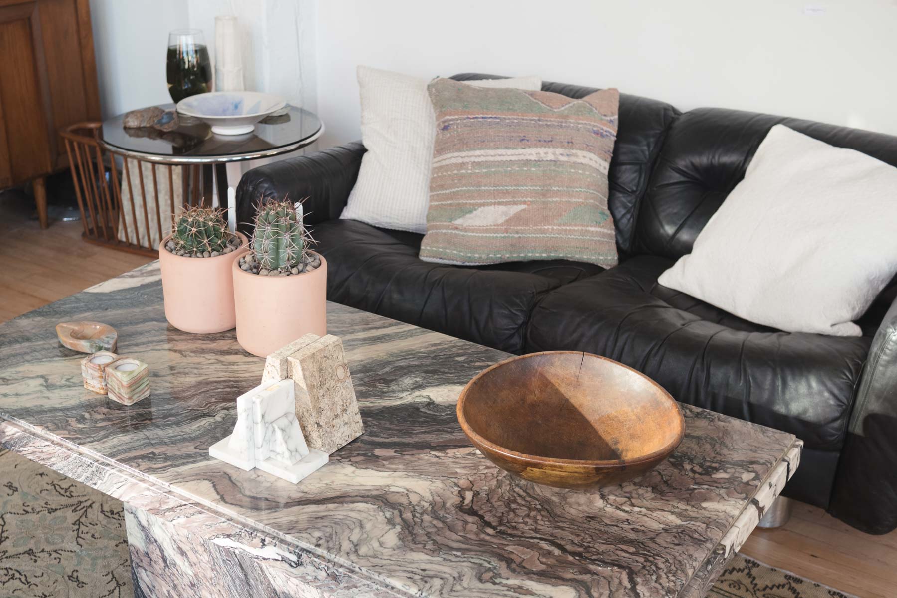 style: modern, stone, pedestal, coffee tablematerial: stone (marble) age: vintagecondition: good, age related wear - see pictures