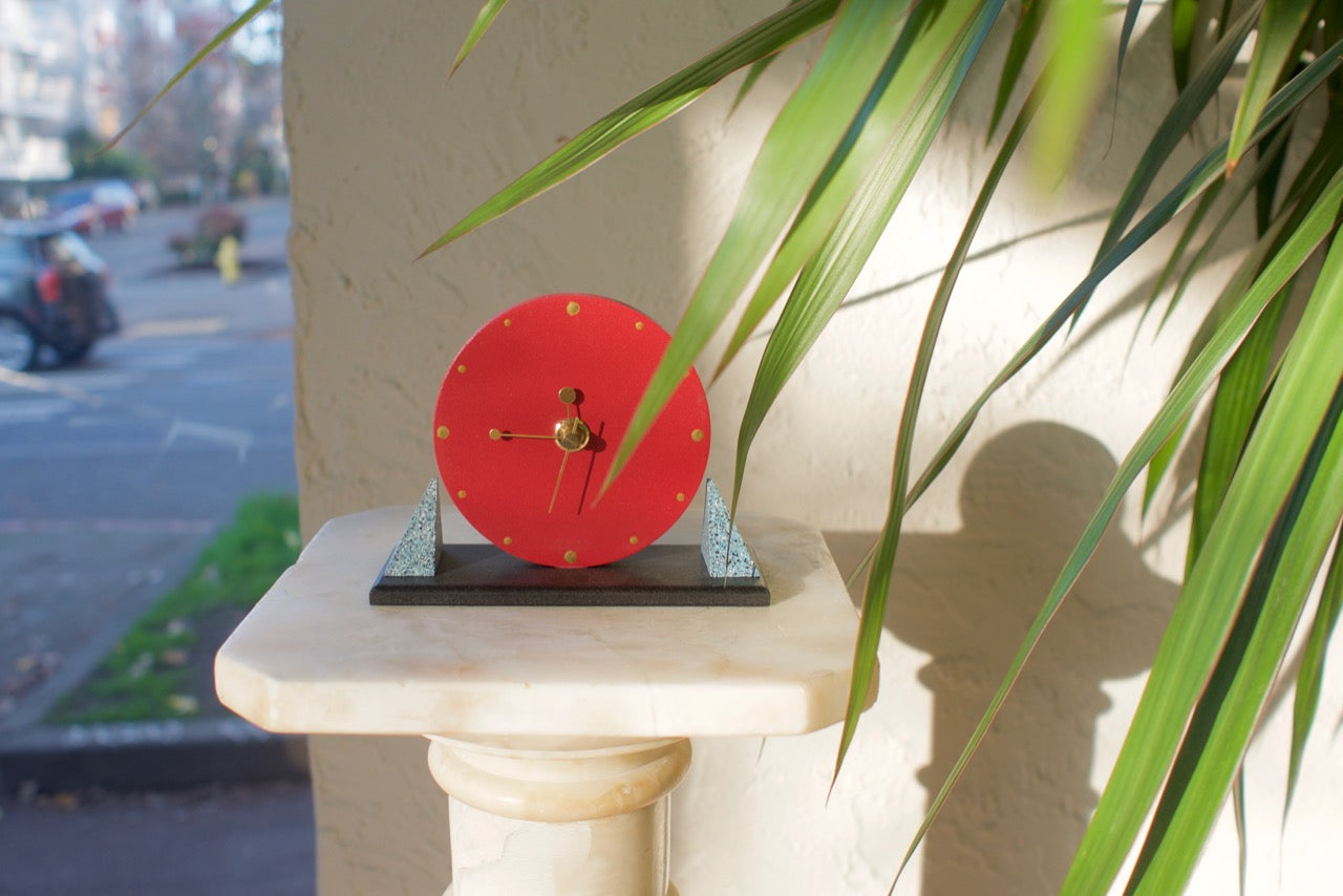 style: post-modern, modern, mod, clock material: metal (steel) artist: Makiko Taniguchi (signed) age: vintage, 1980s condition: good, age related wear - see pictures sku: sm-626 notes: comes with box