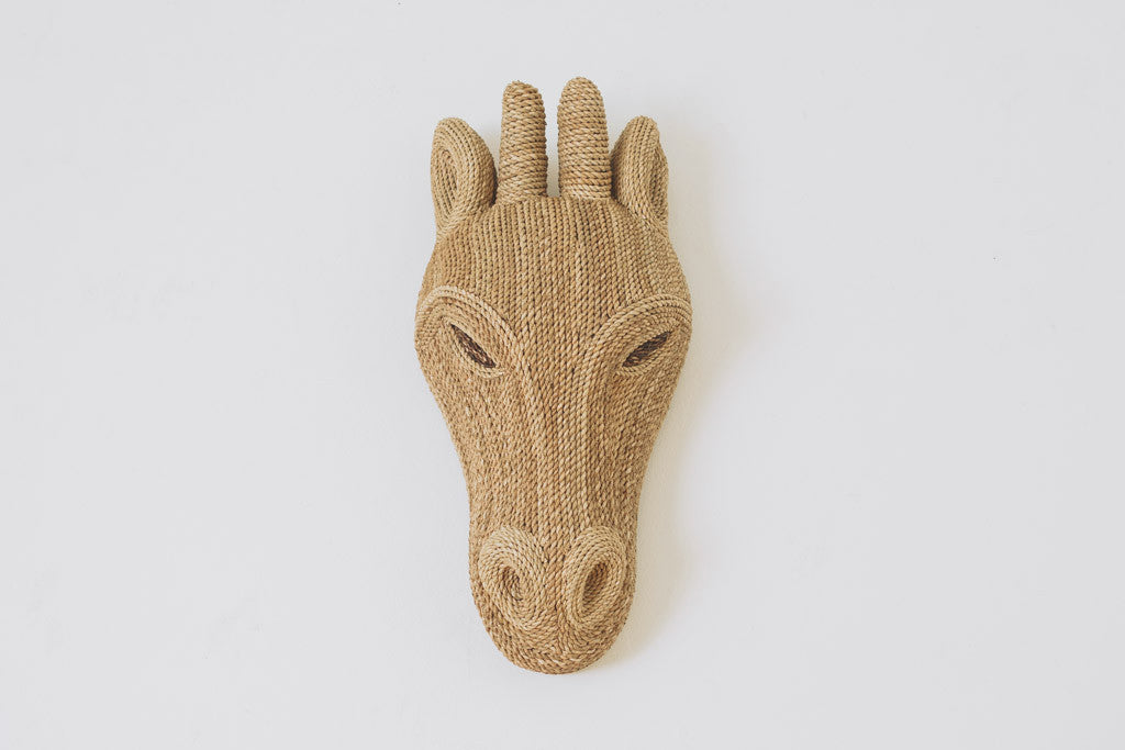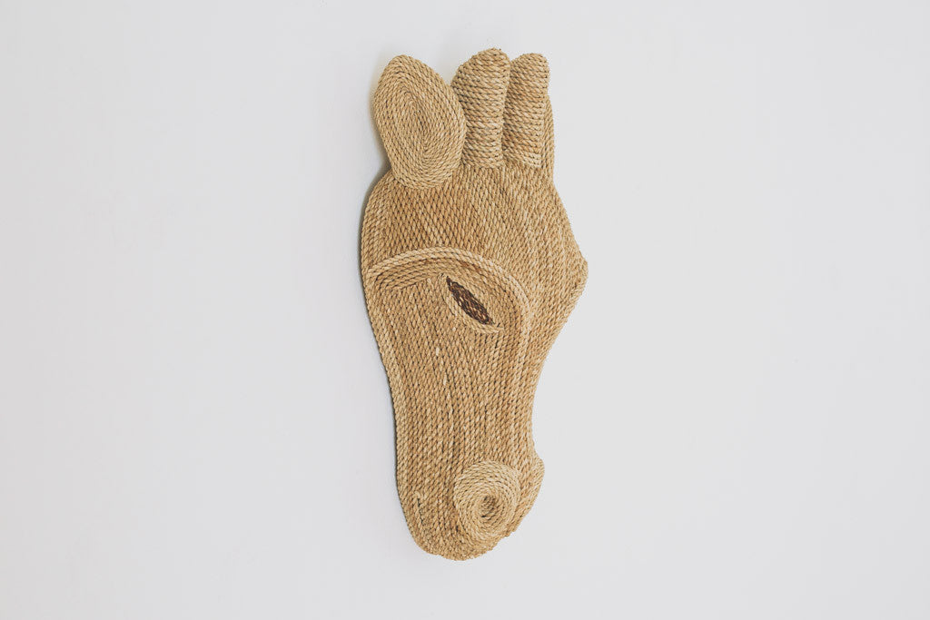 This vintage antelope mount is handcrafted with a jute rope exterior. It mounts on the wall like a traditional taxidermy piece. It's in great shape with age related wear. See pictures for detailed condition.